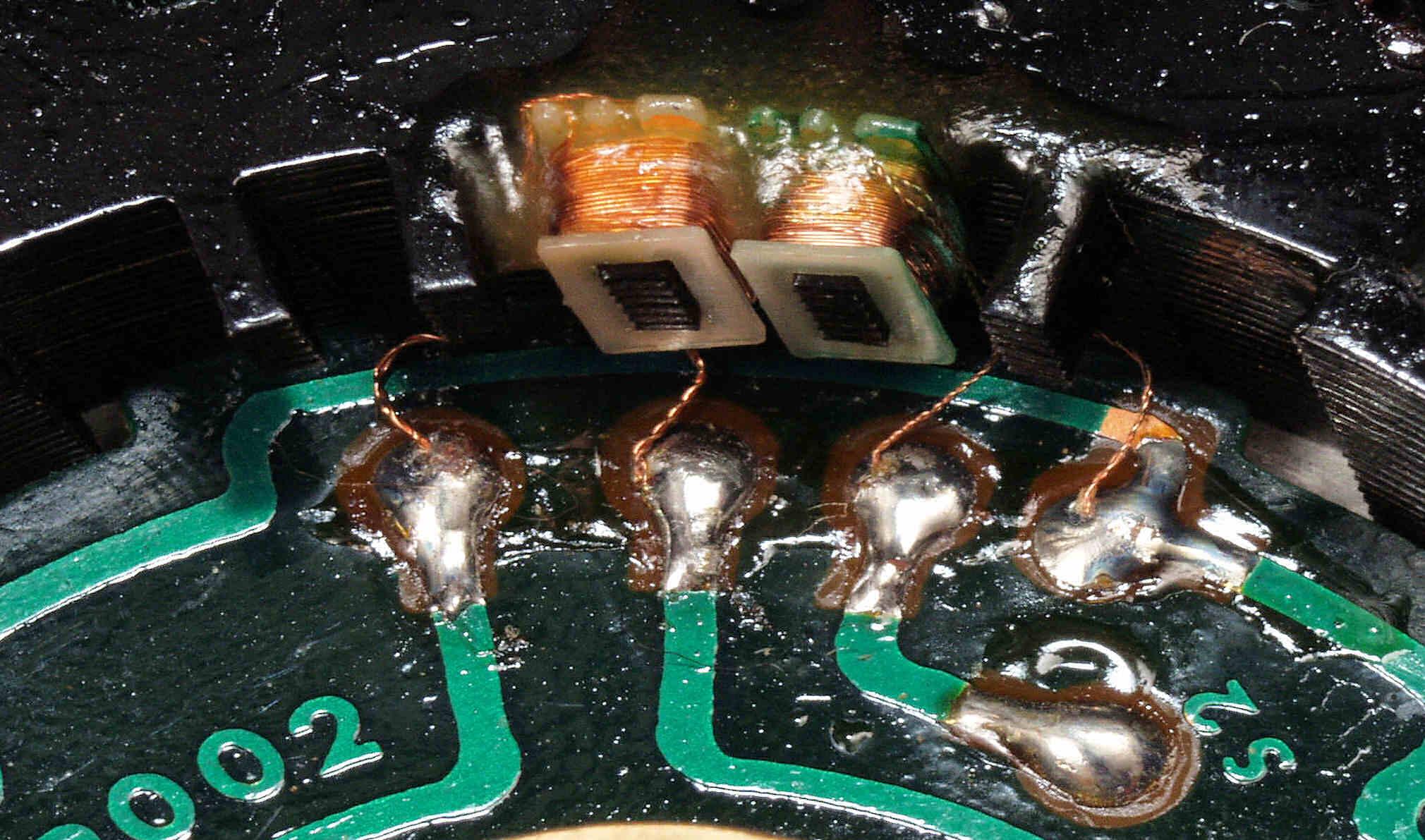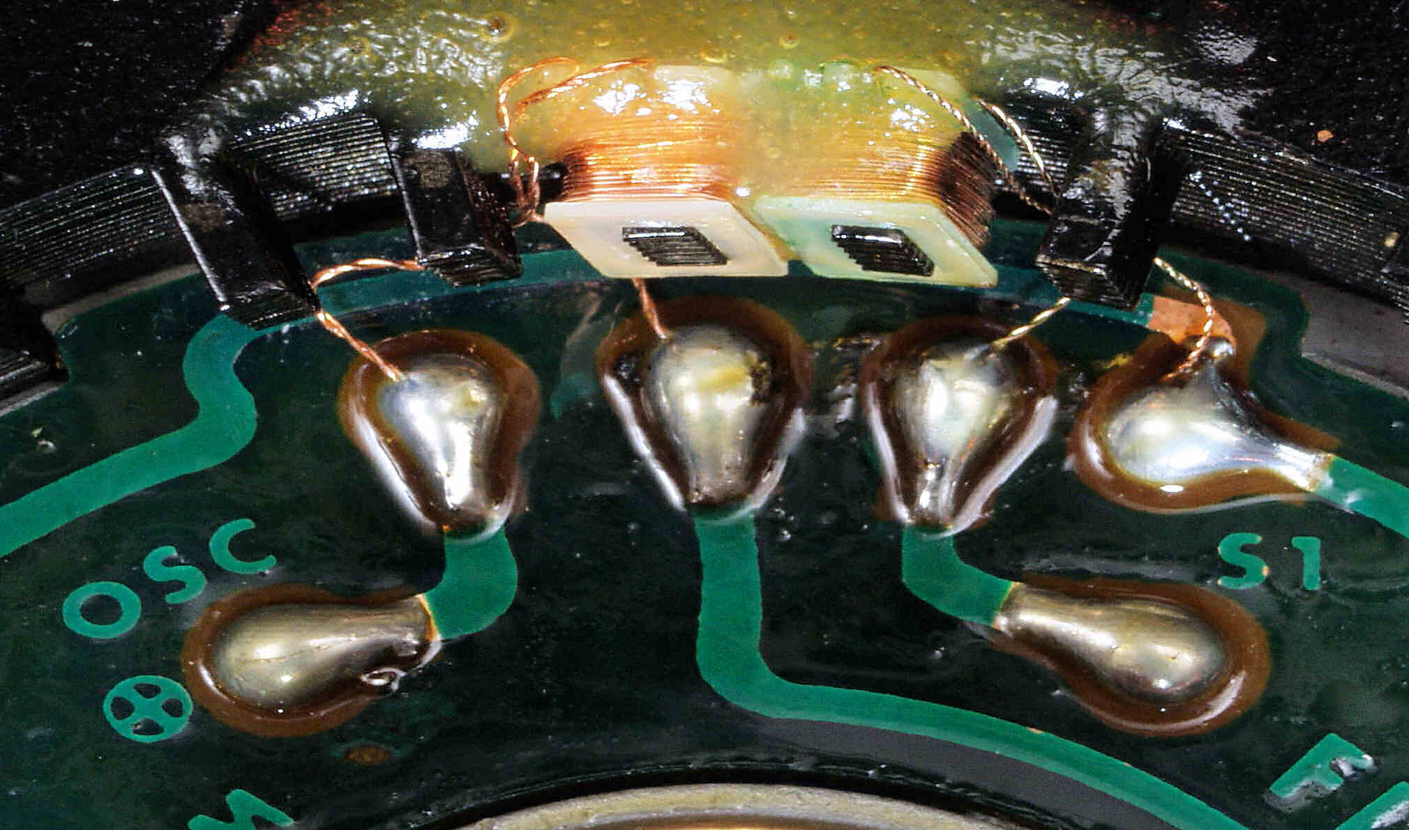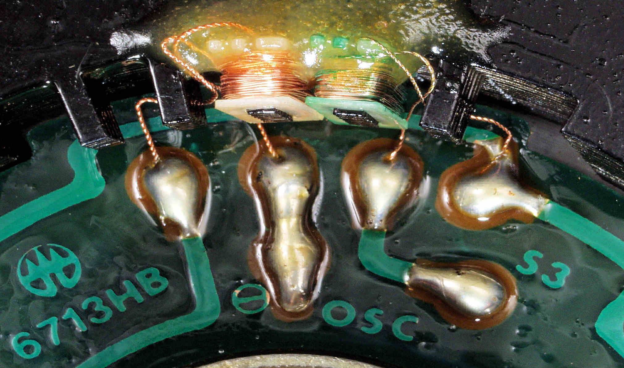 | C63. 完成モータ位置コイル基板。余分なフラックスを落として、コート液を塗る。 | ||||||||||||||||||||||||||||