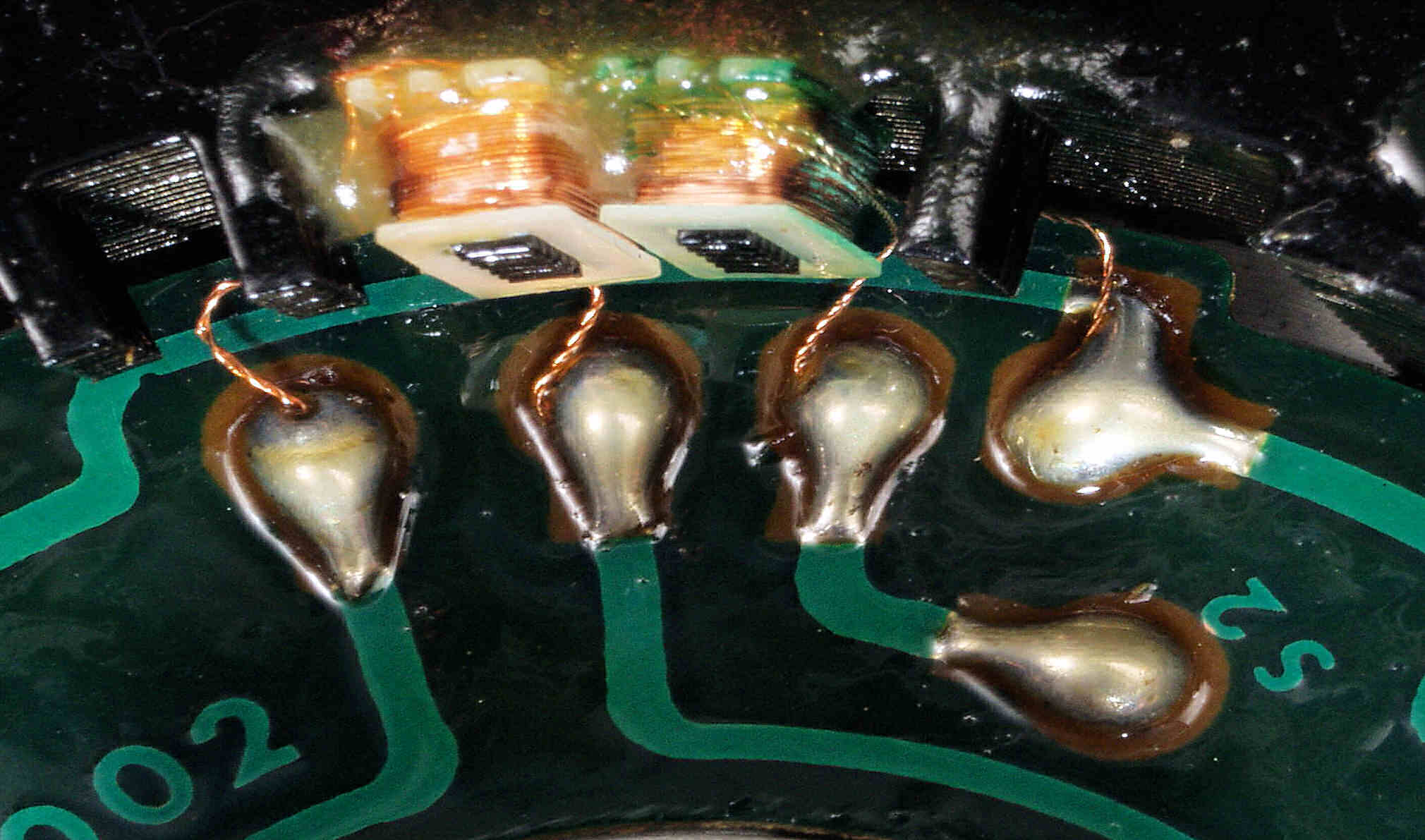 | C62. 修理(半田補正)後 モータ位置コイル基板。全ハンダをやり直す。 | ||||||||||||||||||||||||||||