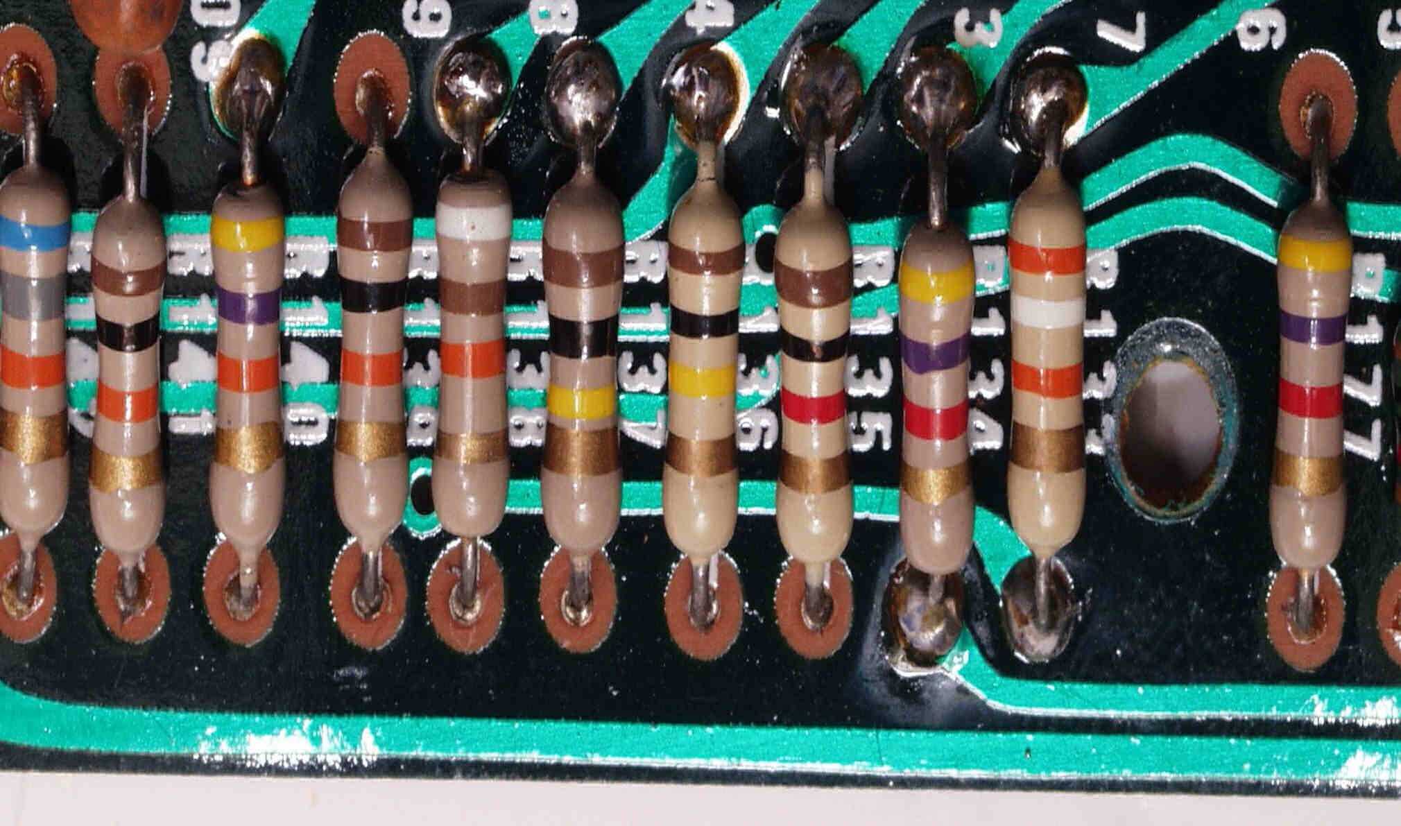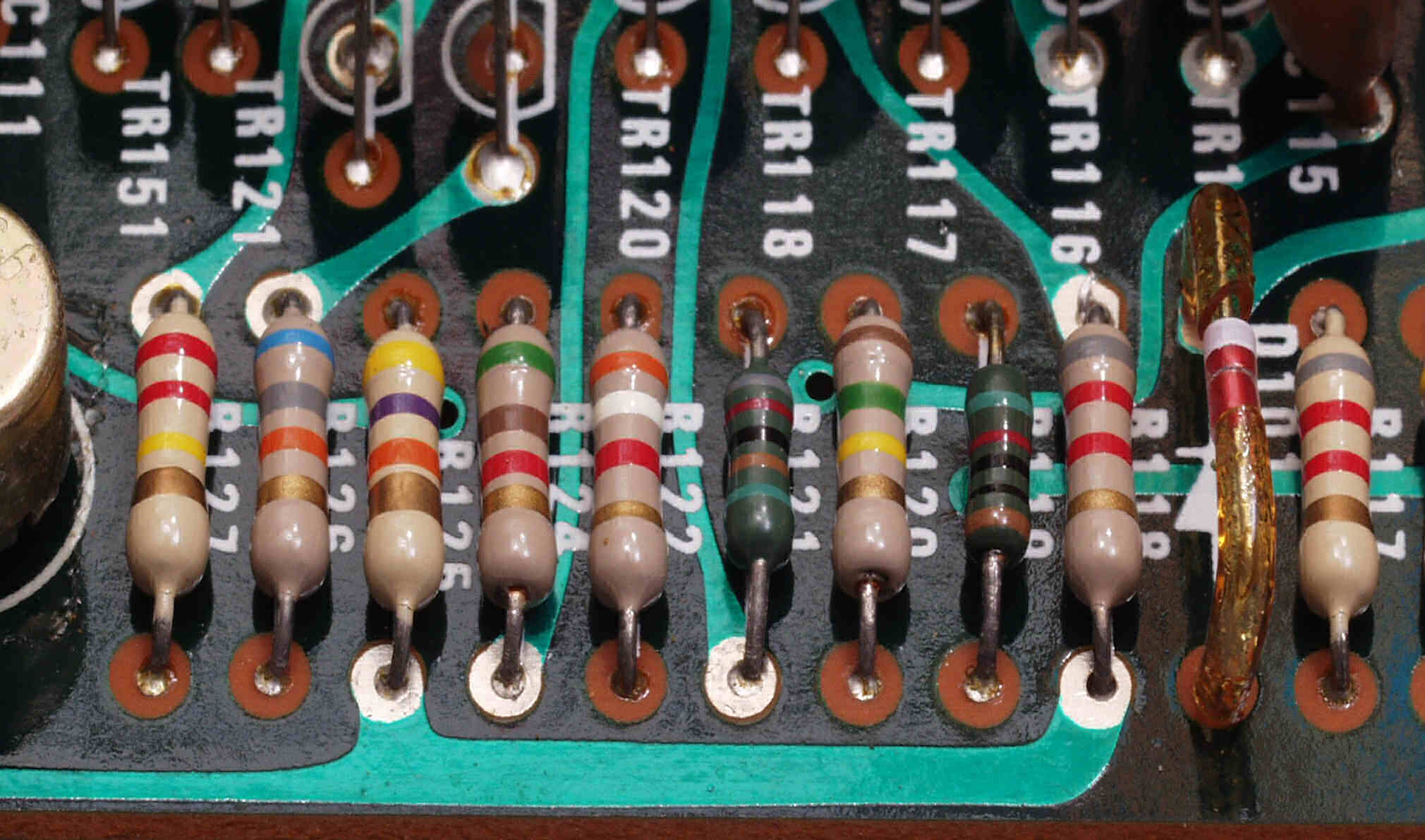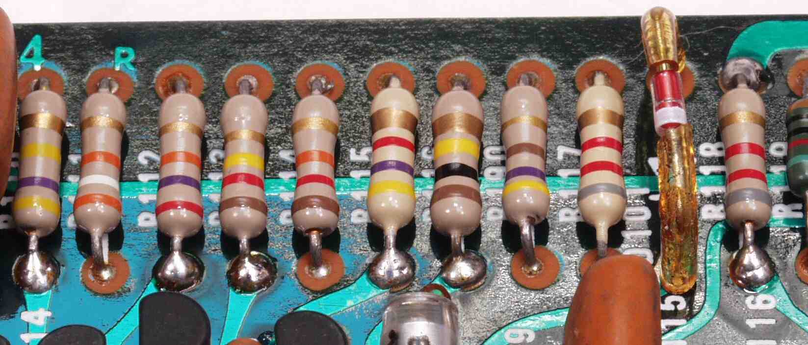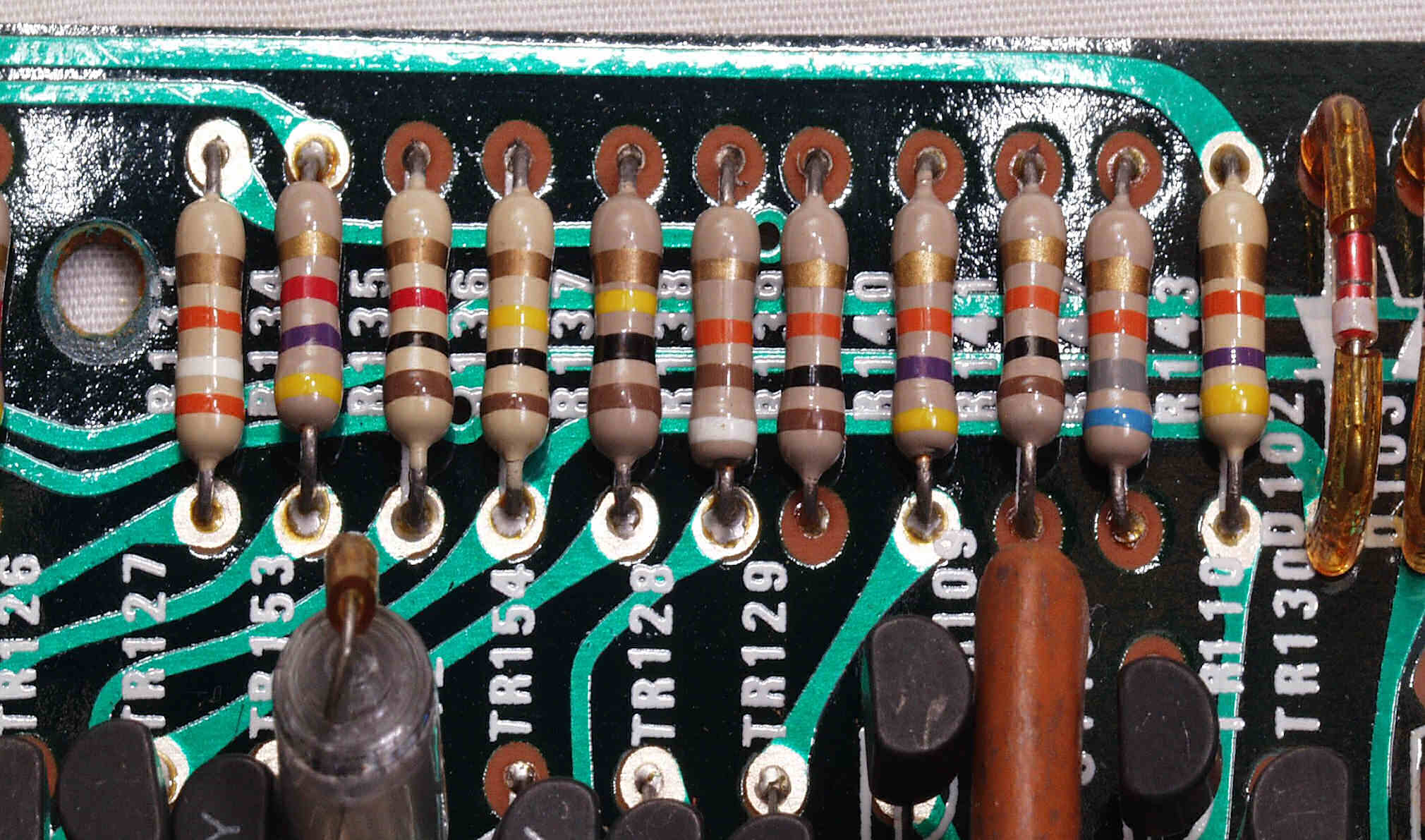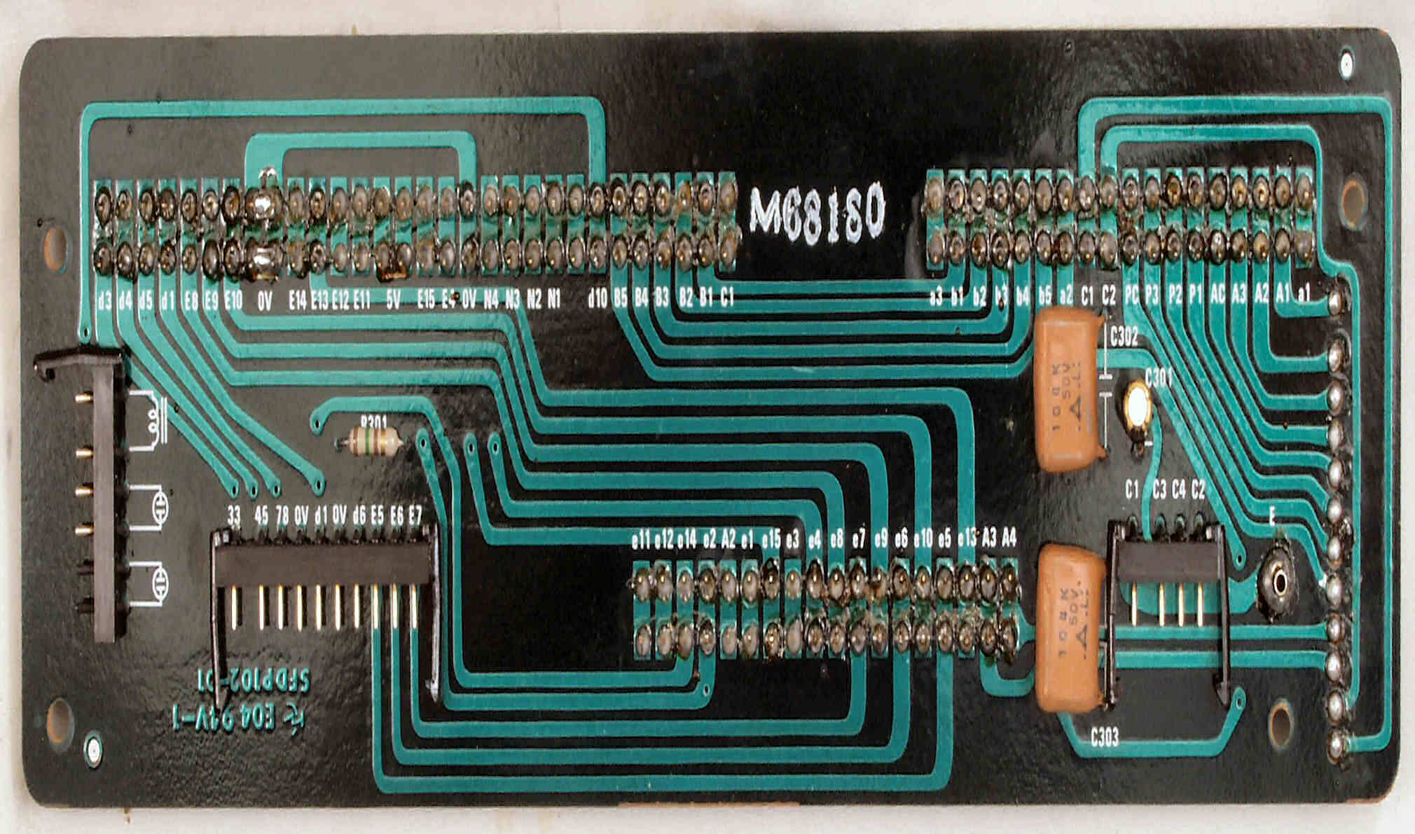 | C−4E. 修理(半田補正)後 基準発生・速度切替え分周基板裏。全ハンダをやり直す。 | ||||||||||||||||||||||||||||||