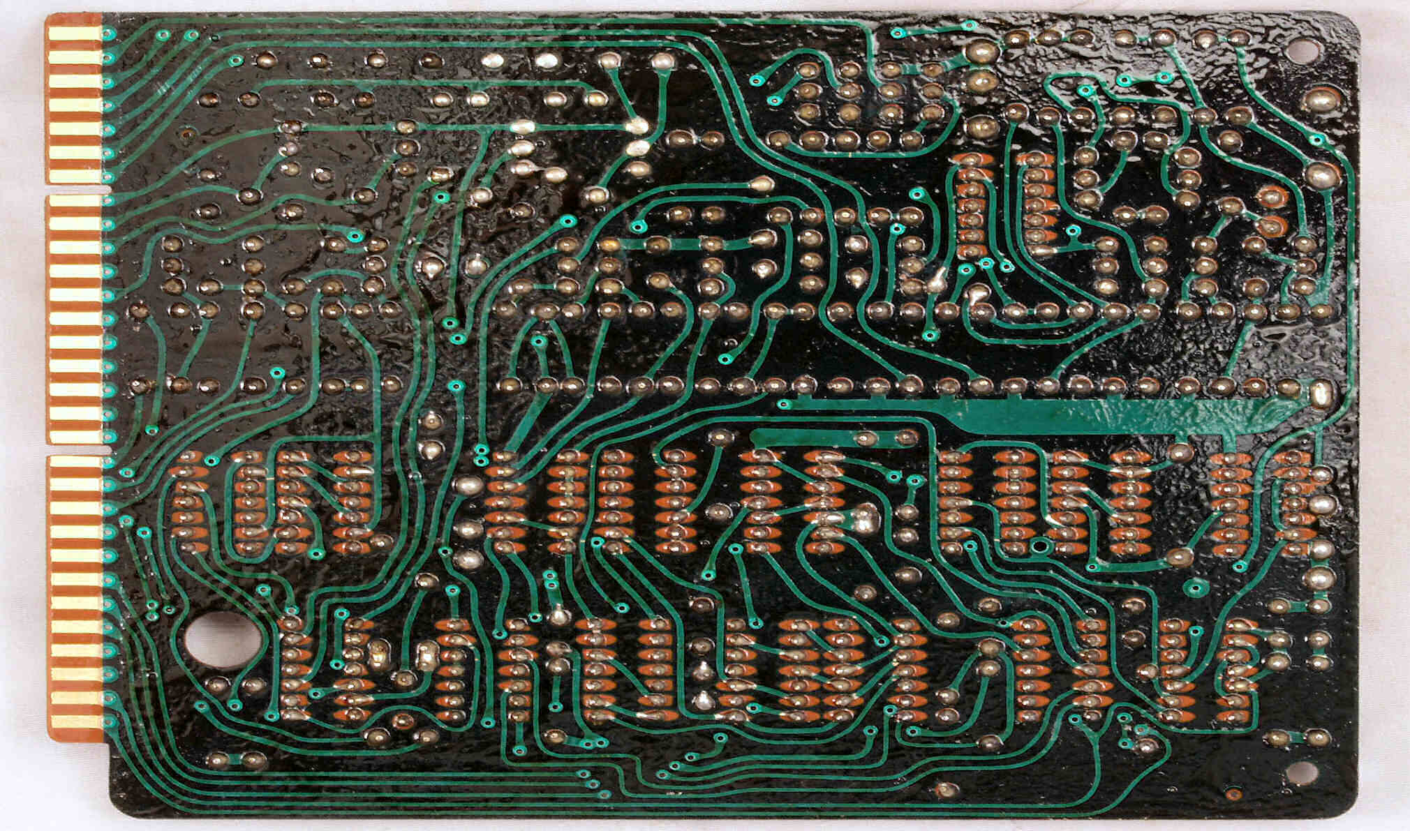 | C−7F. 完成メイン基板裏。余分なフラックスを落として、コート液を塗る。 | ||||||||||||||||||||||||||||||