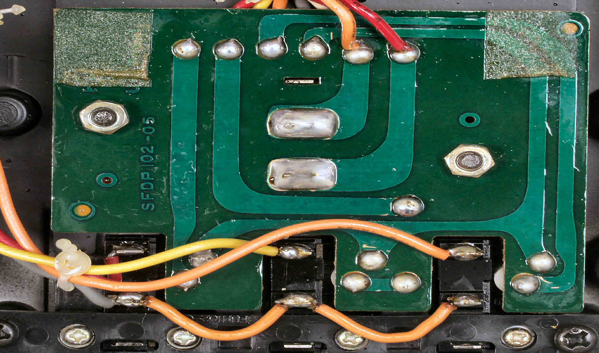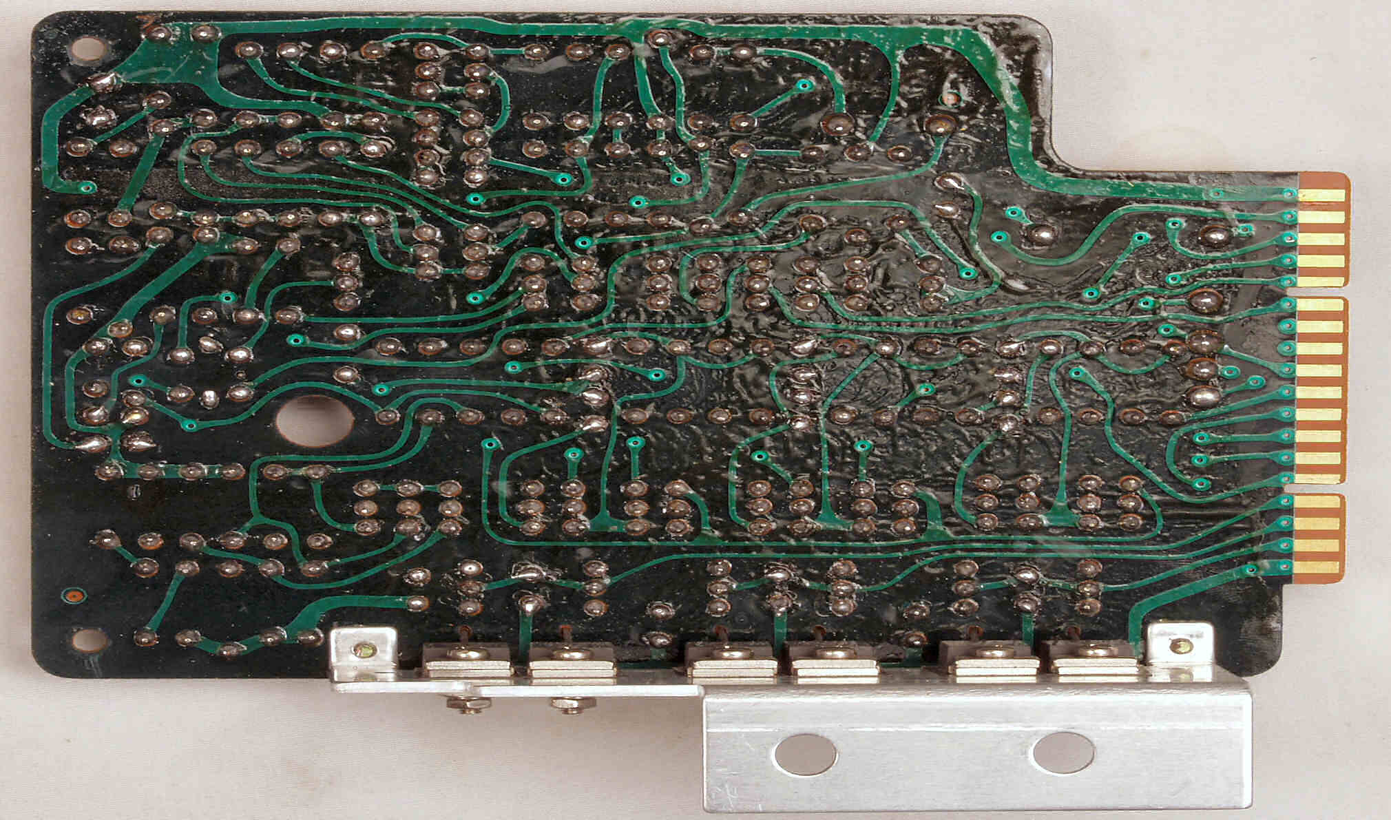 | C−6E. 修理(半田補正)後 速度制御基板裏。全ハンダをやり直す。 | ||||||||||||||||||||||||||||||