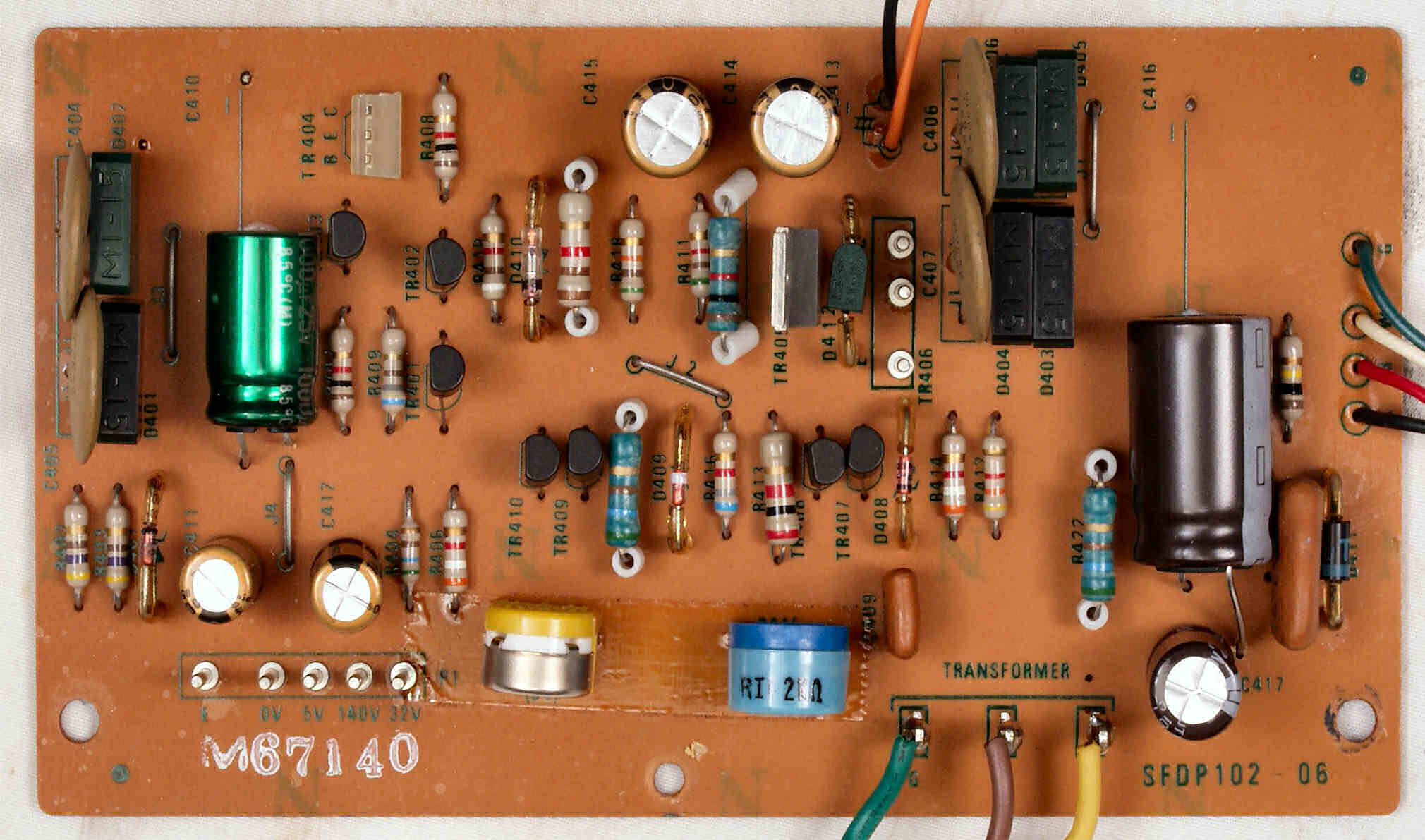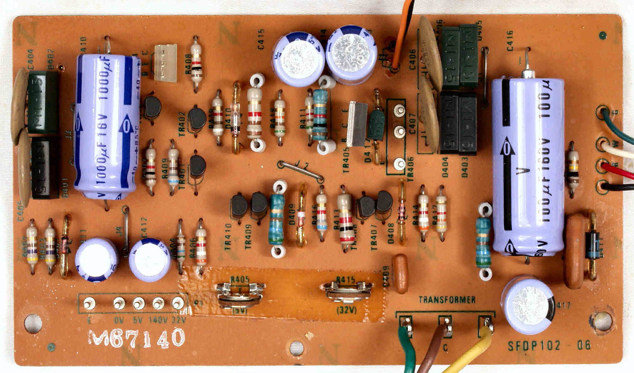 | C−1B. 修理後 電源定電圧基板 電解コンデンサー7個、半固定VR2個交換 | ||||||||||||||||||||||||||||||