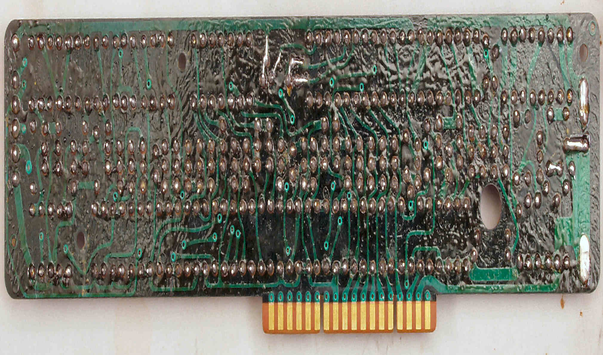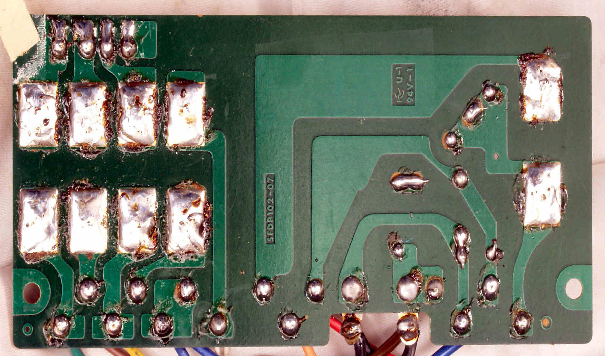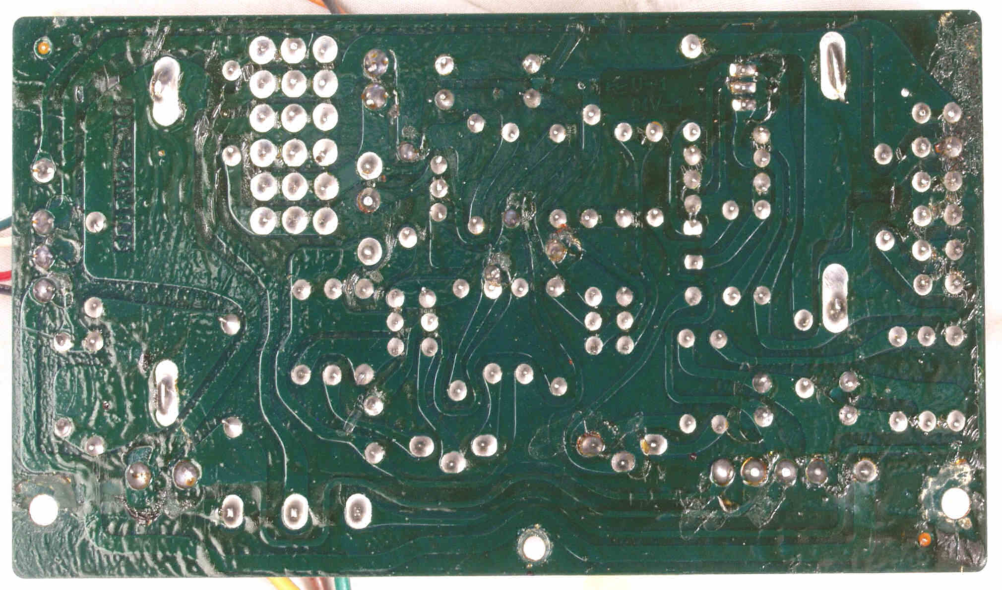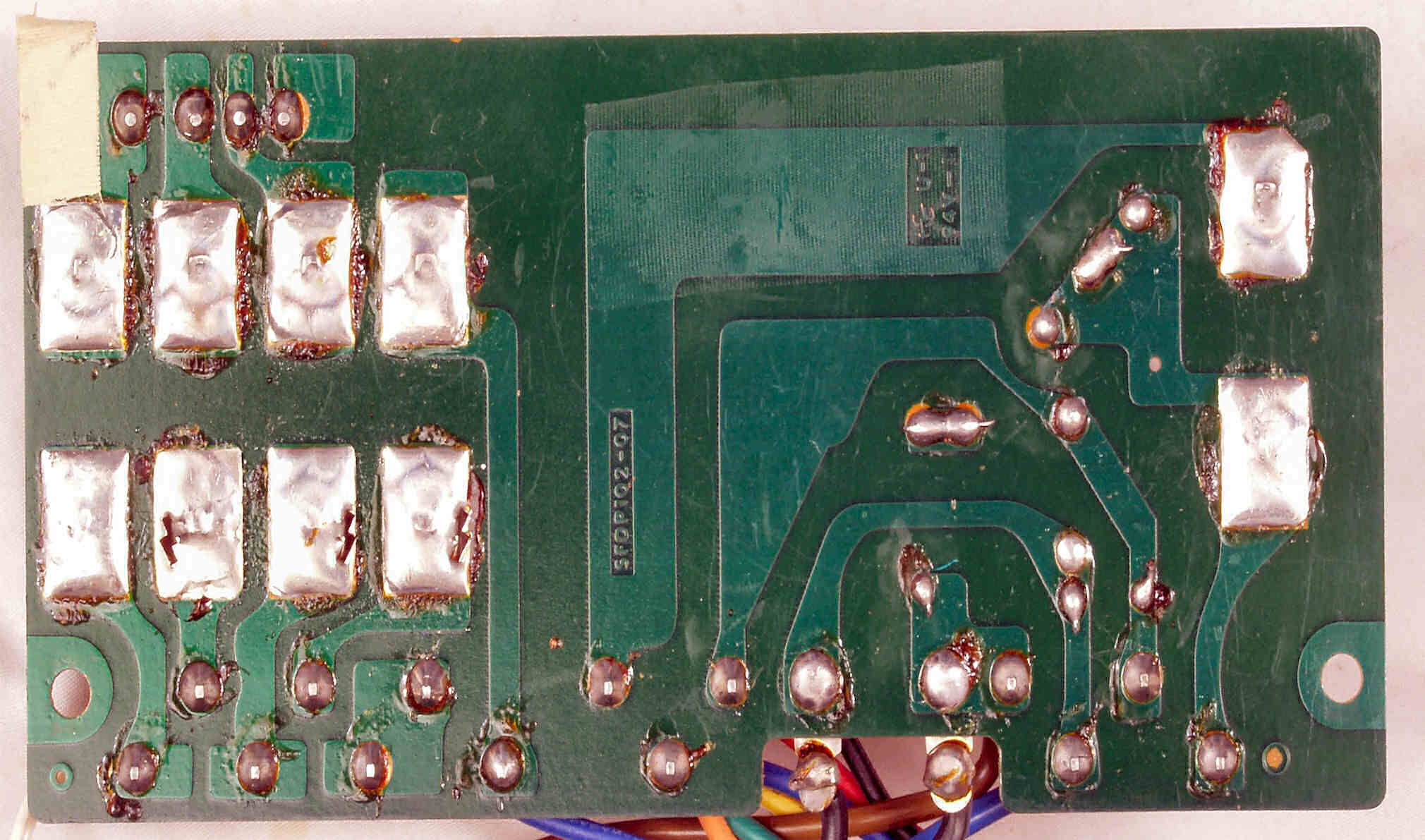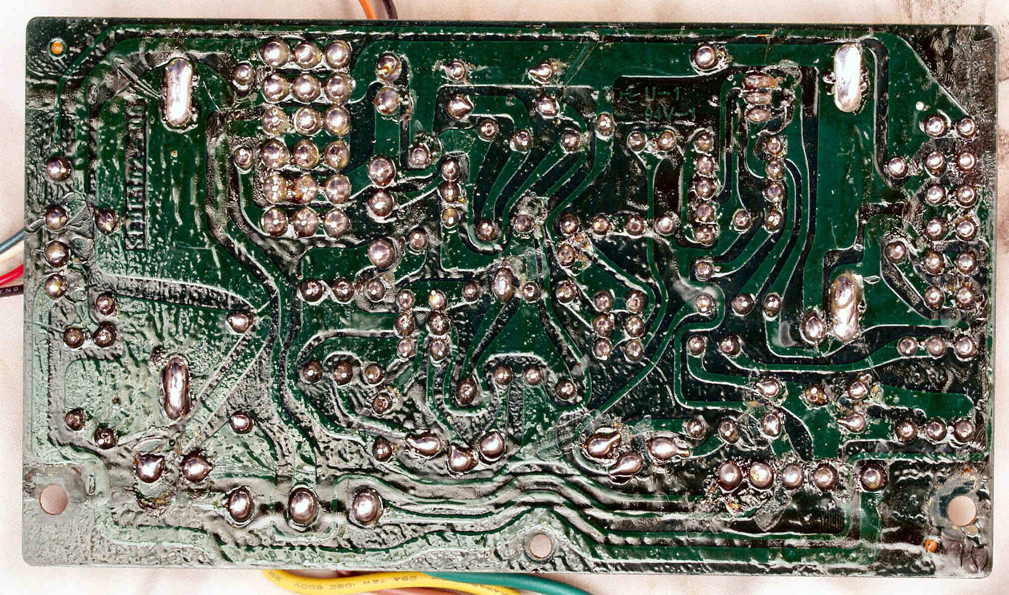 | C−7E. 修理(半田補正)後 メイン基板裏。全ハンダをやり直す。 | ||||||||||||||||||||||||||||||