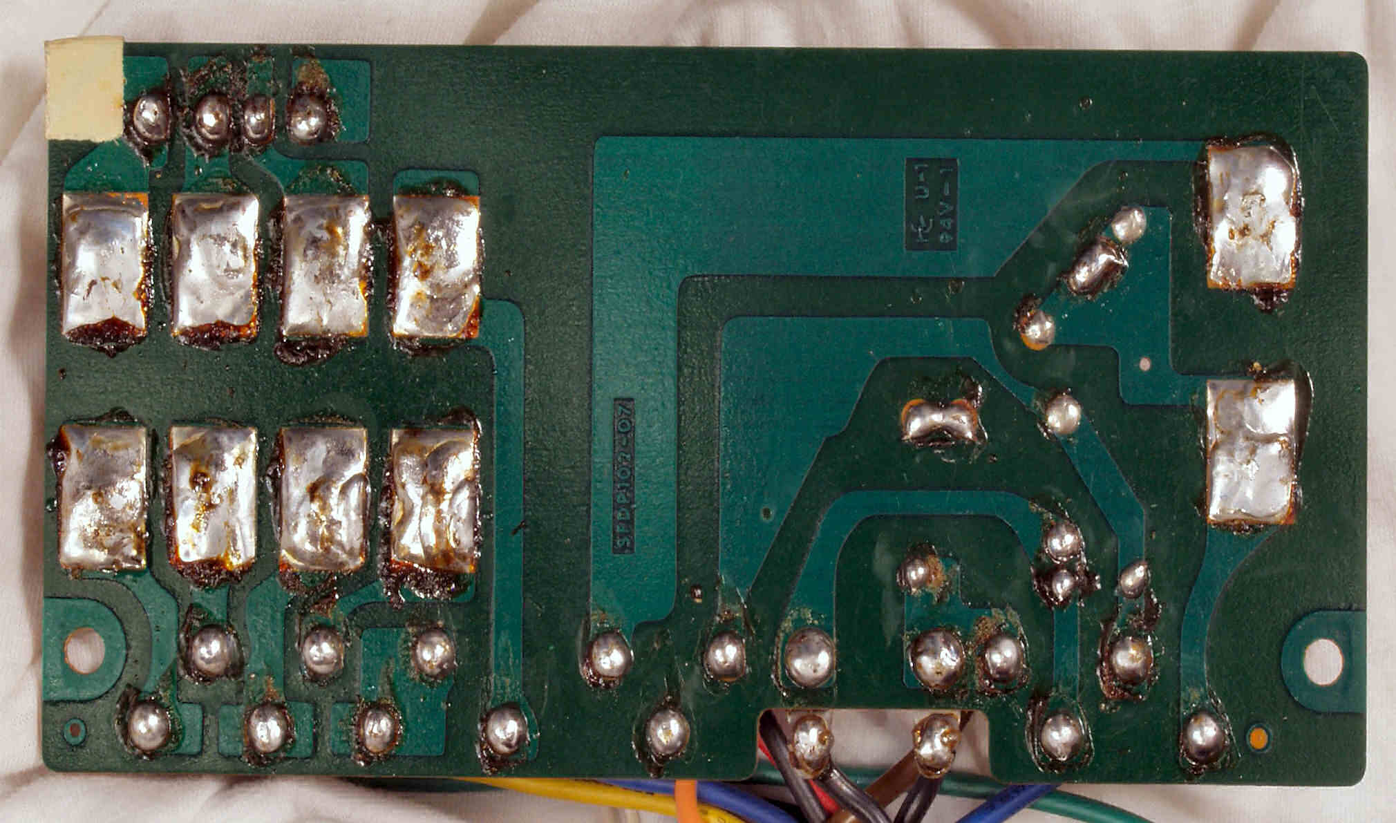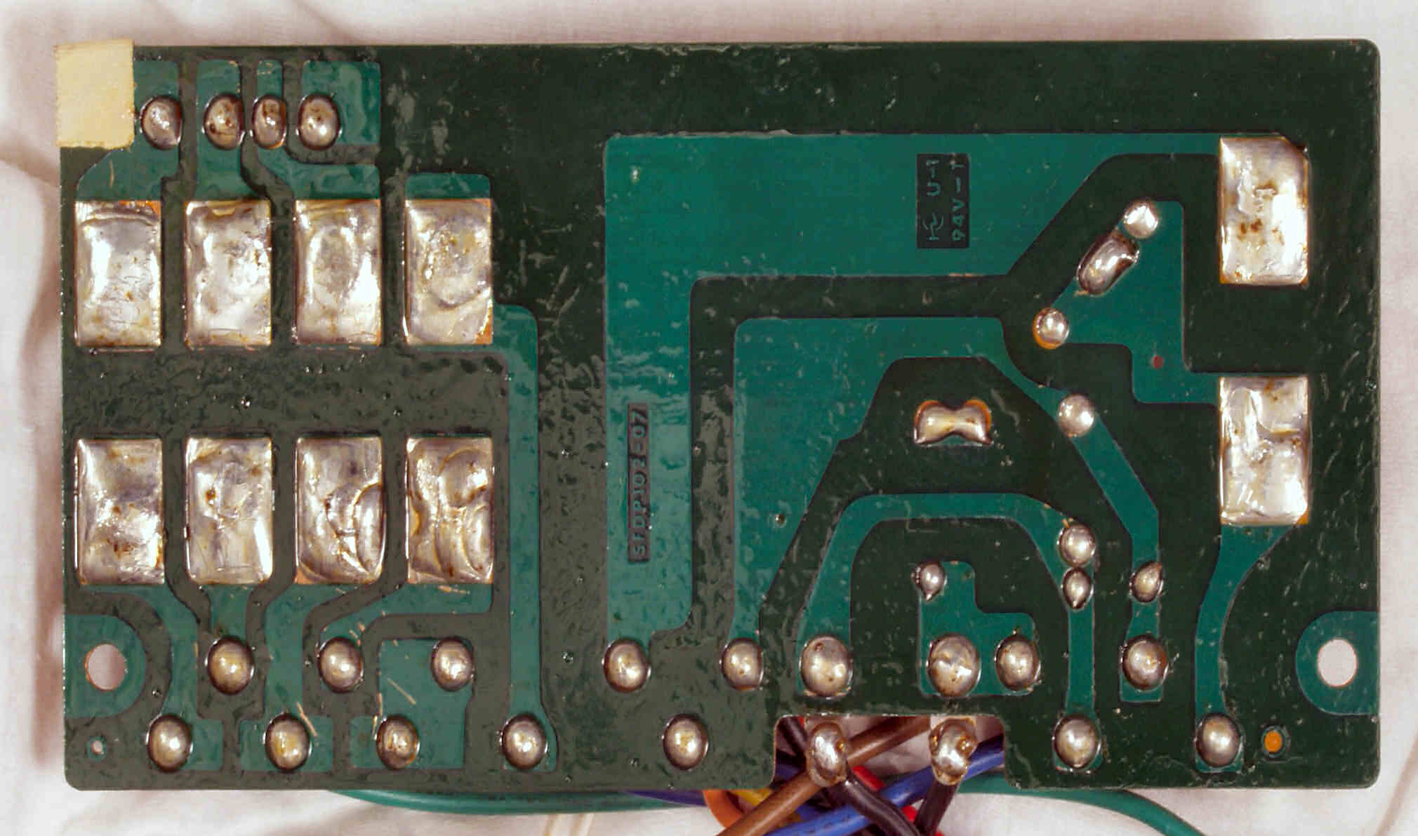 | C23. 修理(半田補正)後 電源ヒューズ基板裏。全ハンダをやり直す。 | ||||||||||||||||||||||||||||||