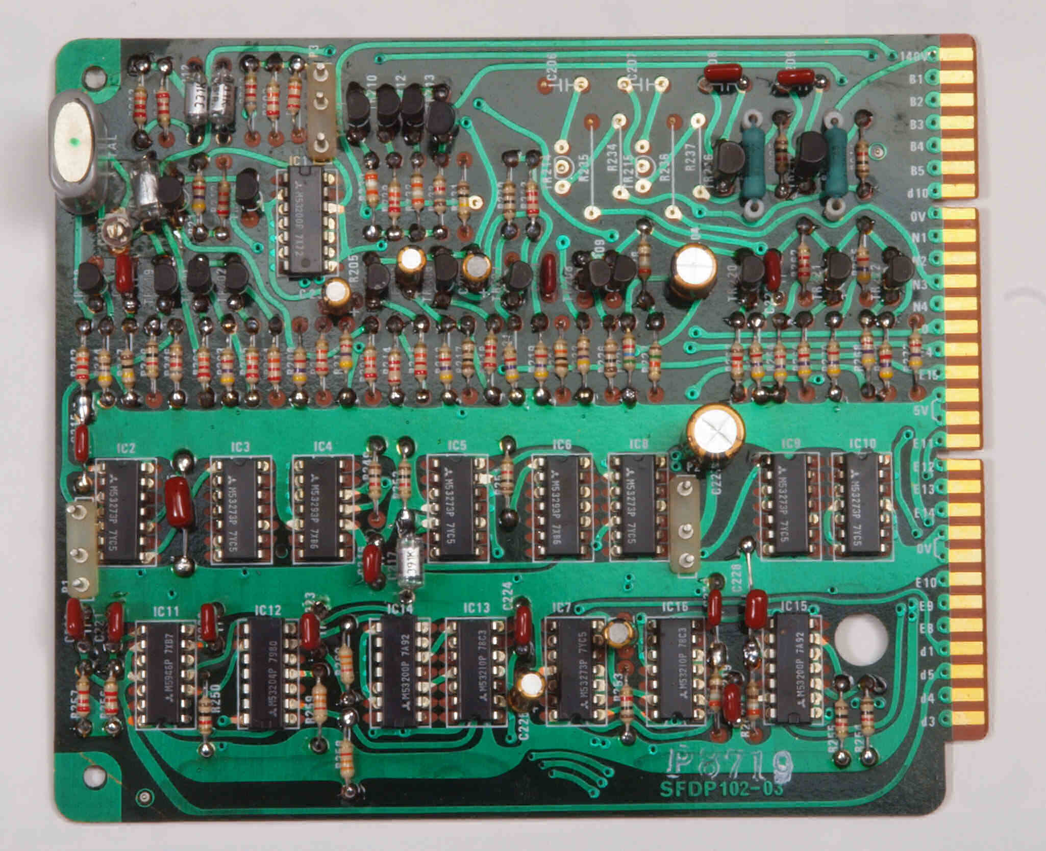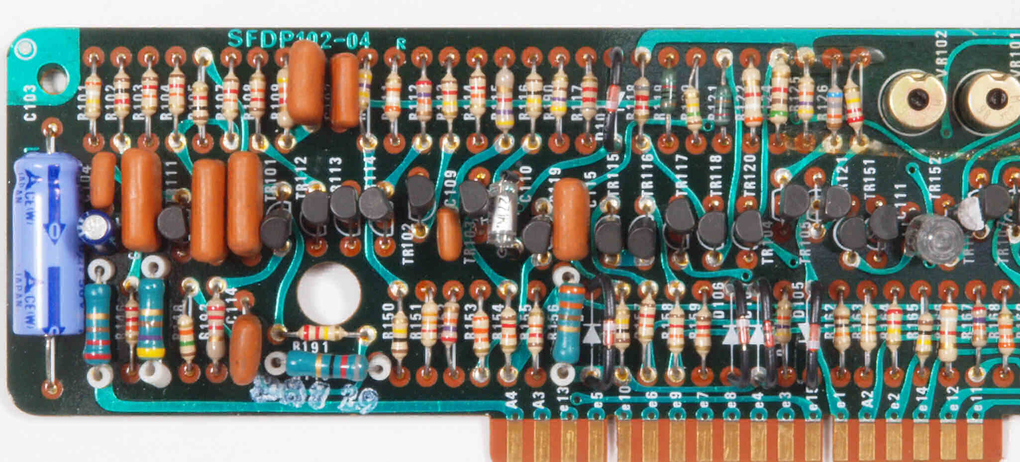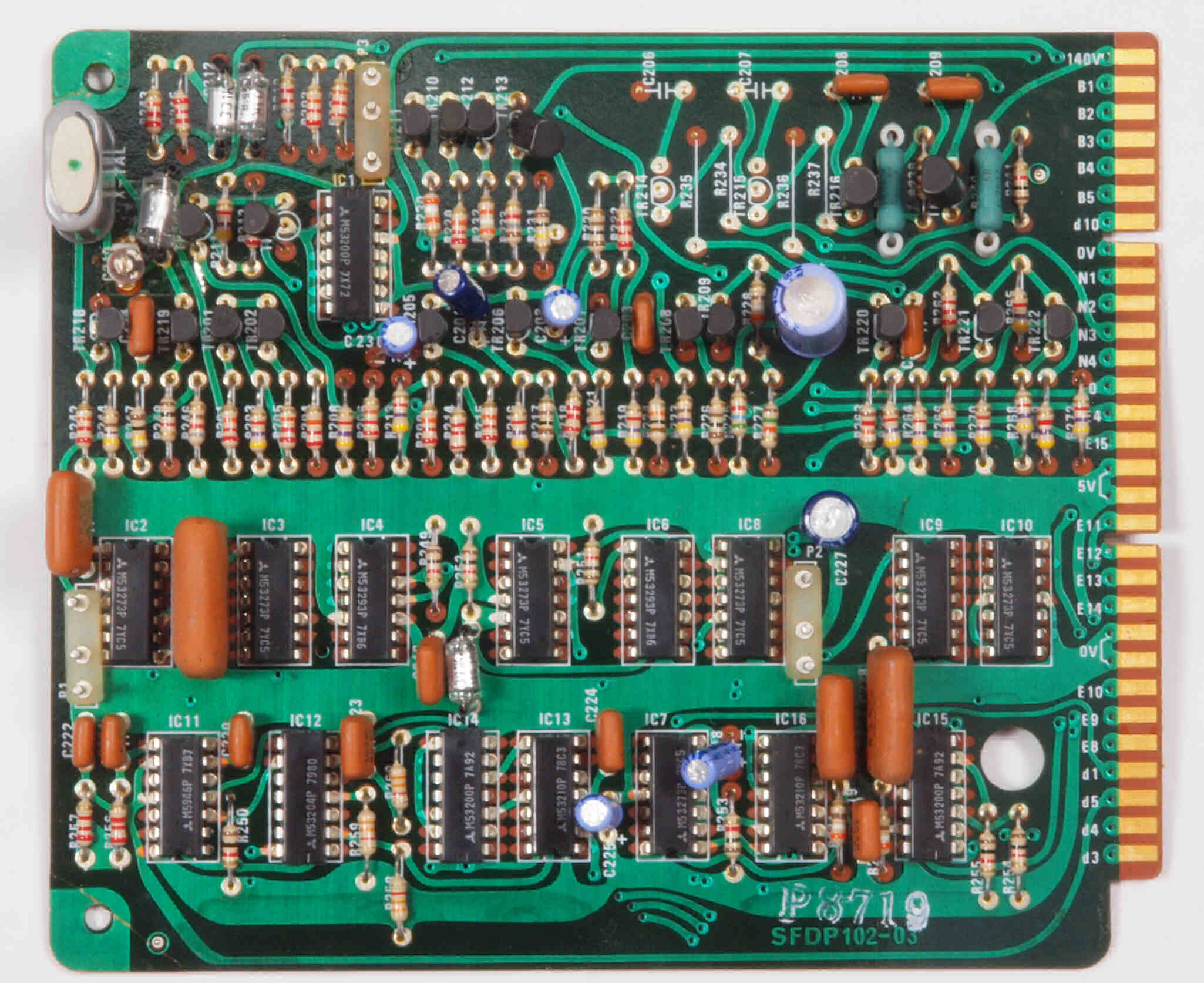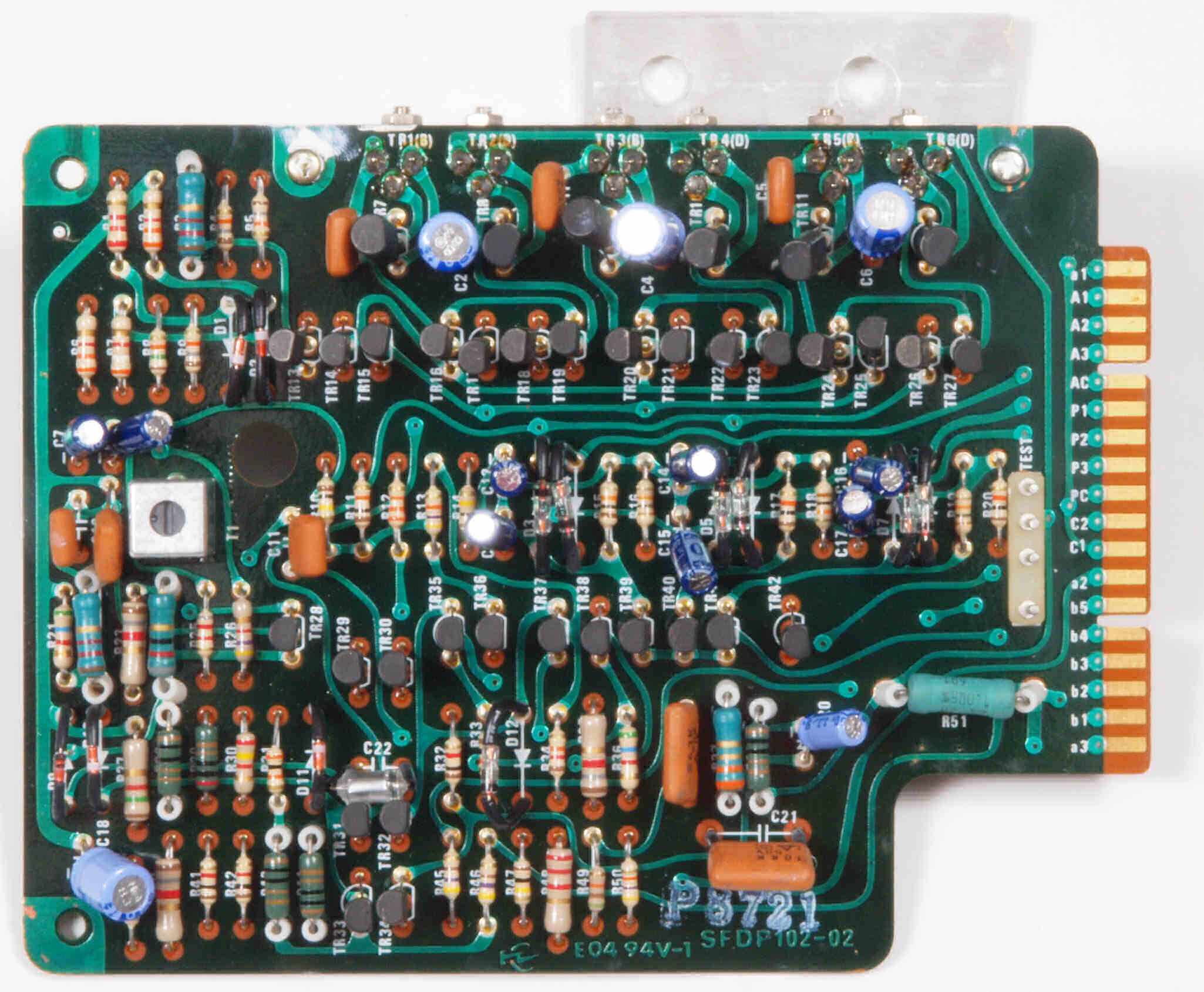 | C62. 修理後 基準発生・速度切替え分周基板 電解コンデンサー7個、フイルムコンデンサー16個交換 | ||||||||||||||||||||||||||||||||||||