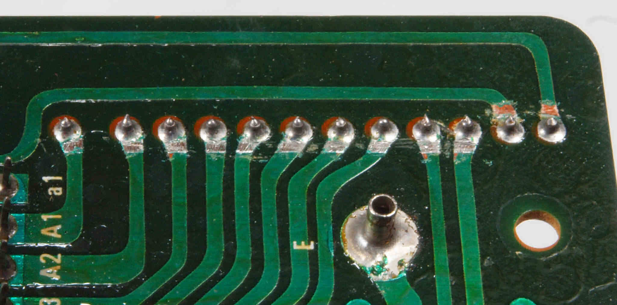 | C732. 完成駆動基板裏。余分なフラックスを落として、コート液を塗る。スルホール半田1。 | ||||||||||||||||||||||||||||||||||||