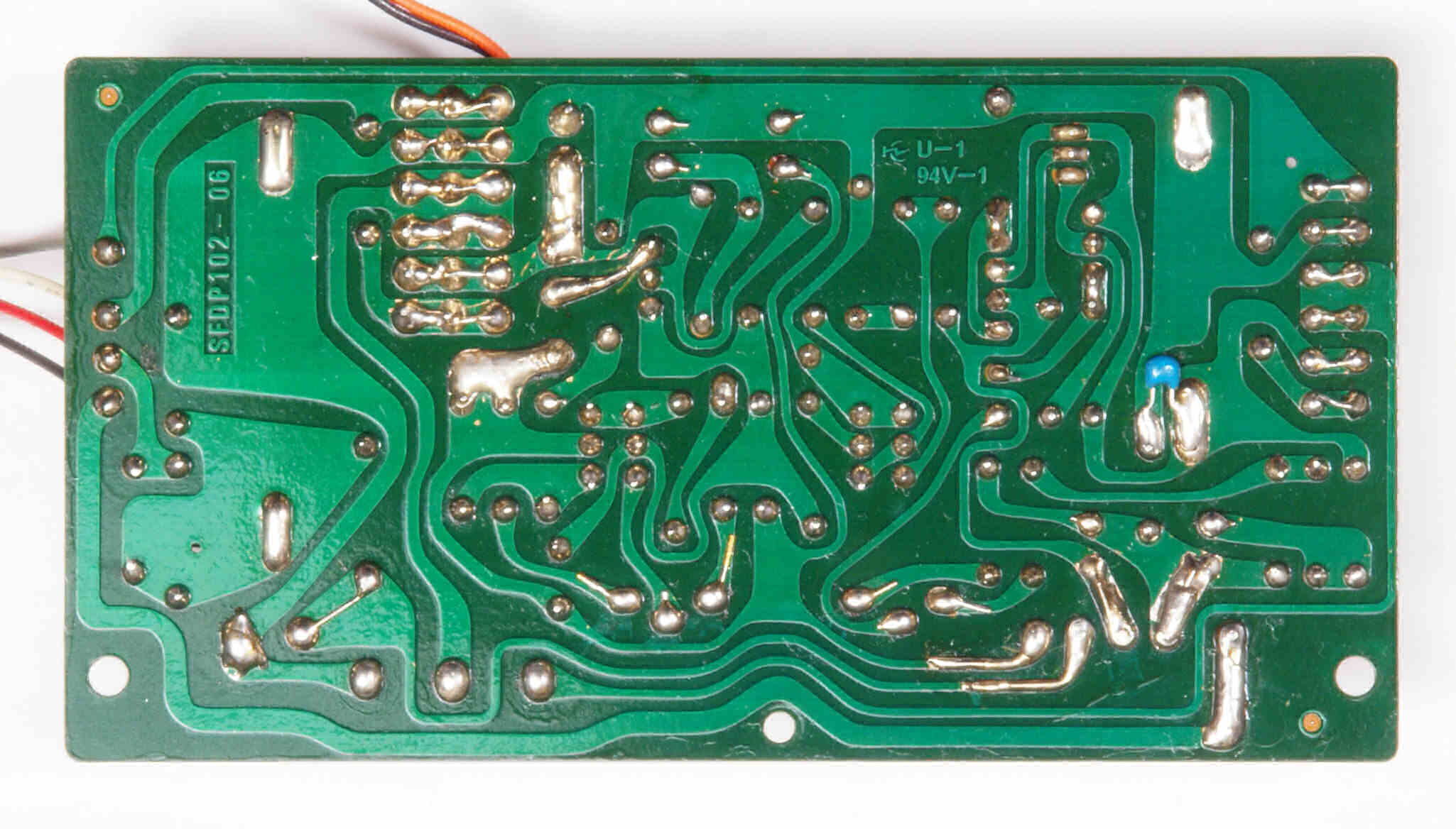 | C832. 完成速度制御基板裏。余分なフラックスを落として、コート液を塗る。スルホール半田1。 | ||||||||||||||||||||||||||||||||||||