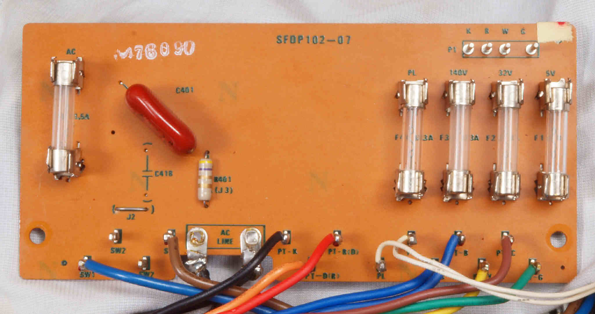 | C23. 修理(半田補正)後 電源ヒューズ基板裏。全ハンダをやり直す。 | ||||||||||||||||||||||||||||||||||||