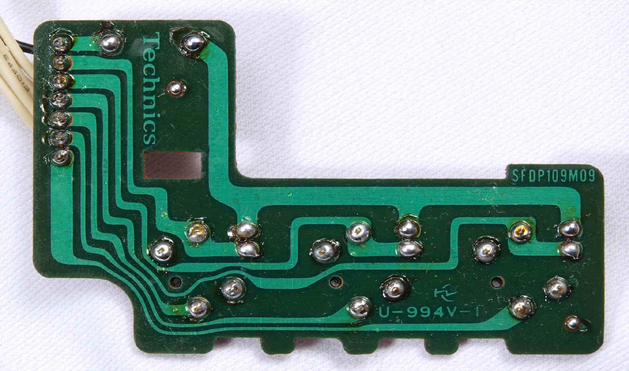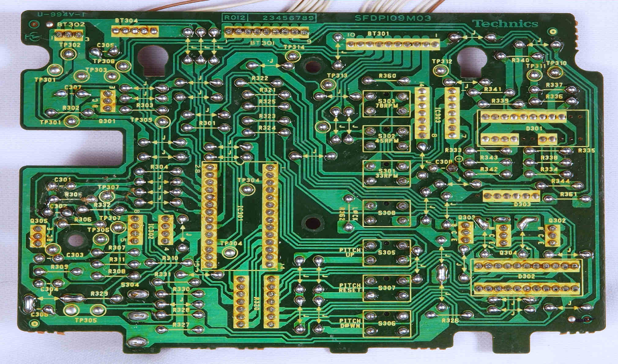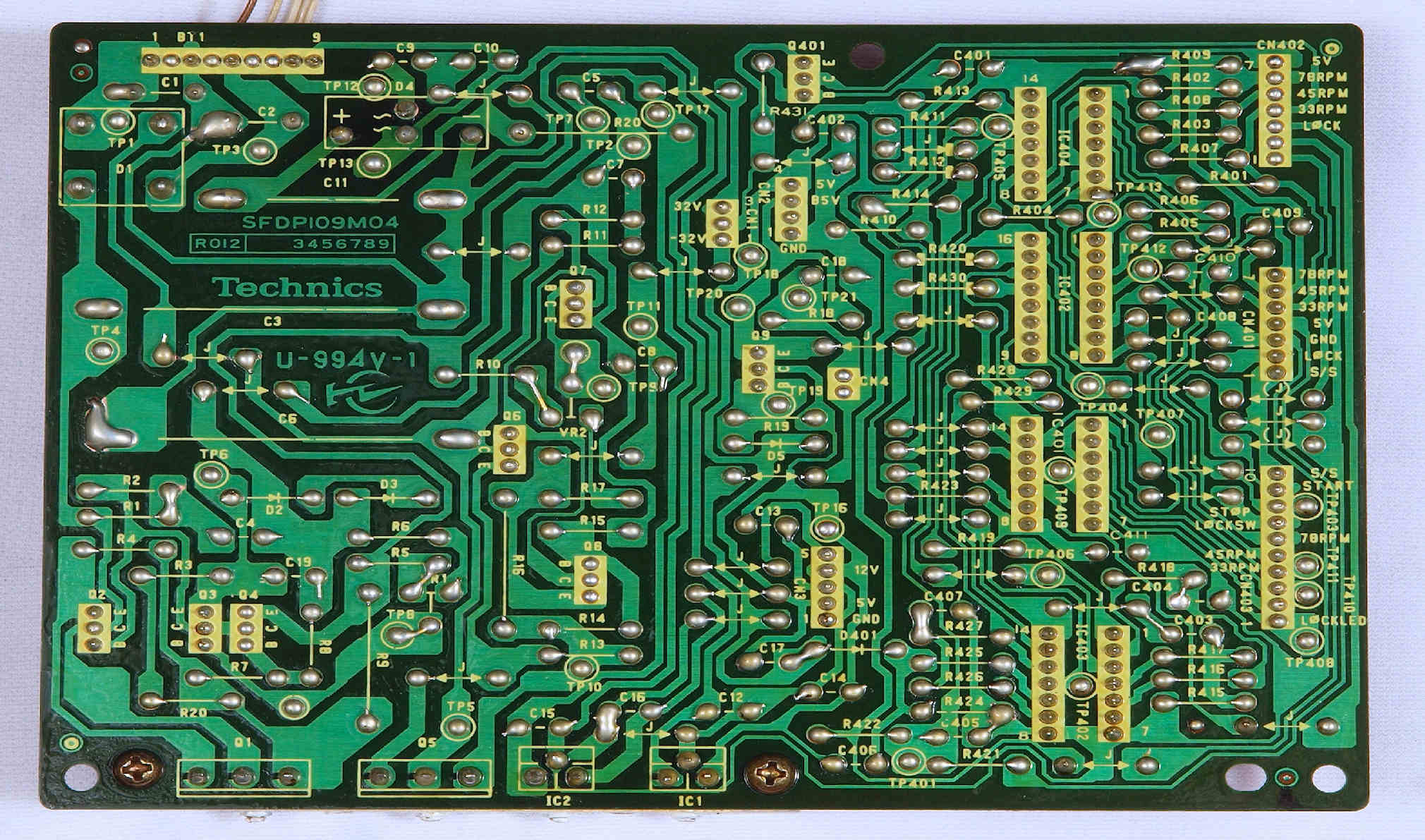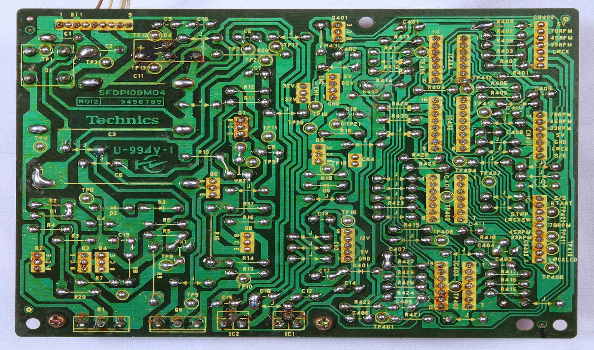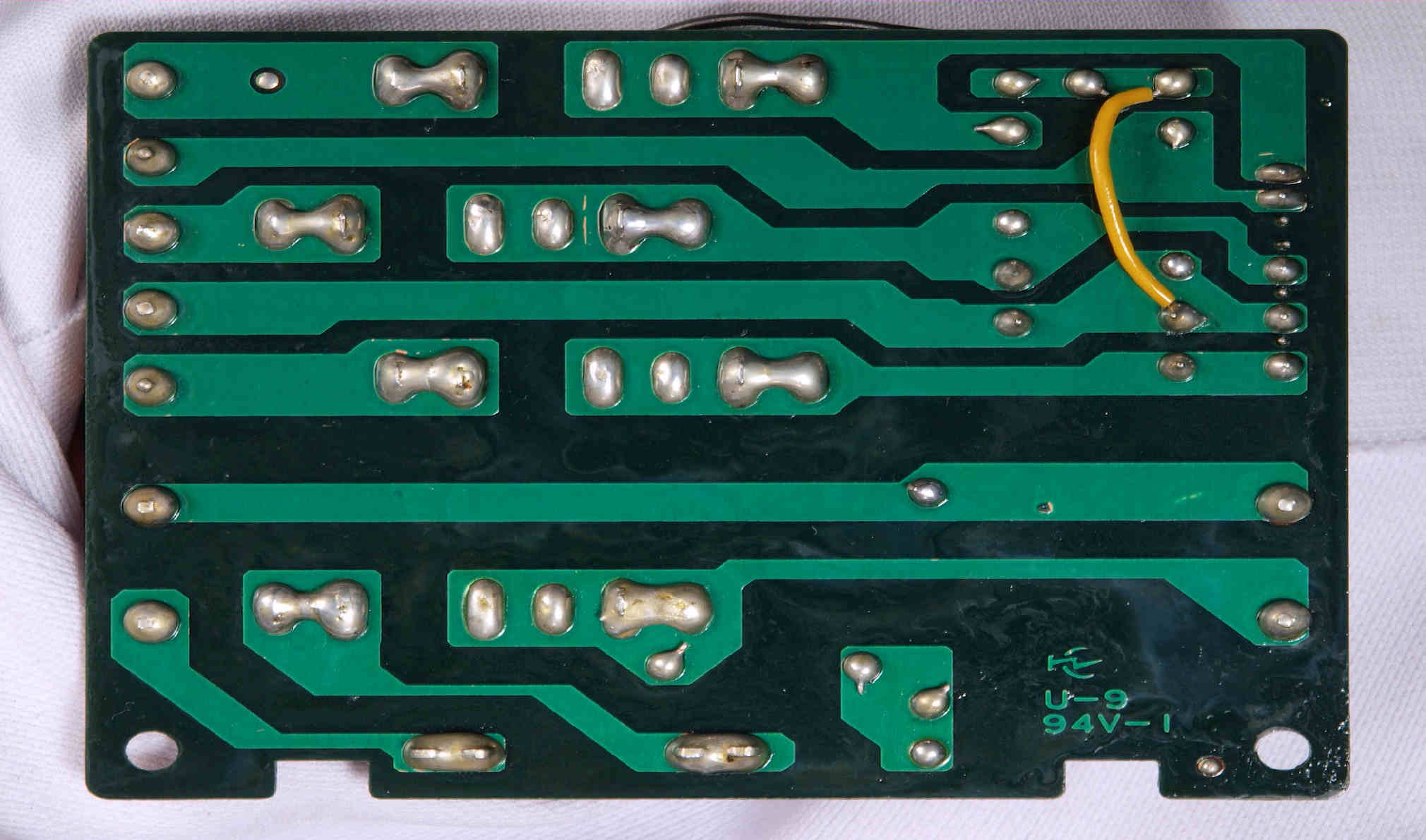 | D35. 完成ターンテーブル操作基板基板裏。 余分なフラックスを落として、コート液を塗る。 | ||||||||||||||||||||||||||||||||||||||||