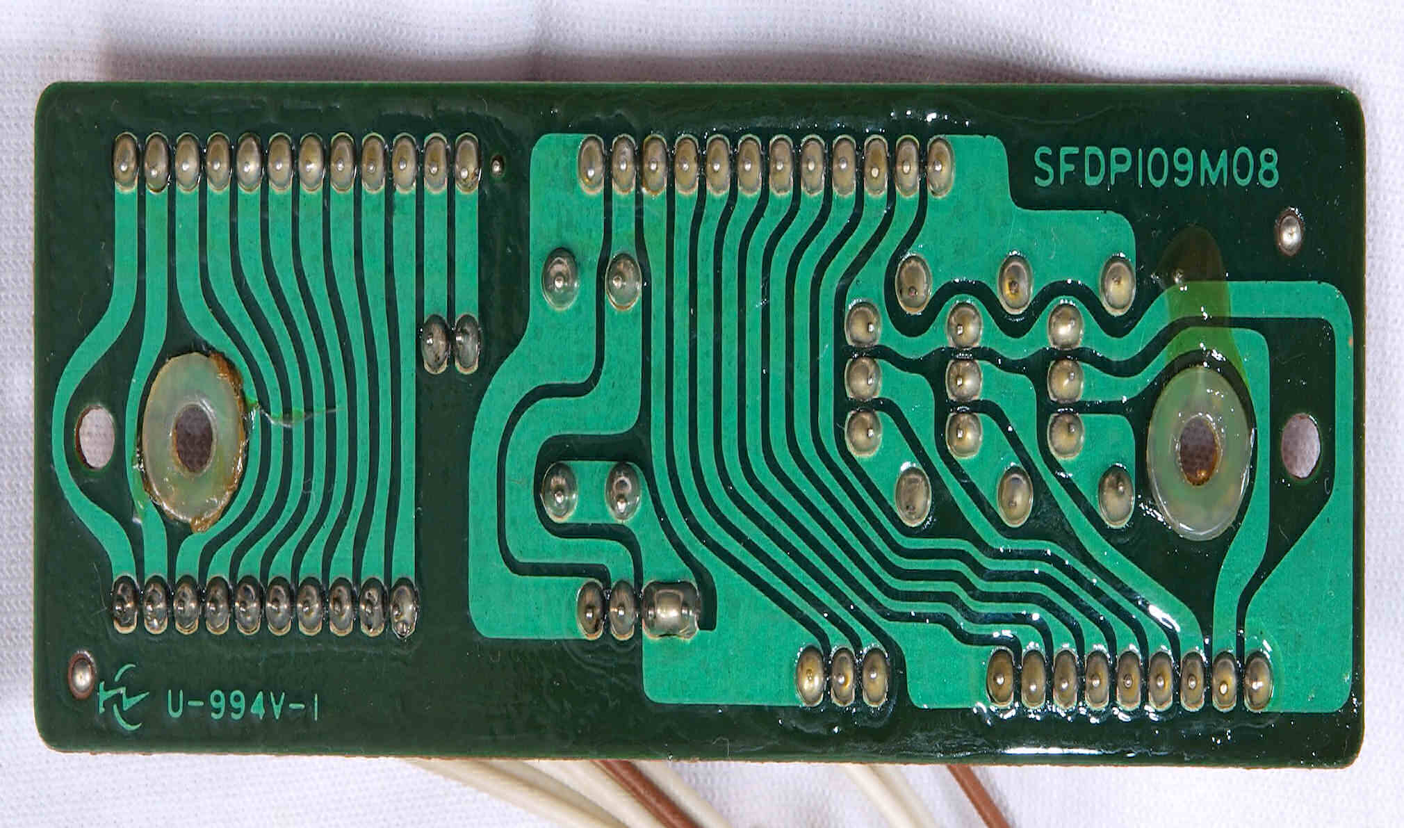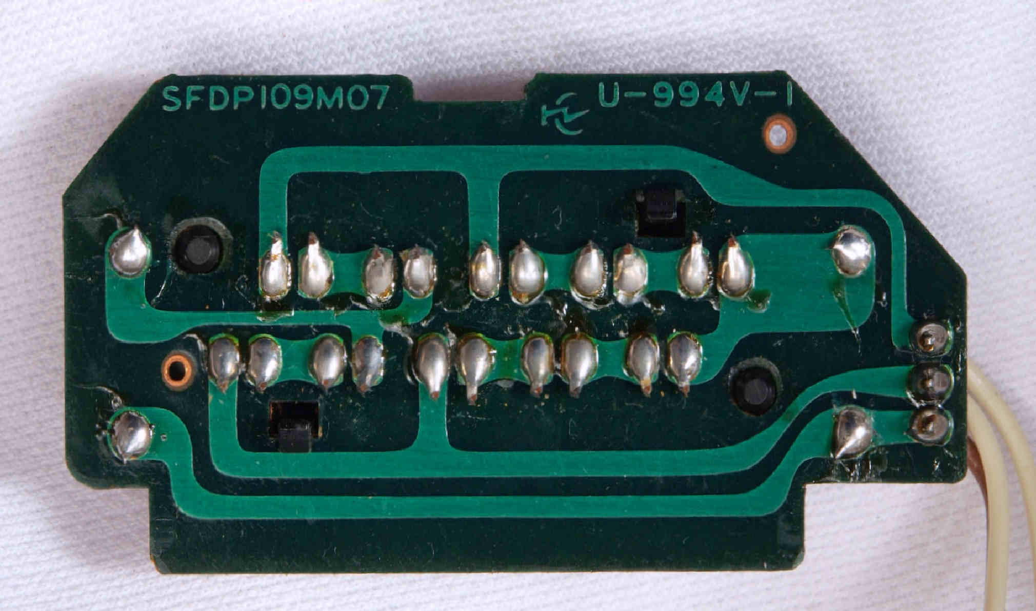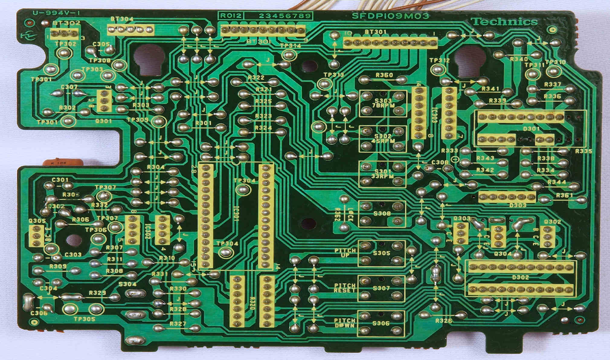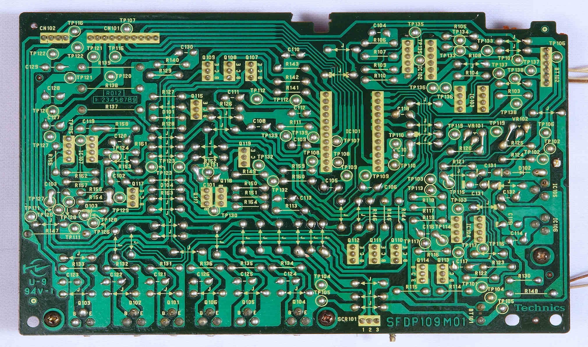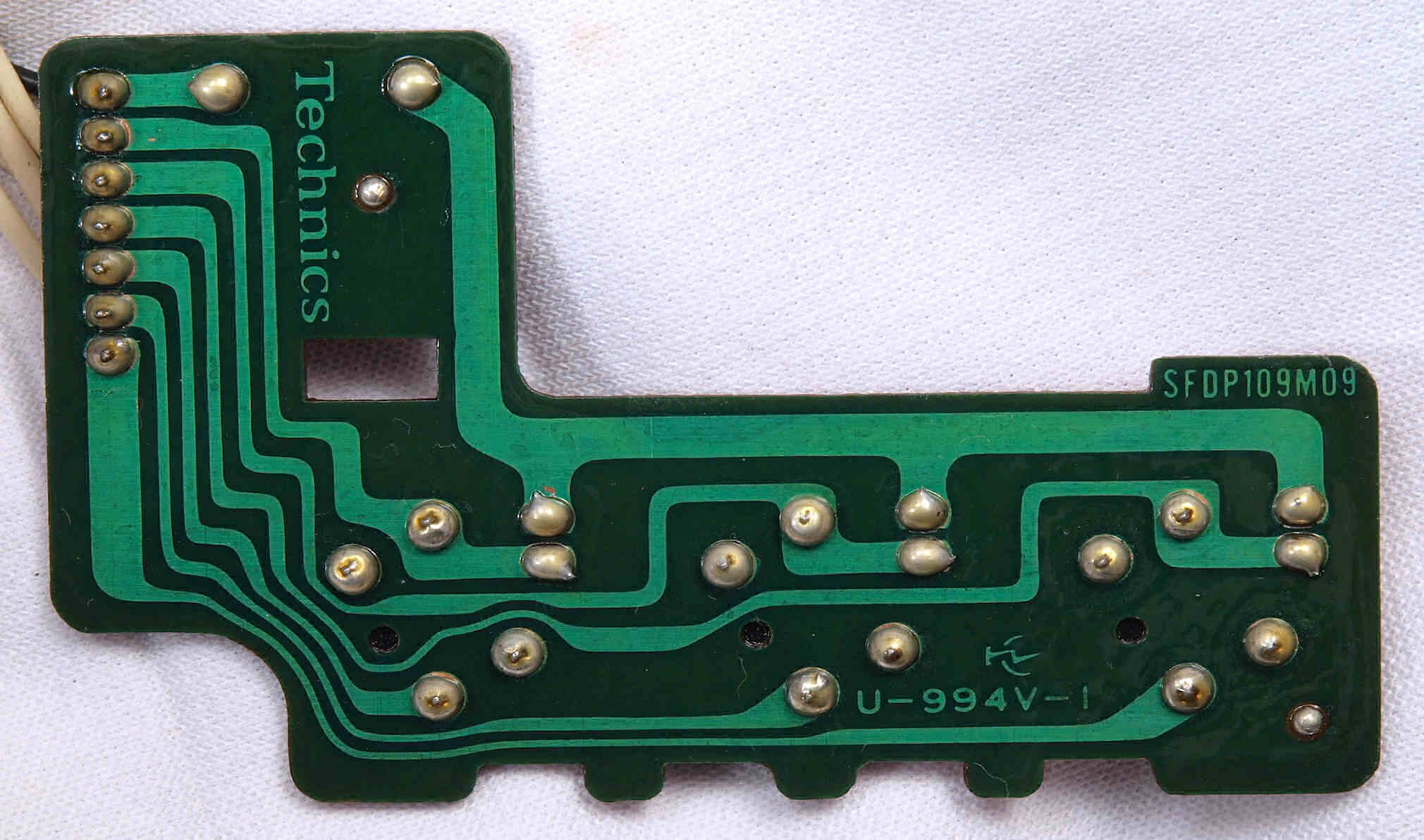 | D35. 完成ターンテーブル操作基板基板裏。 余分なフラックスを落として、コート液を塗る。 | ||||||||||||||||||||||||||||||||||||||||
