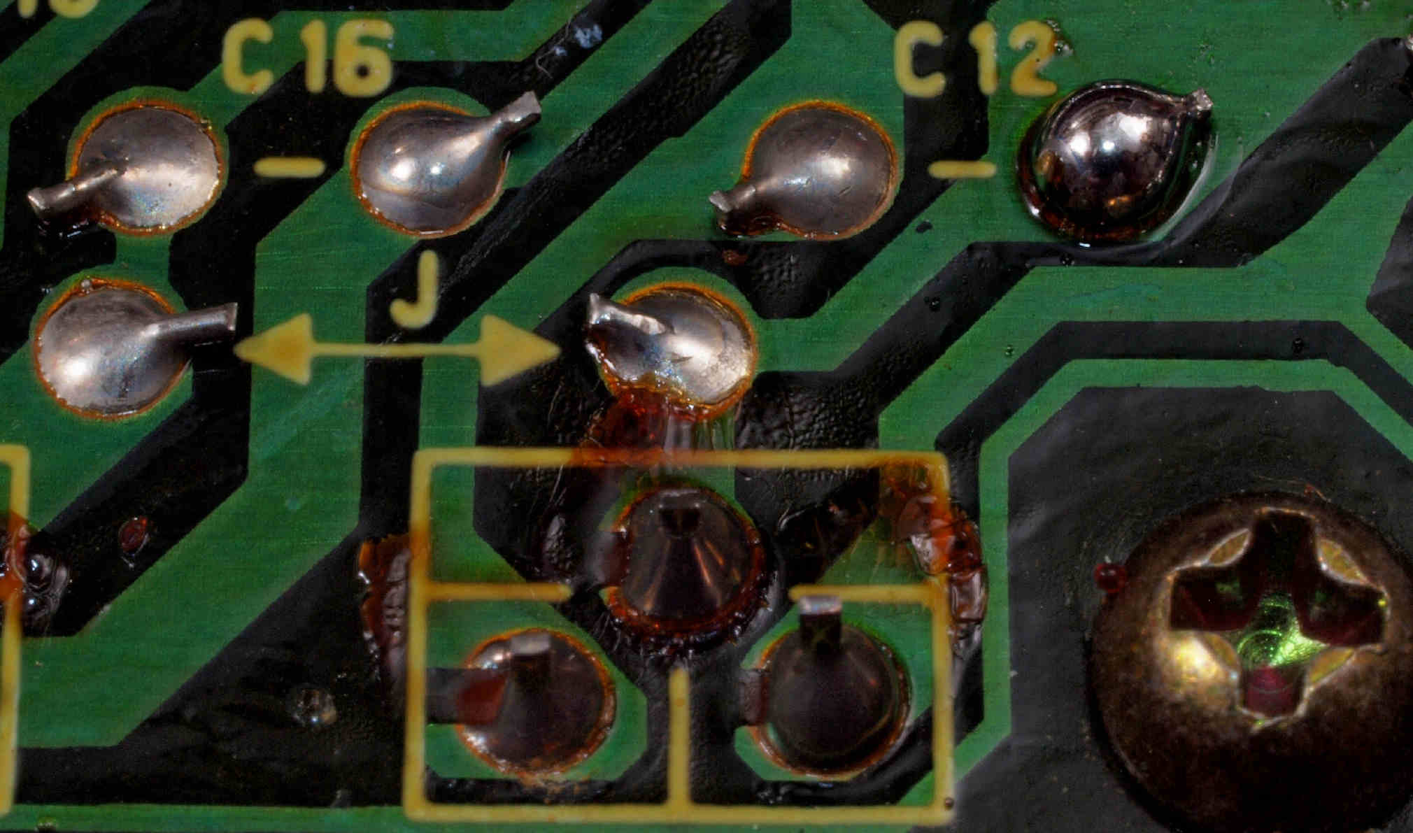 | C332. 修理中 操作回路基板裏。 ハンダ不良ヶ所。 | ||||||||||||||||||||||||||||||||||||||||