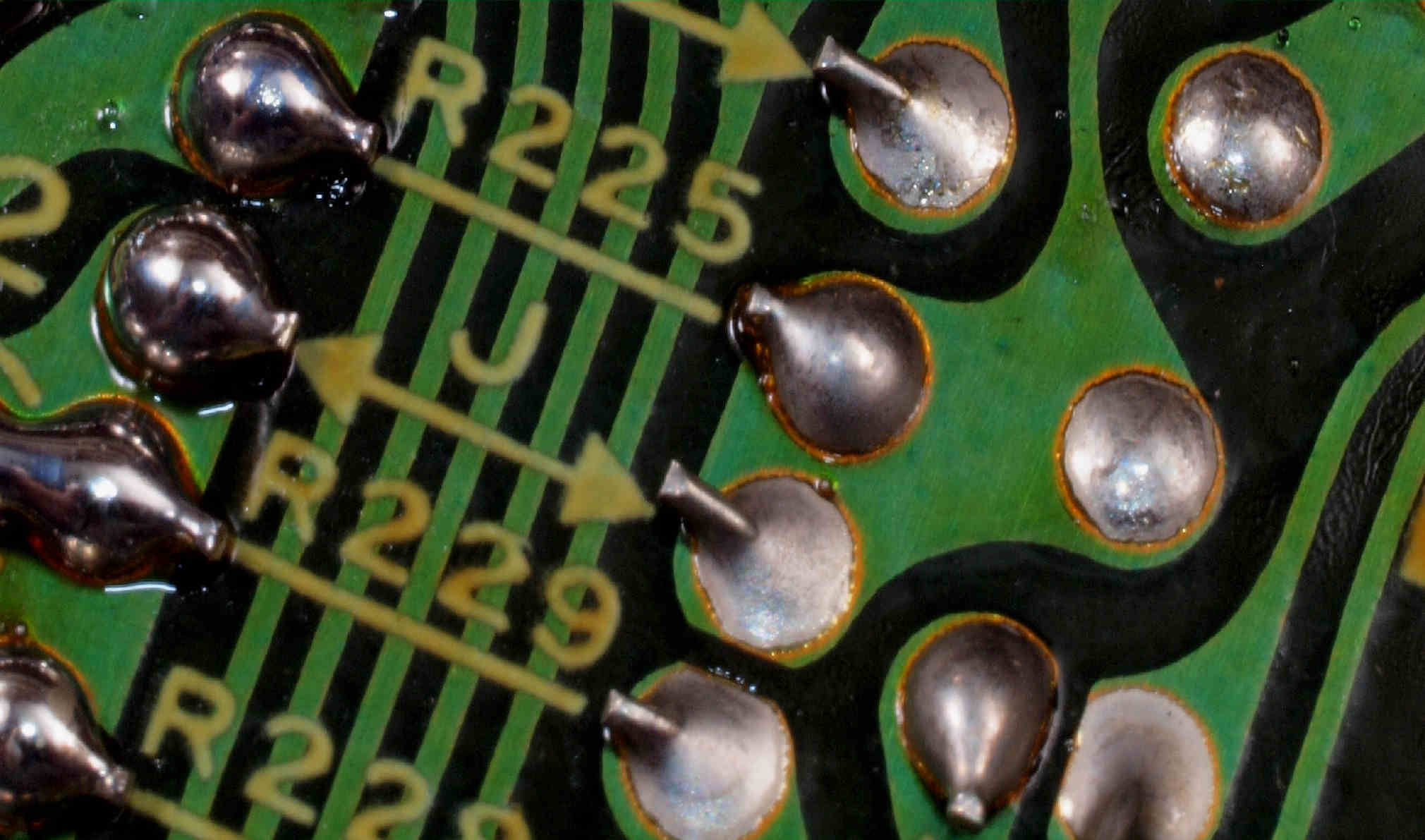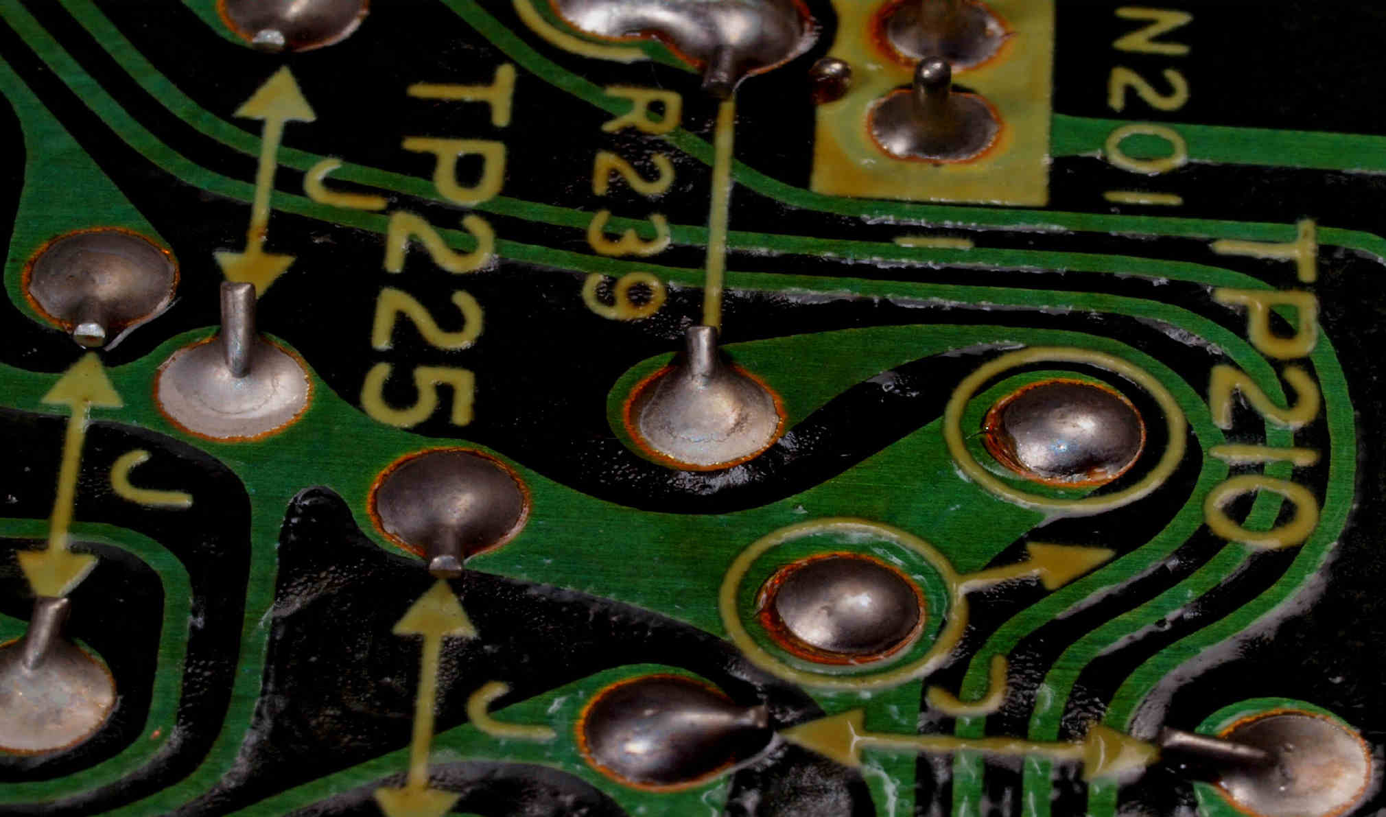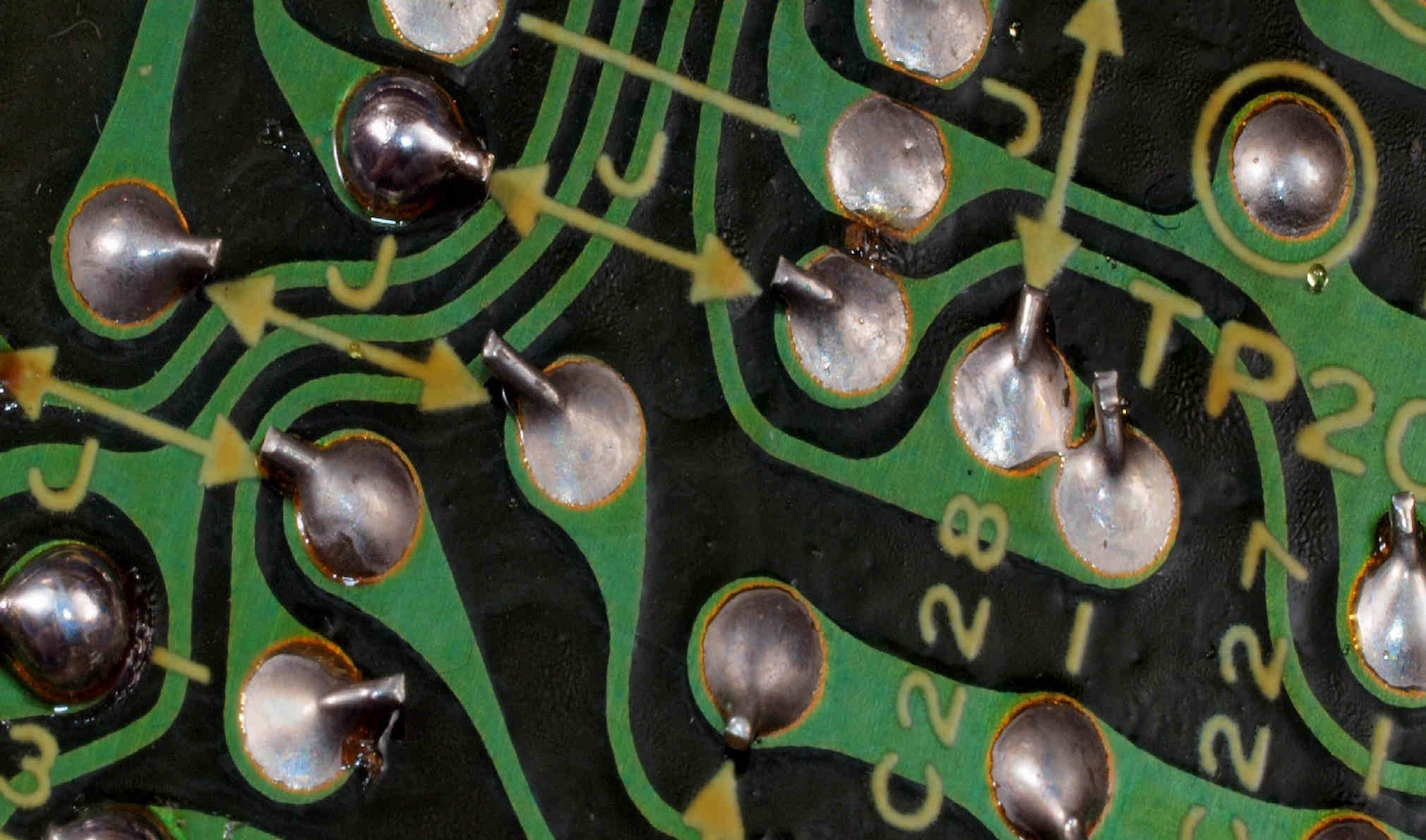 | C64. 完成ヒューズ基板裏。余分なフラックスを落として、コート液を塗る。 | ||||||||||||||||||||||||||||||||||||||||