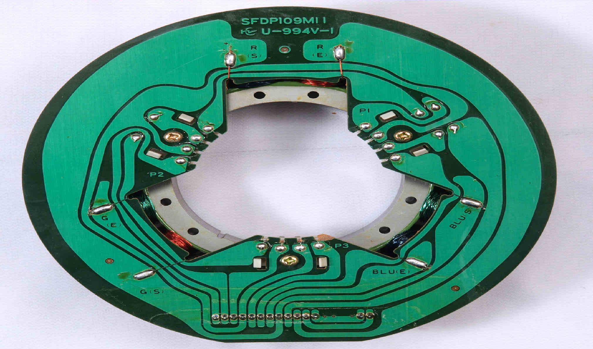 | M513. 修理中、 アマチュア(回転子)基盤裏巻線半田、引き出し線が絶縁していない!(GREEN巻線)拡大 | ||||||||||||||||||||||||||||||||||||||||