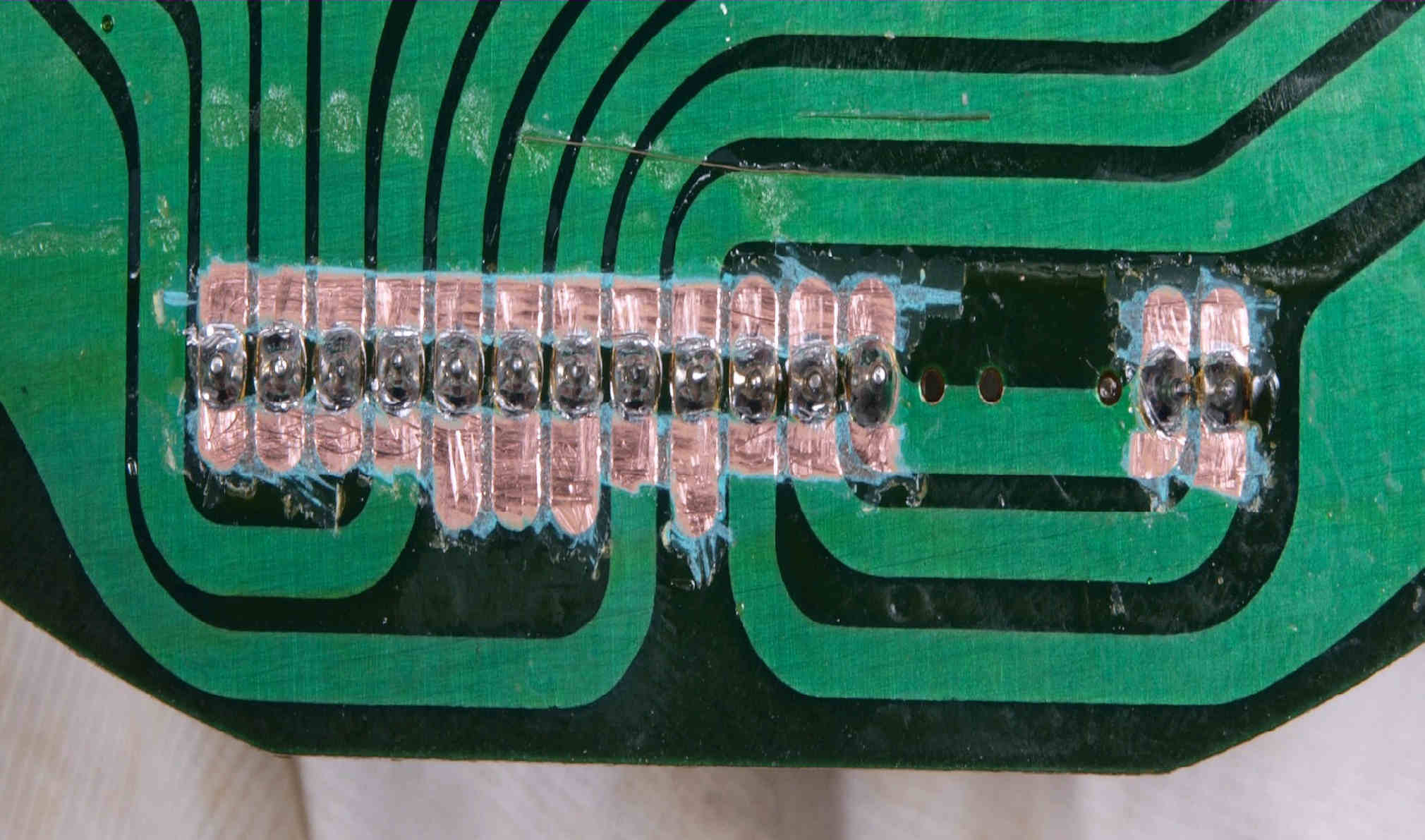 | C432. 修理中 制御回路基板裏。 曲げる方向が悪く下の銅箔に? | ||||||||||||||||||||||||||||||||||||||||