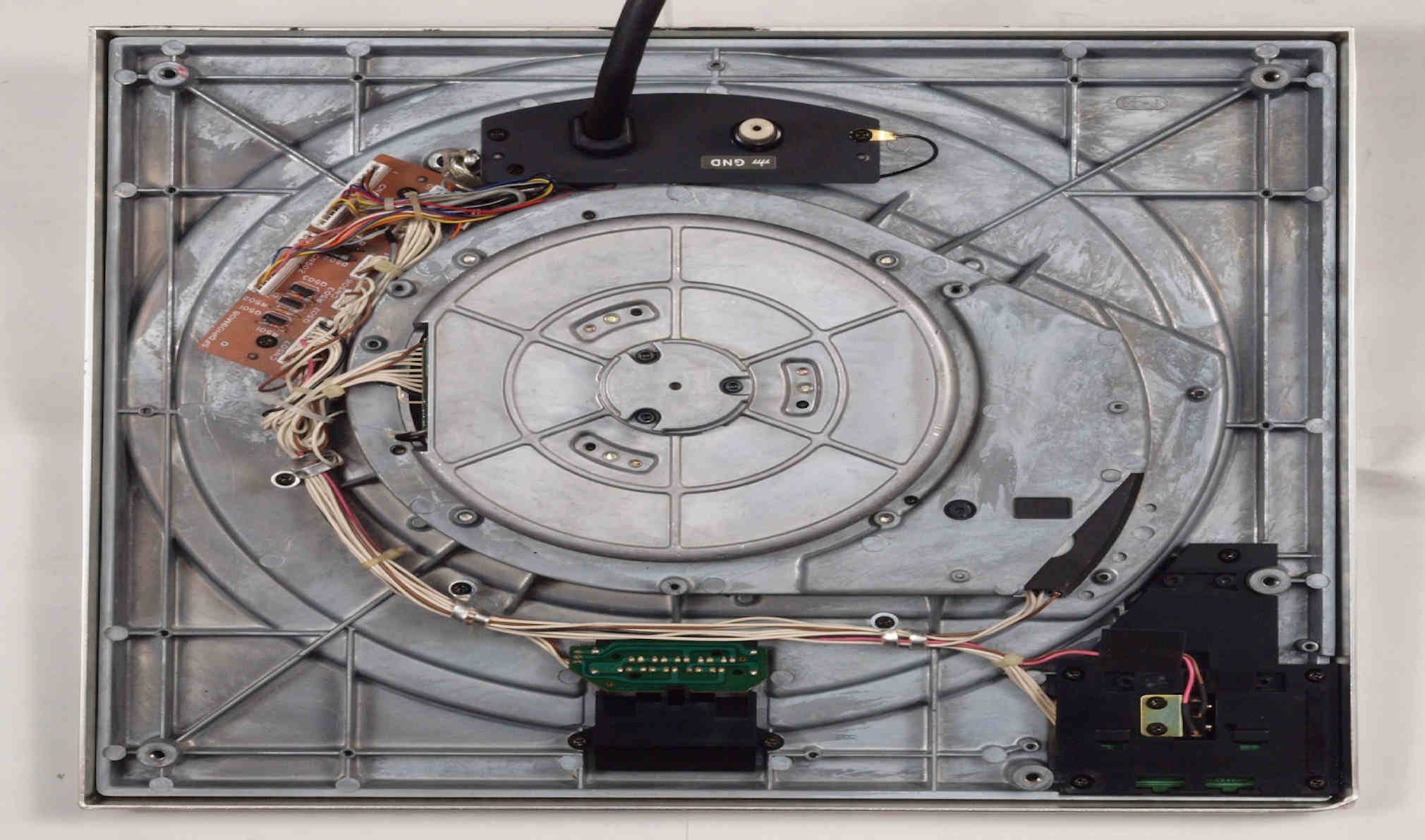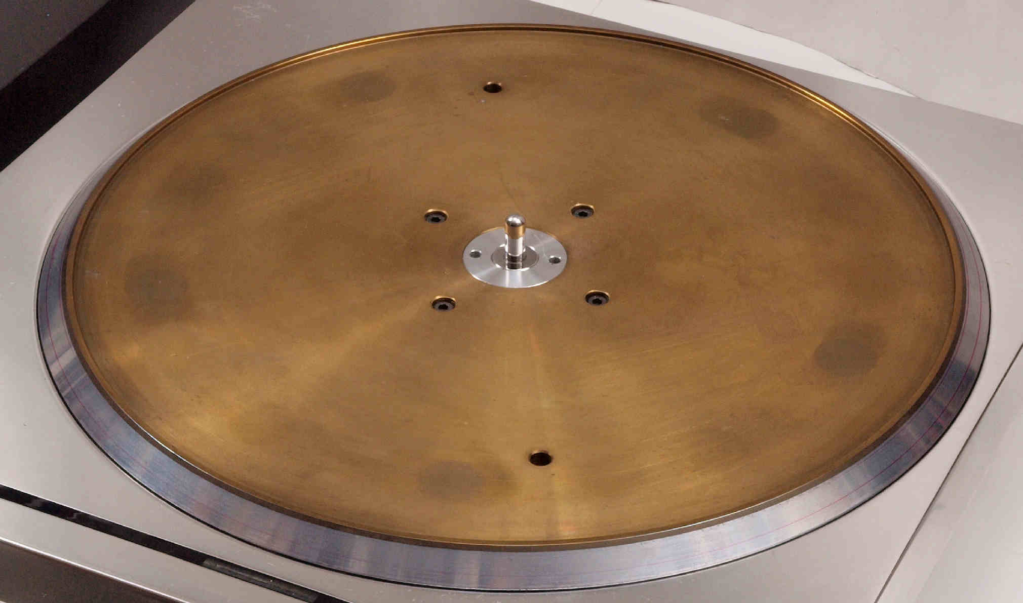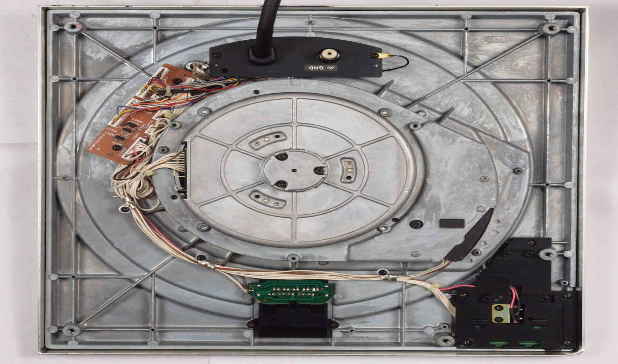 | D. 本体(タンテーブル)修理状況。 画像をクリックすると、大きく(横幅2050ドット)表示されます。 D01. 修理前 上から見る。 |