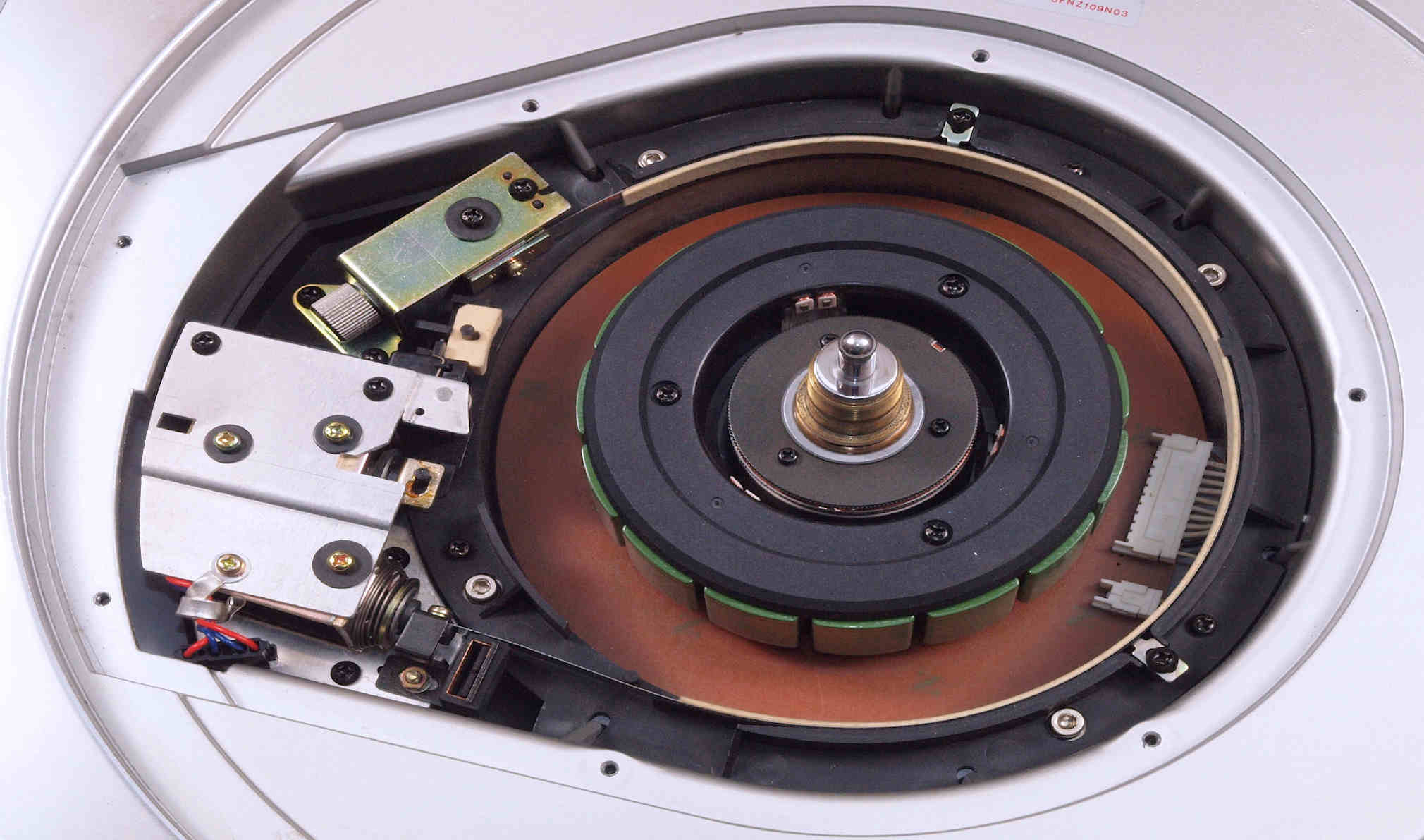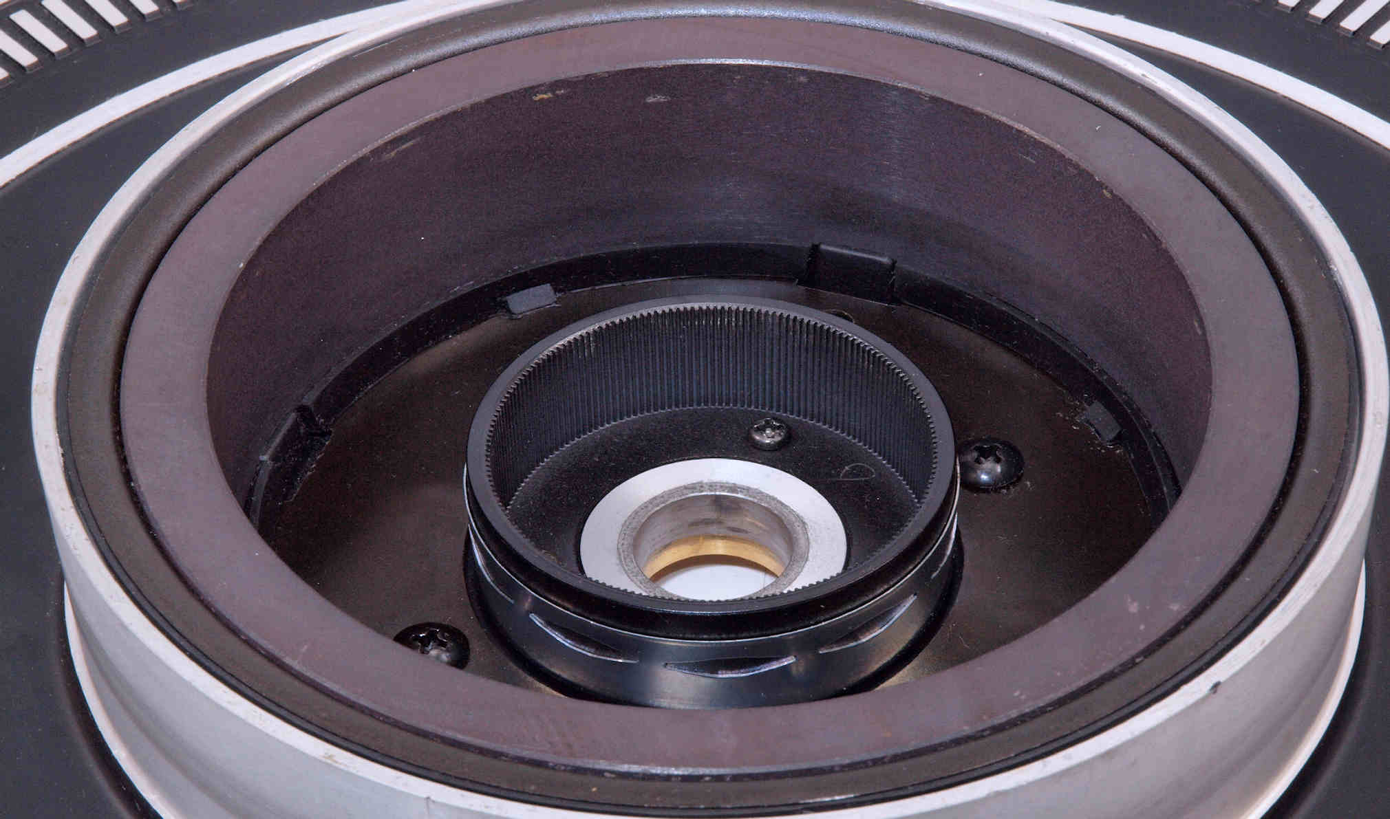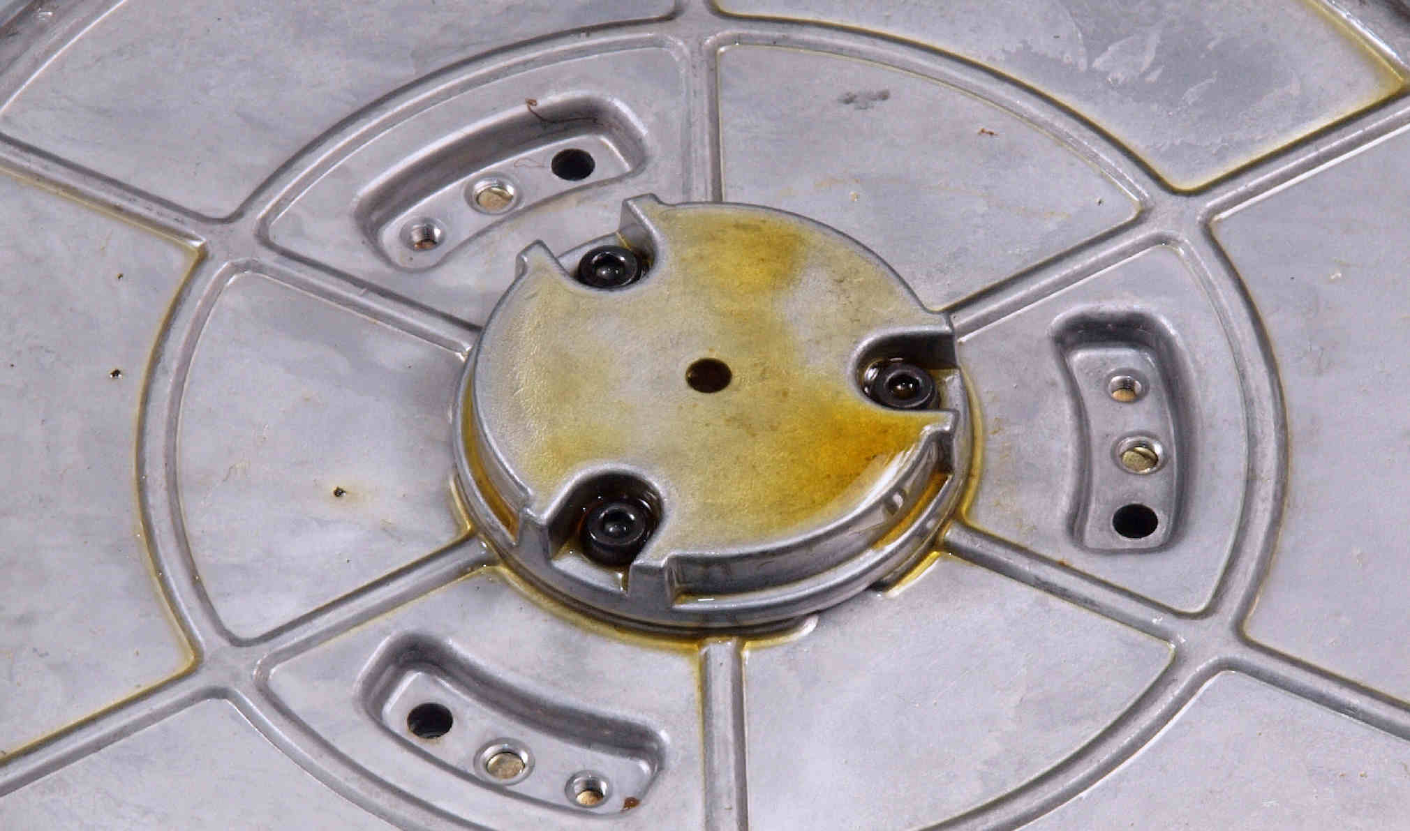 | D. 本体(タンテーブル)修理状況。 画像をクリックすると、大きく(横幅2050ドット)表示されます。 D01. 修理前 上から見る。 |