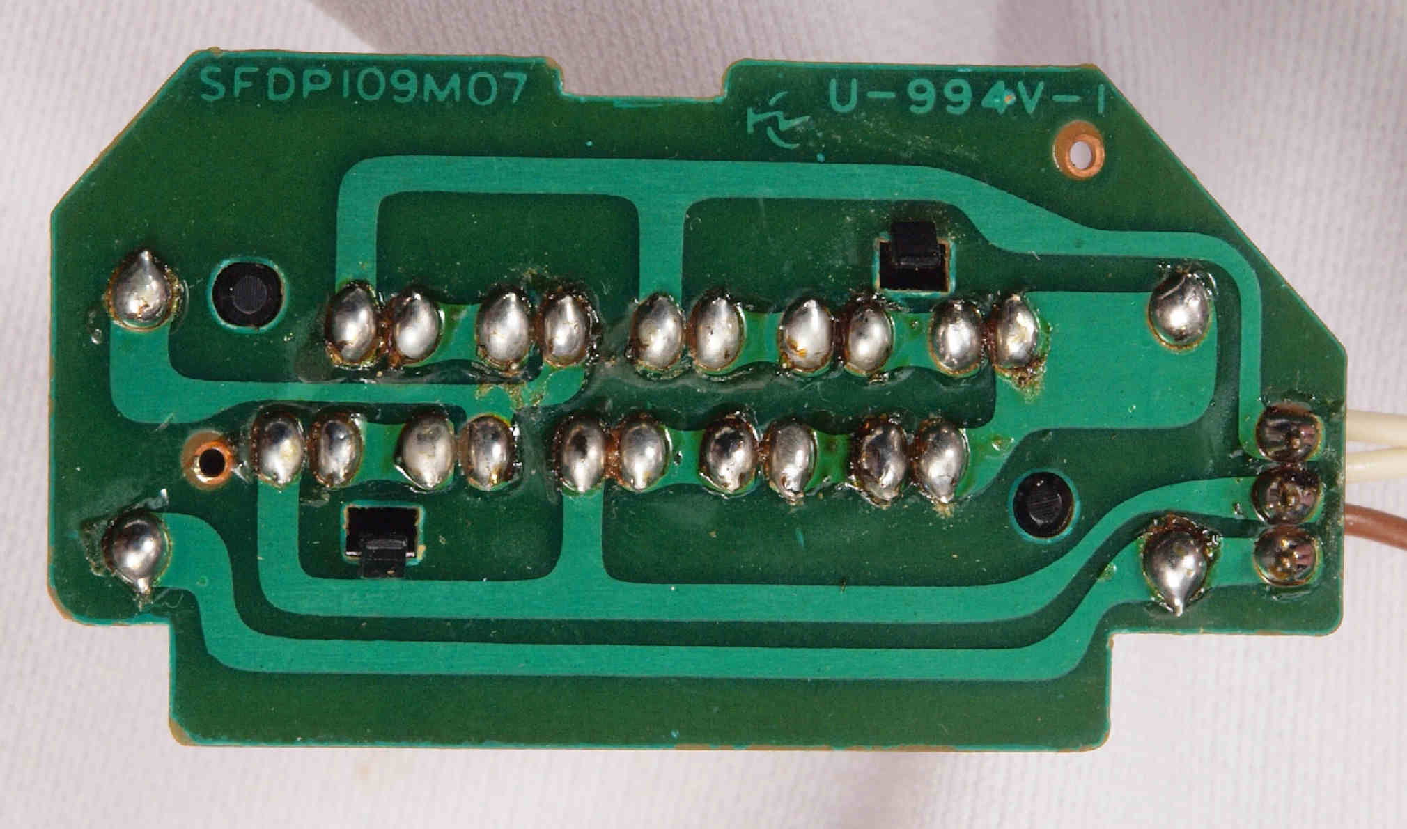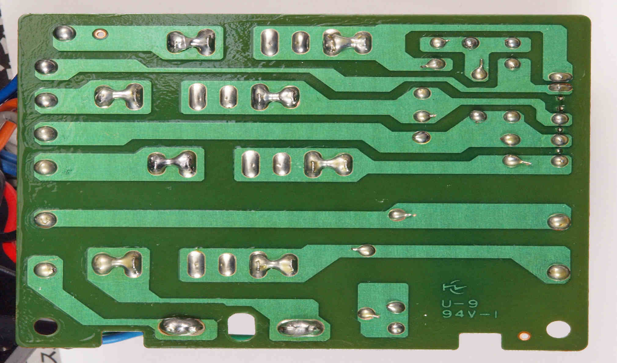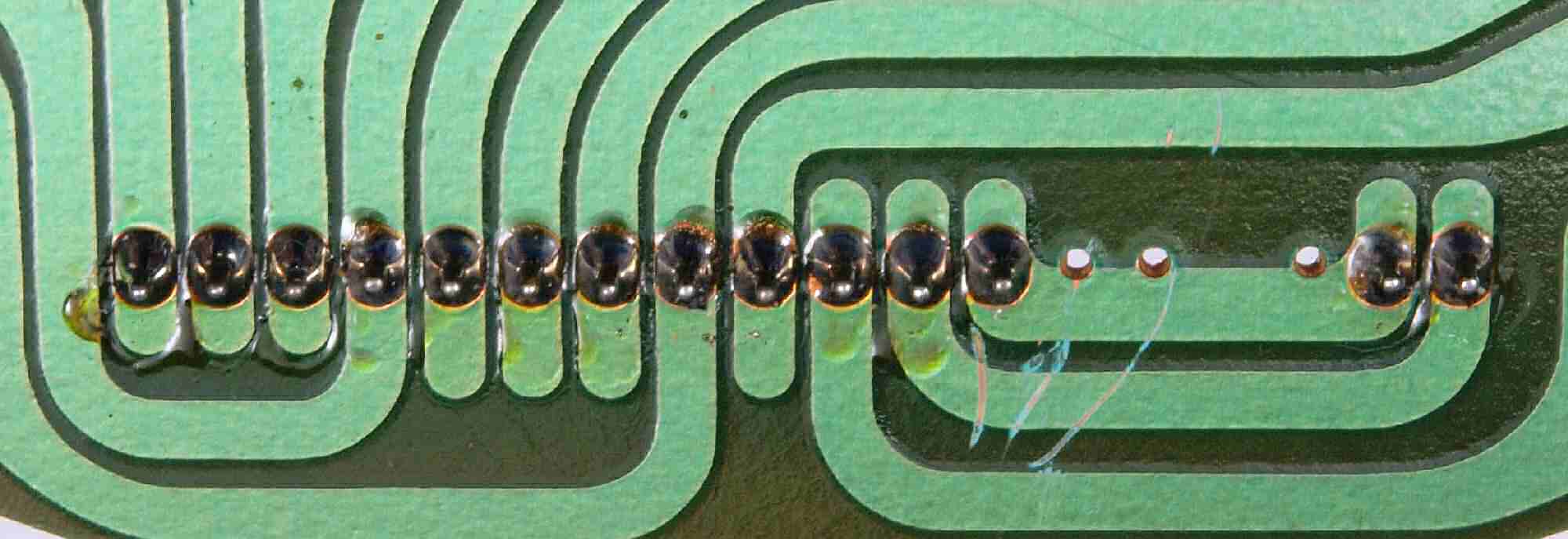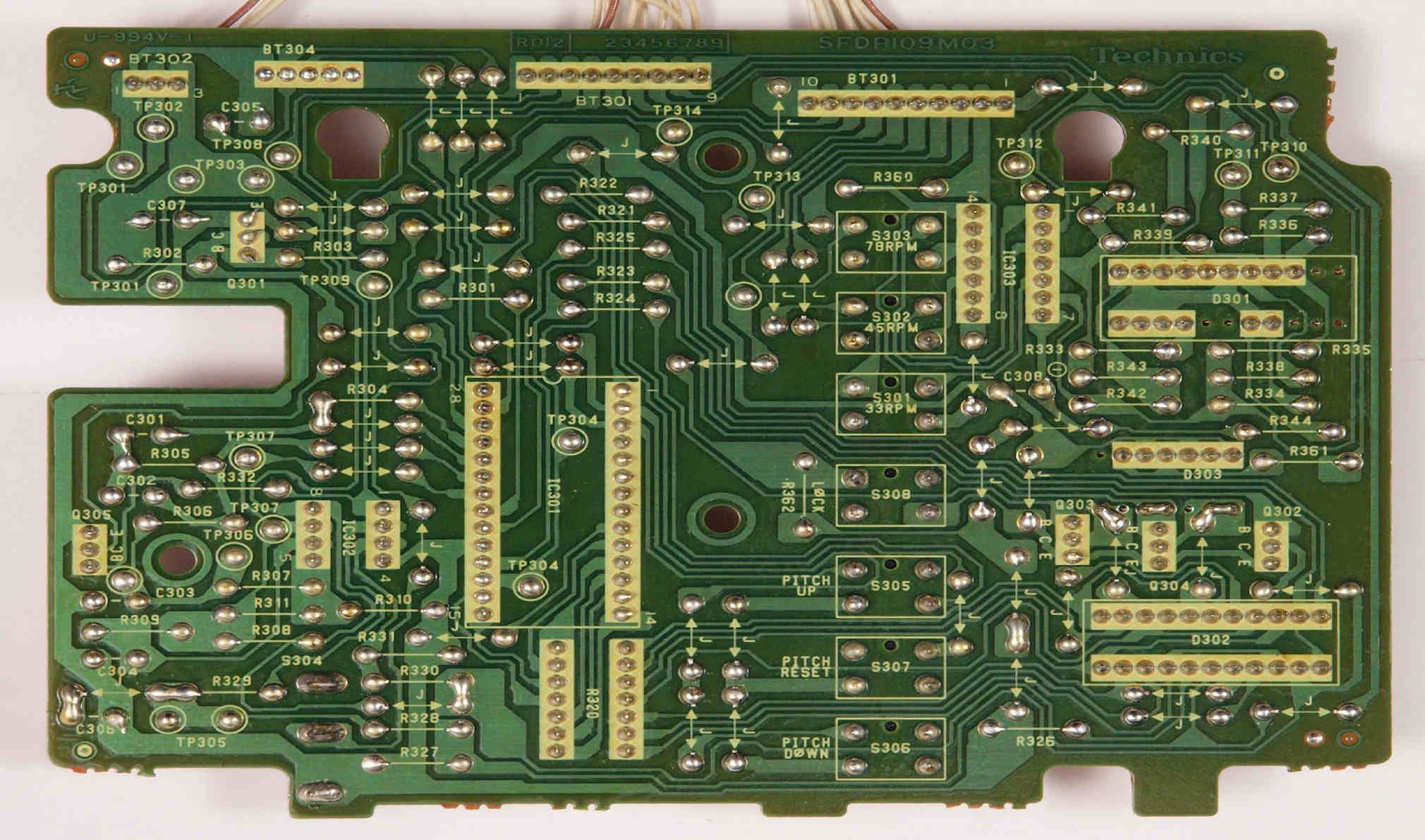 | D35. 完成ターンテーブル操作基板基板裏。 余分なフラックスを落として、コート液を塗る。 | ||||||||||||||||||||||||||||||||||||||||