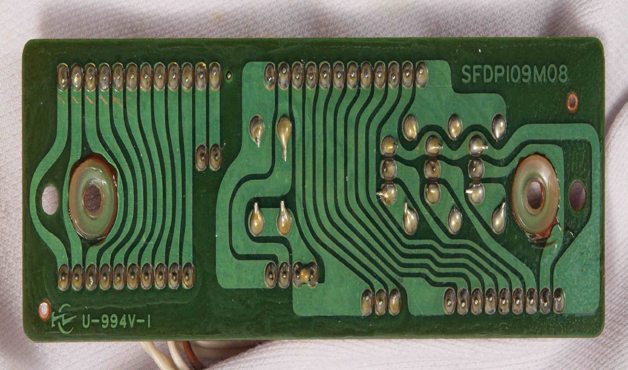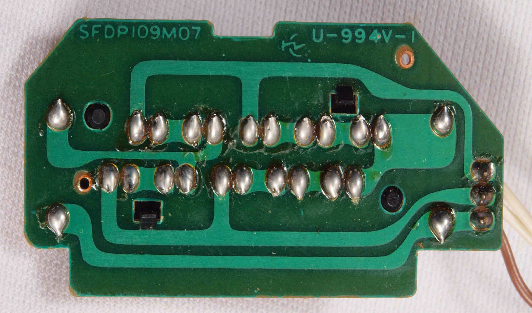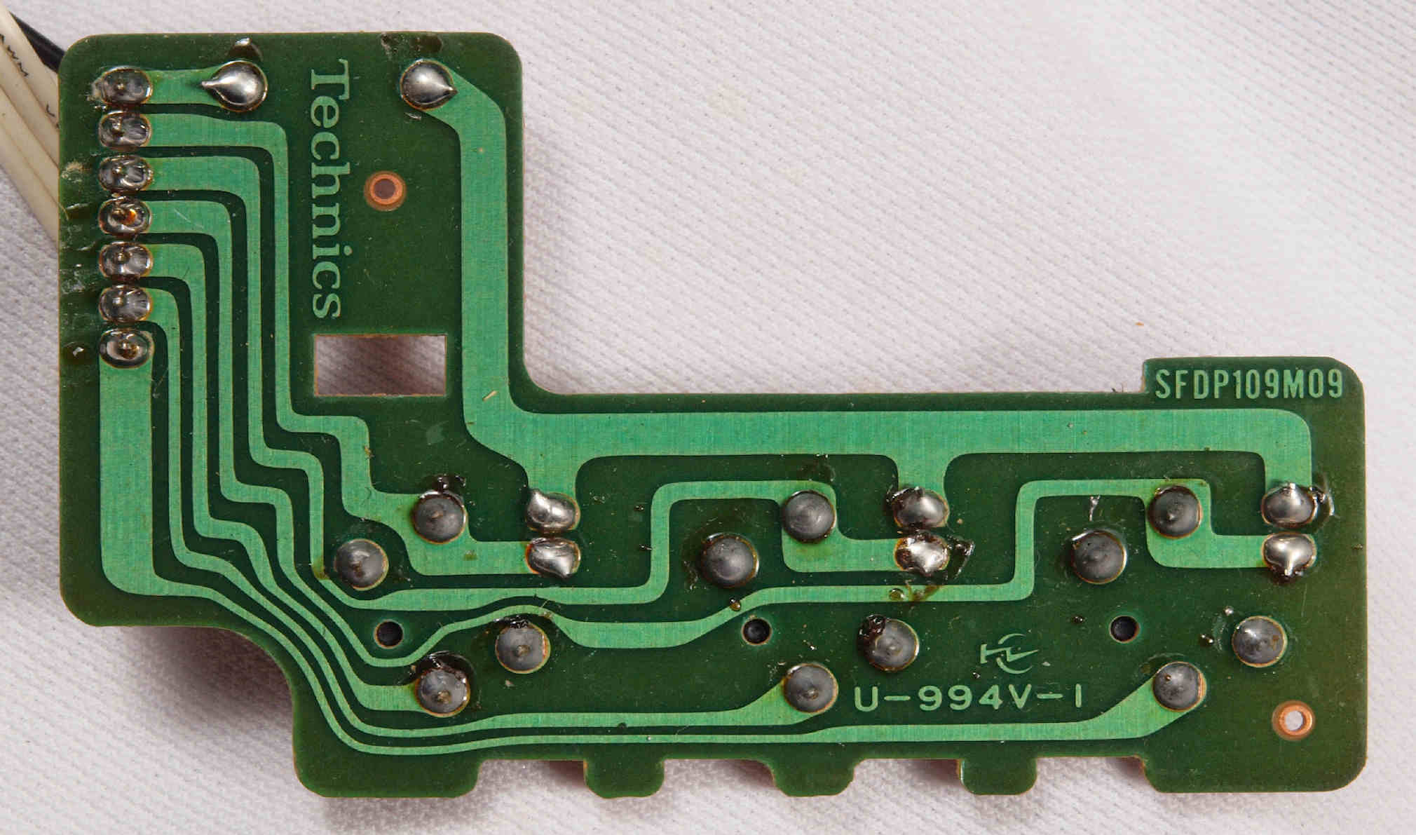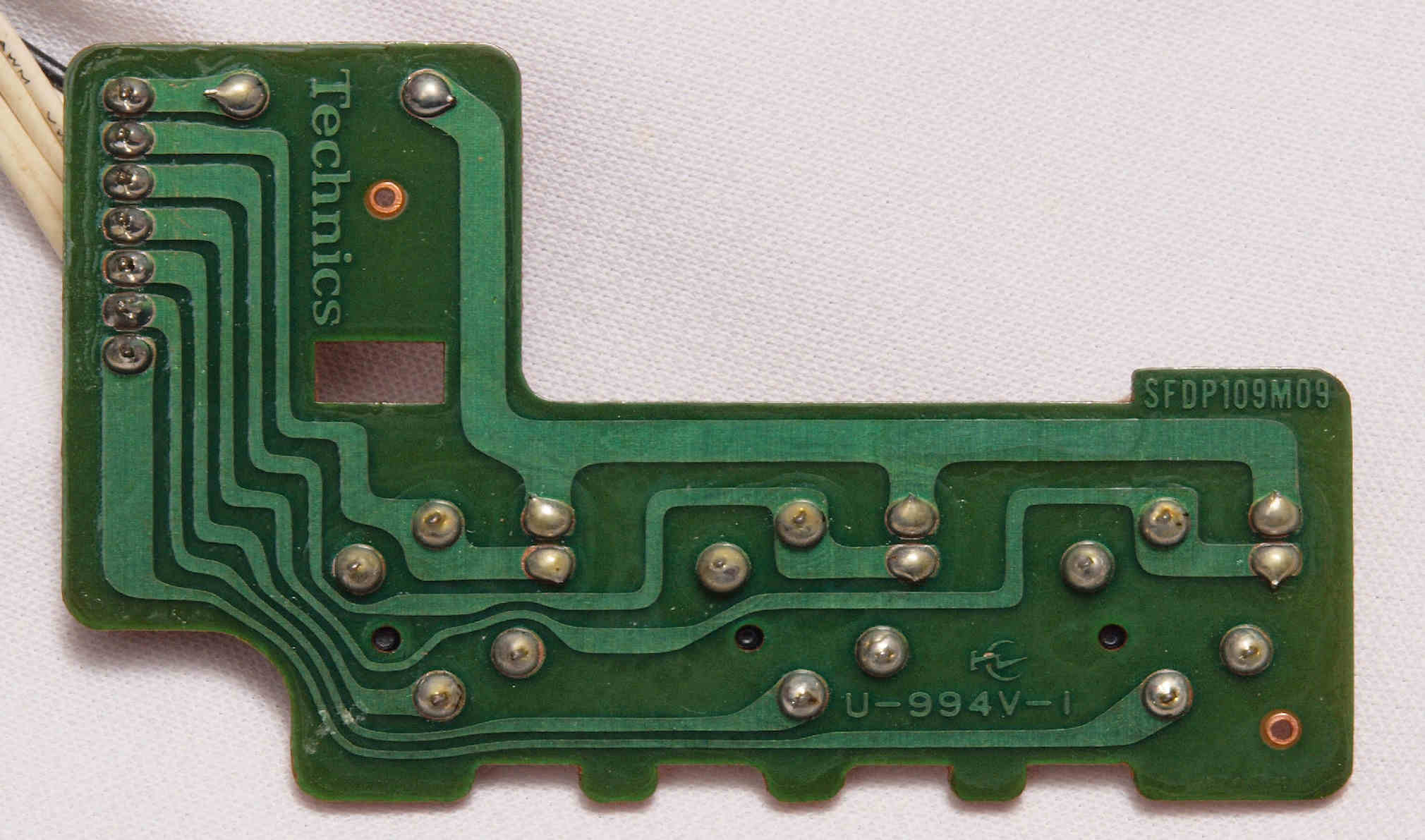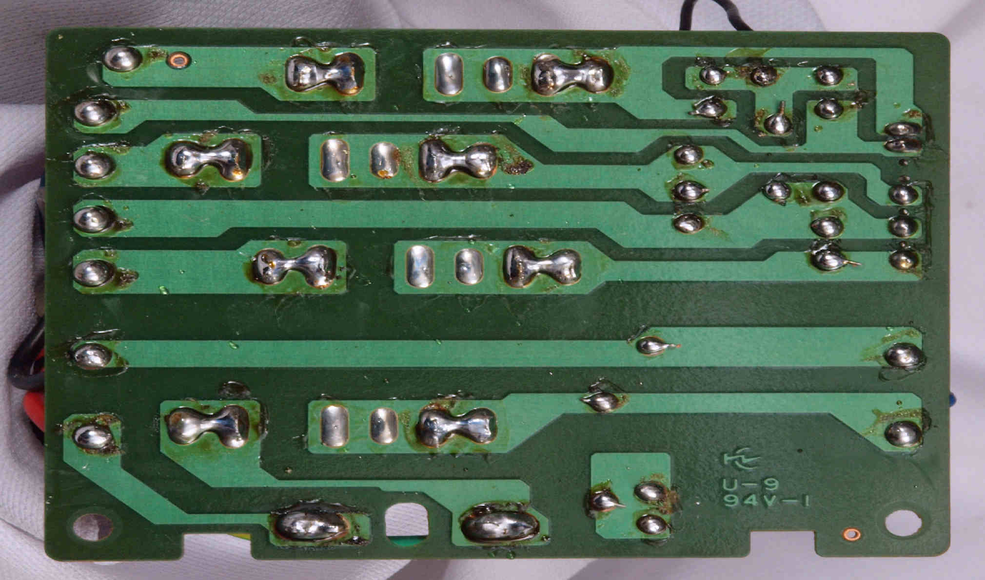 | D35. 完成ターンテーブル操作基板基板裏。 余分なフラックスを落として、コート液を塗る。 | ||||||||||||||||||||||||||||||||||||||||