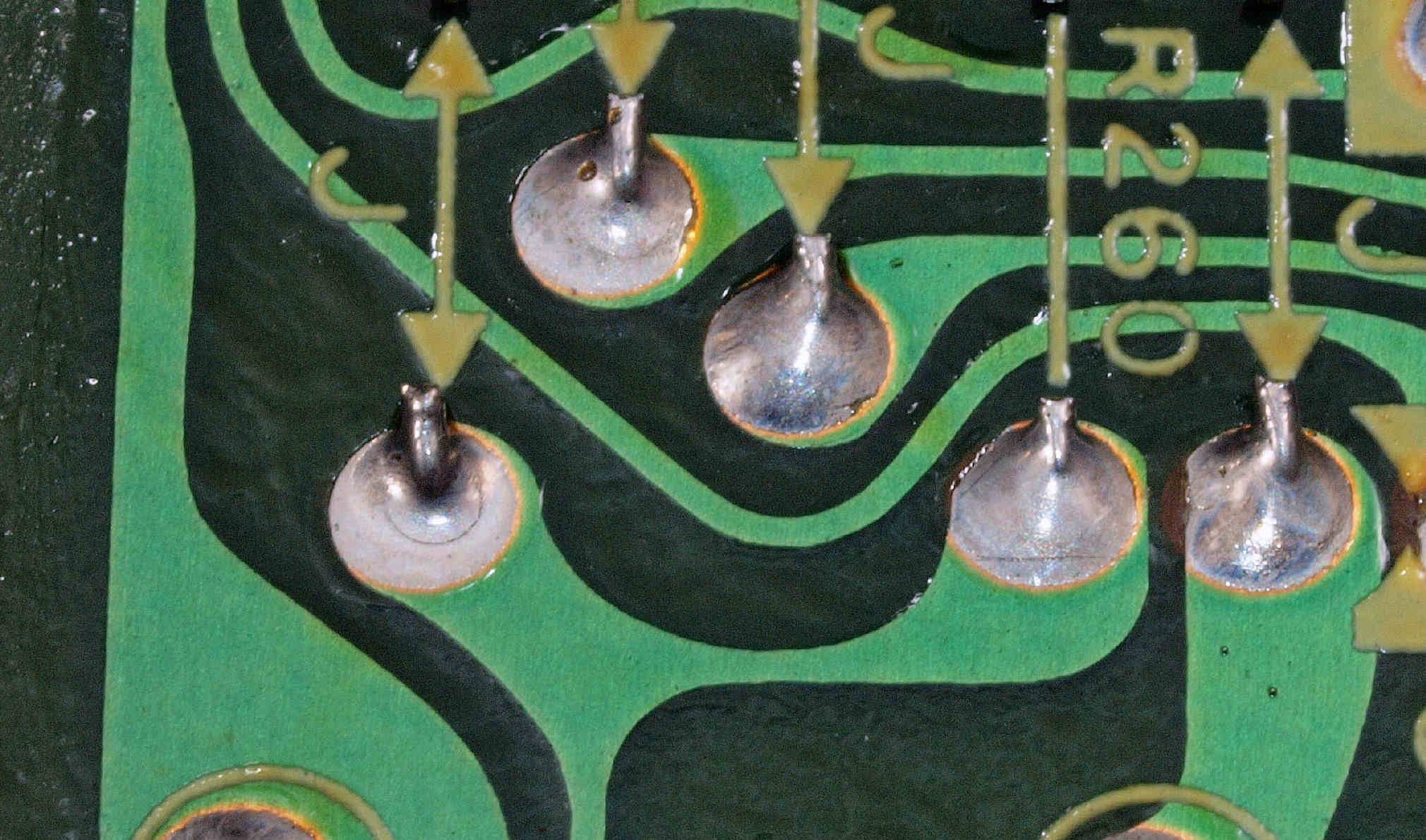 | C232. 修理前 定電圧回路基板裏、半田不良ケ所。 | ||||||||||||||||||||||||||||||||||||||||