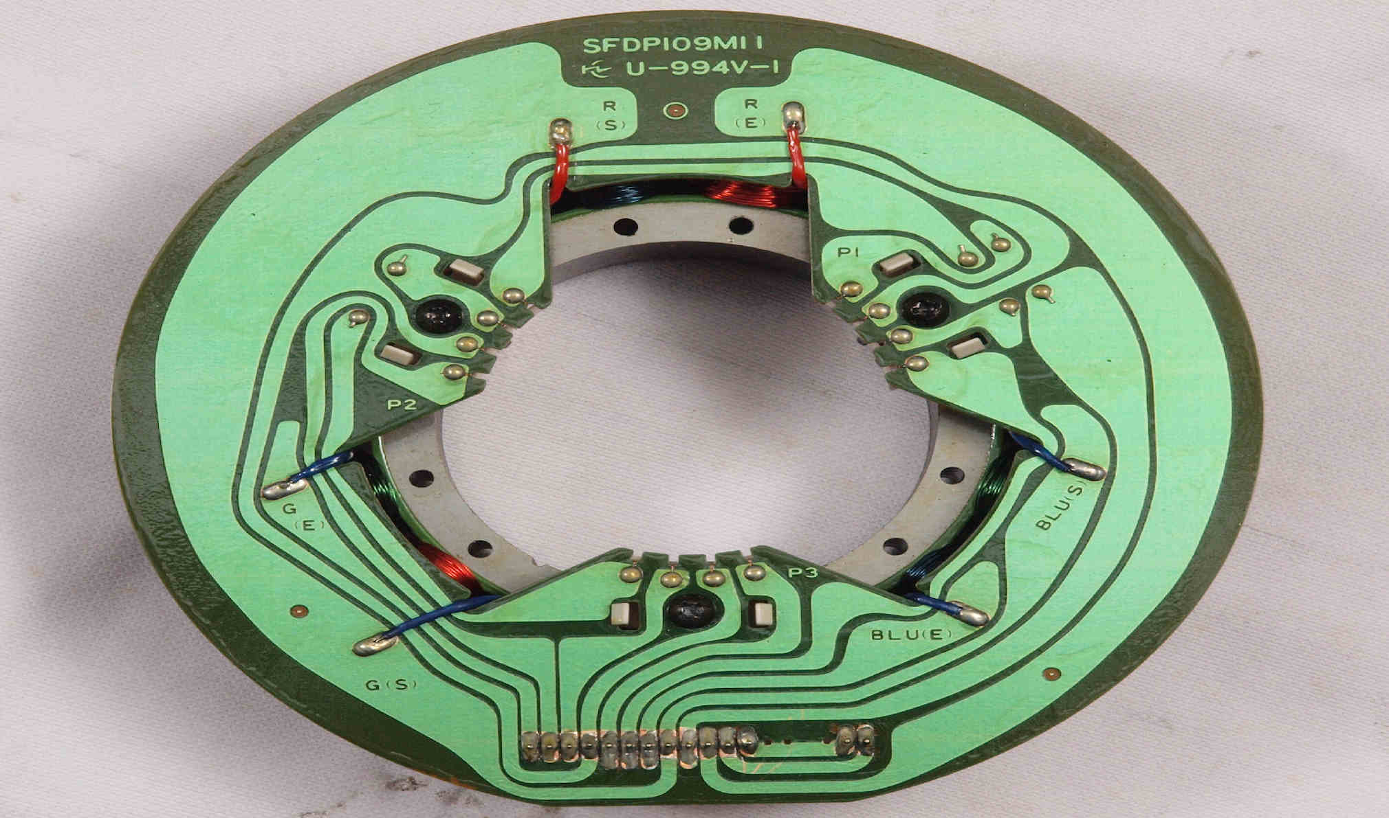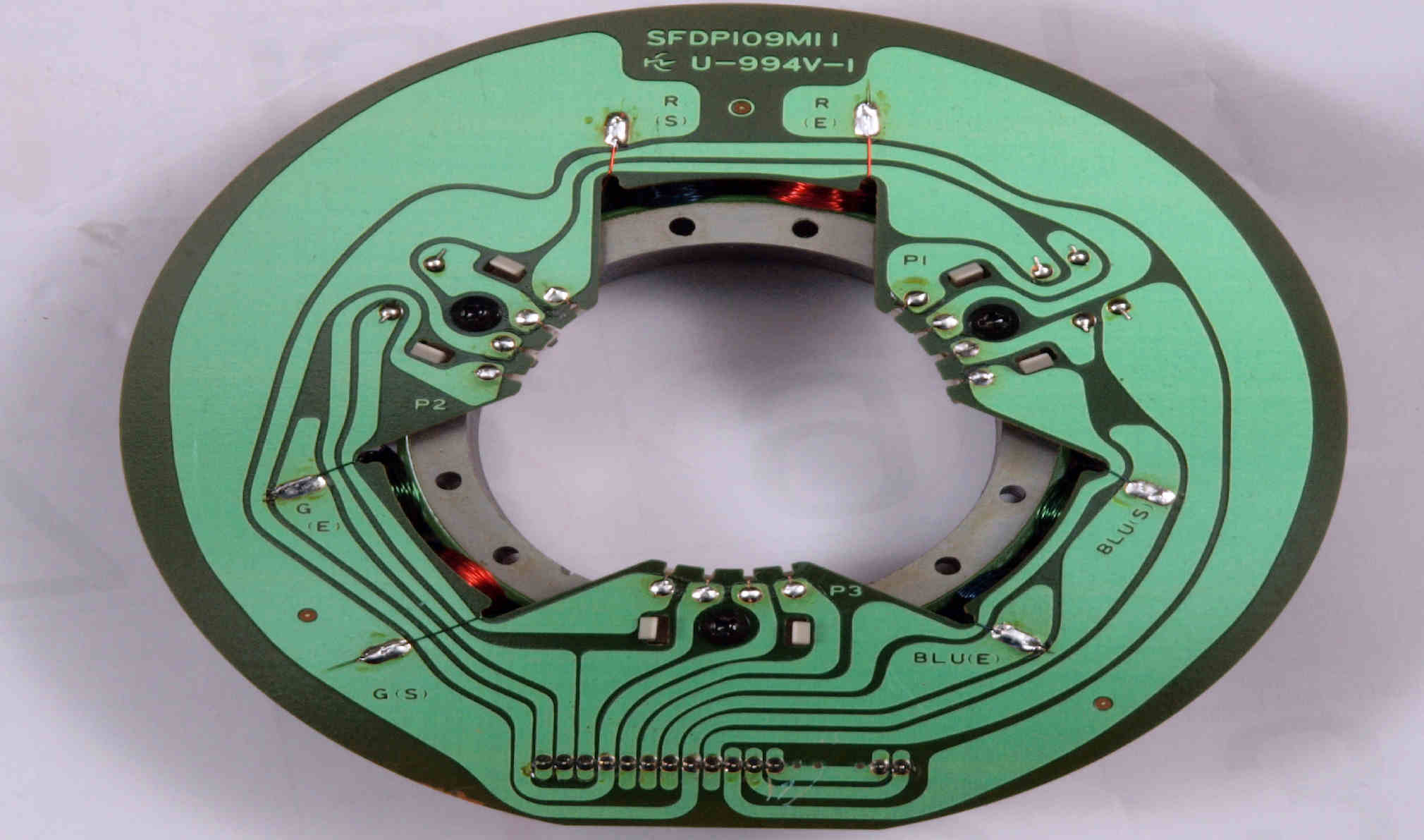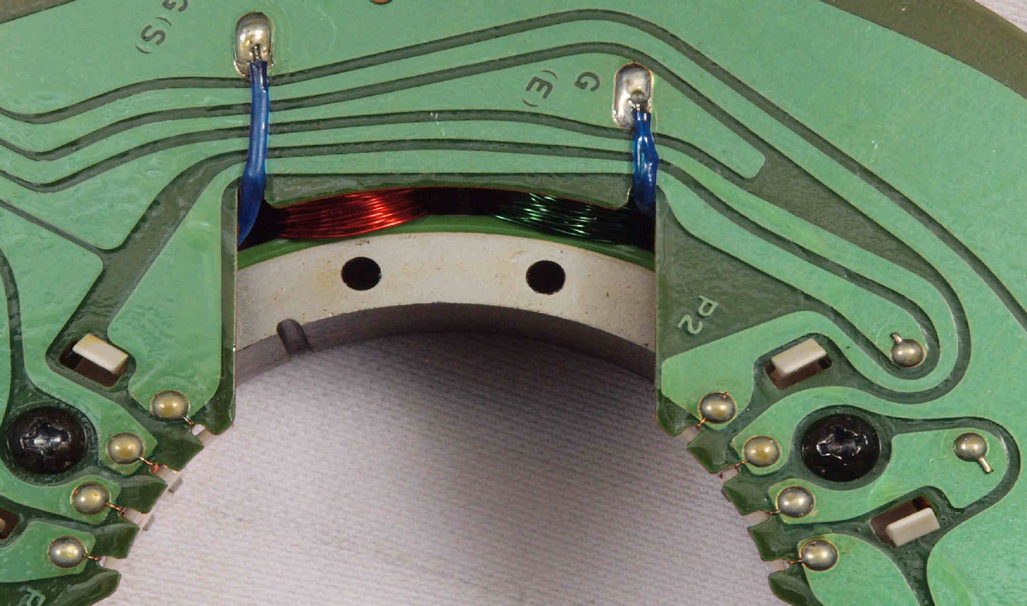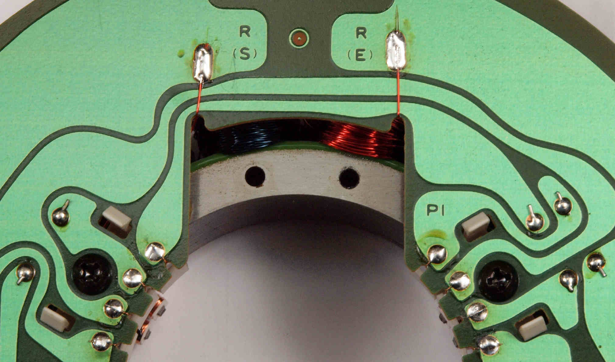 | M23. 完成アマチュア(回転子)基盤裏。 余分なフラックスを落として、コート液を塗る。 | ||||||||||||||||||||||||||||||||||||||||