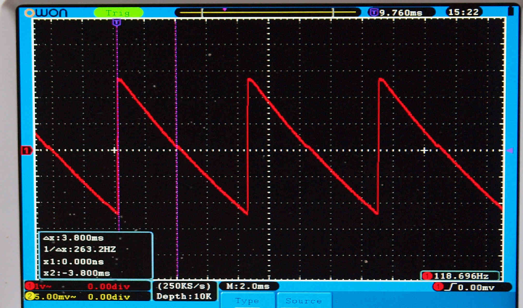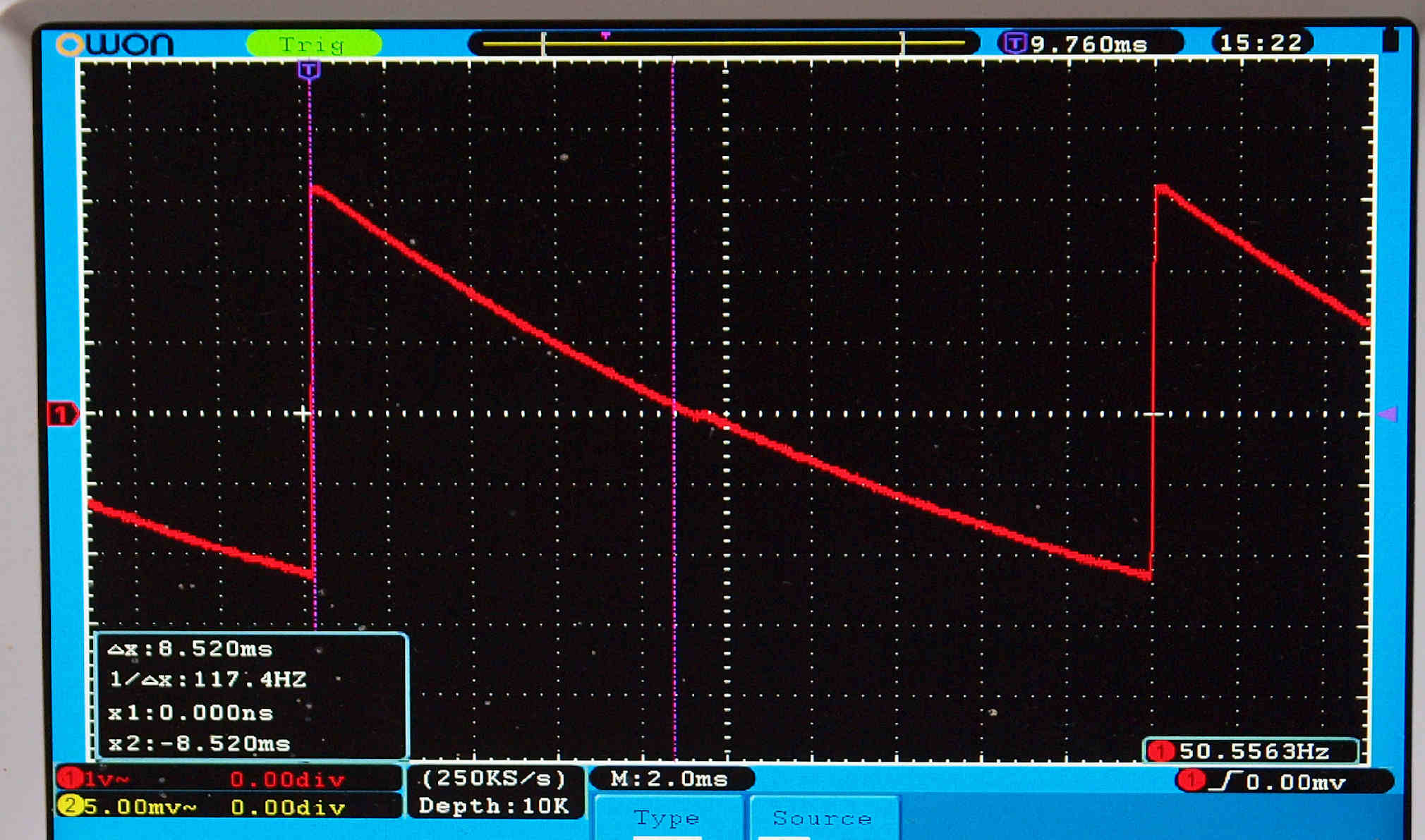 | T2. 検査中 赤いマークが薄い所が、浮き下がっている。 約、0.0*mm位の差と、思われる。 |
