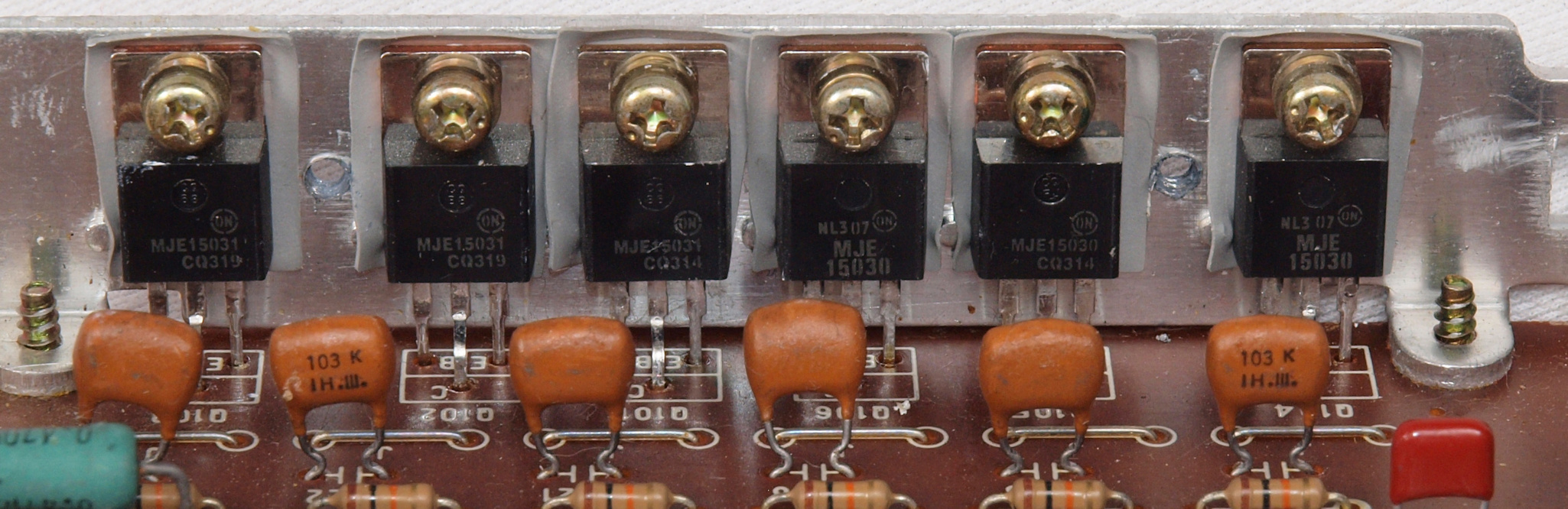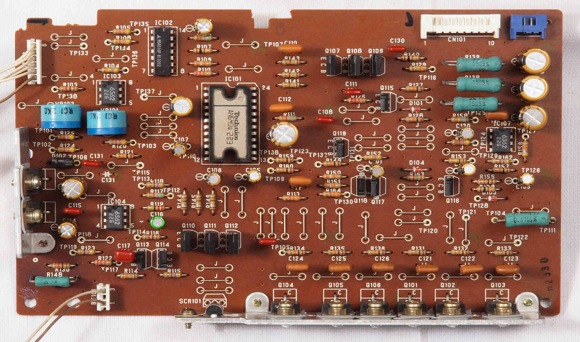 | A4D2. 点検中 駆動回路基板。 駆動TR(トランジスター)が6個交換されている。 | ||||||||||||||||||||||||||||||||||||||||