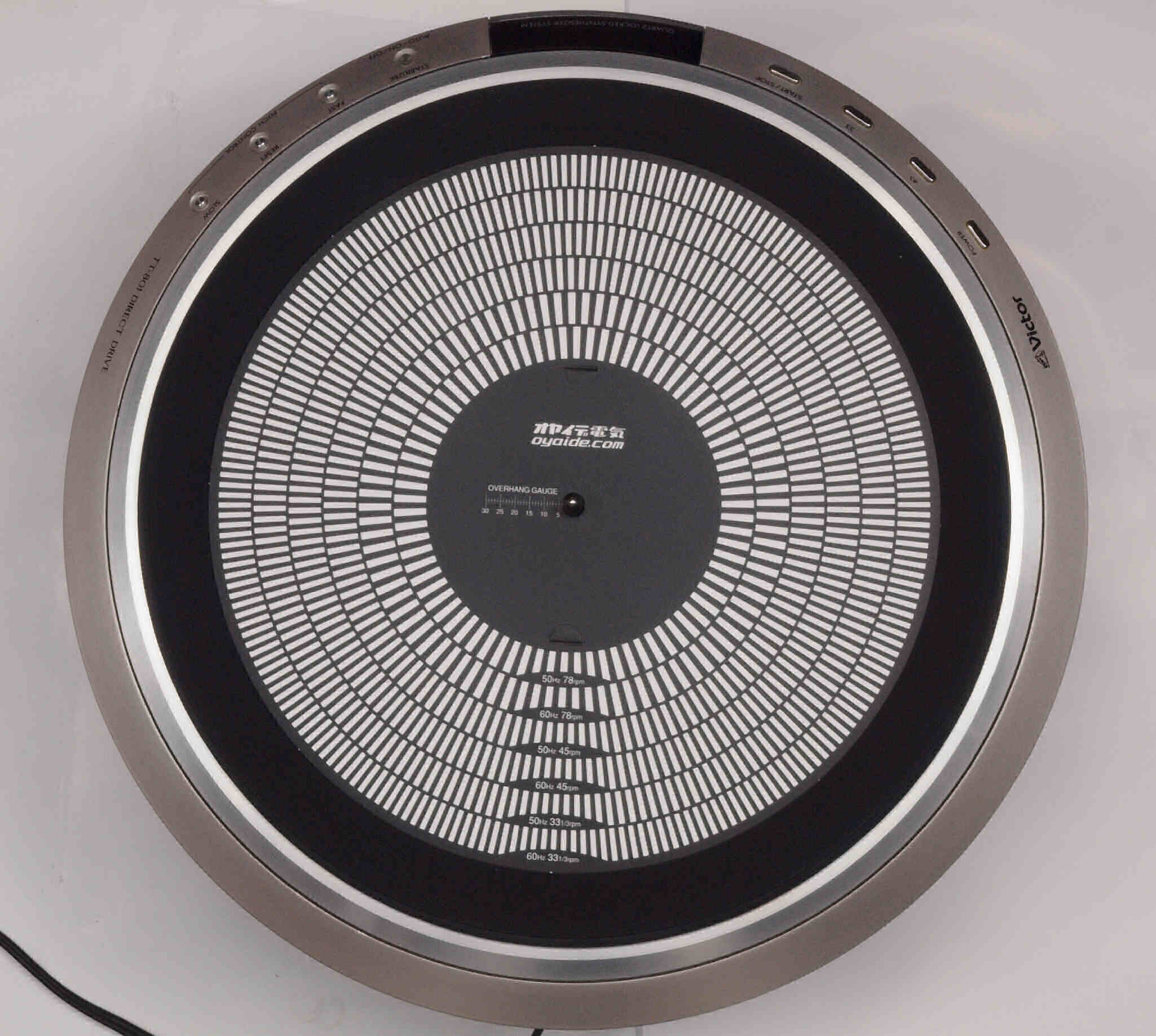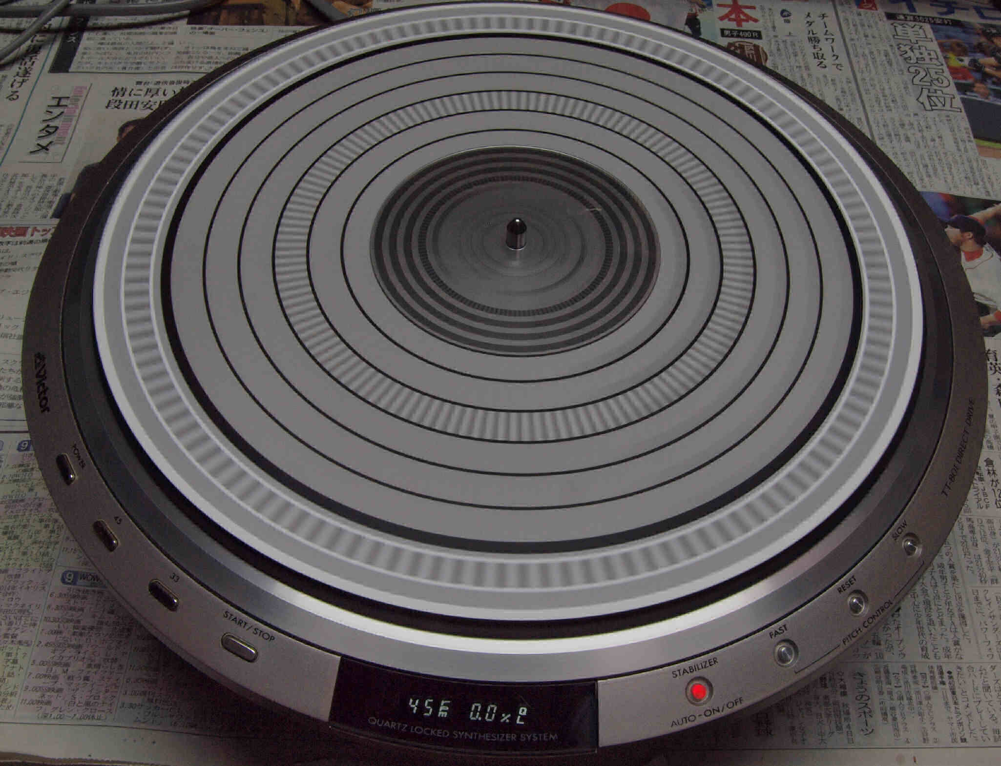 | E2. 45回転測定・調整。 大中小3個のストロボを同心円で重ねてあります。 | ||||||||||||||||||||||||||||