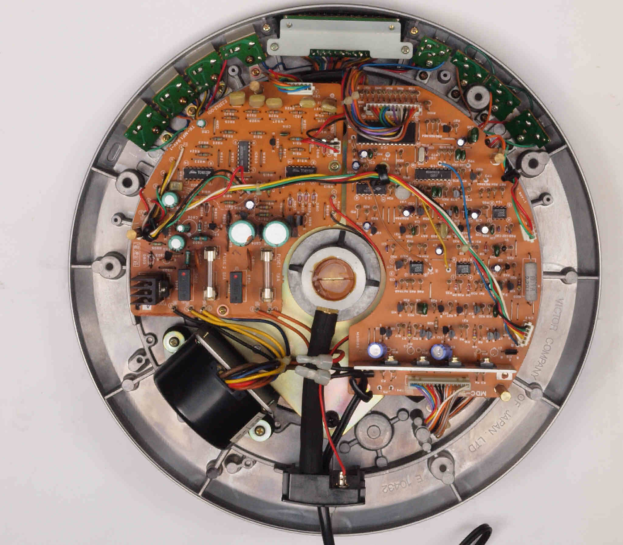 | C. 修理状況。 画像をクリックすると、大きく(横幅2050ドット)表示されます。 C1. 修理中 モーター、基板等を取り外した本体。 |