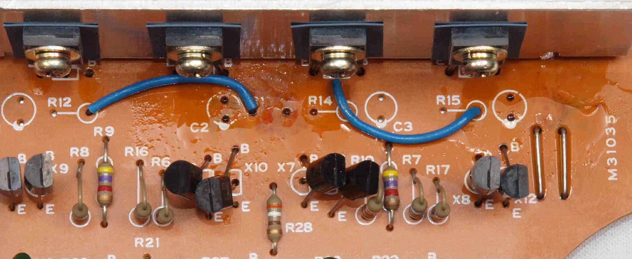 | C34. 修理(半田補正)後 整流基板裏。 半田を全部やり直す。 | ||||||||||||||||||||||||||||