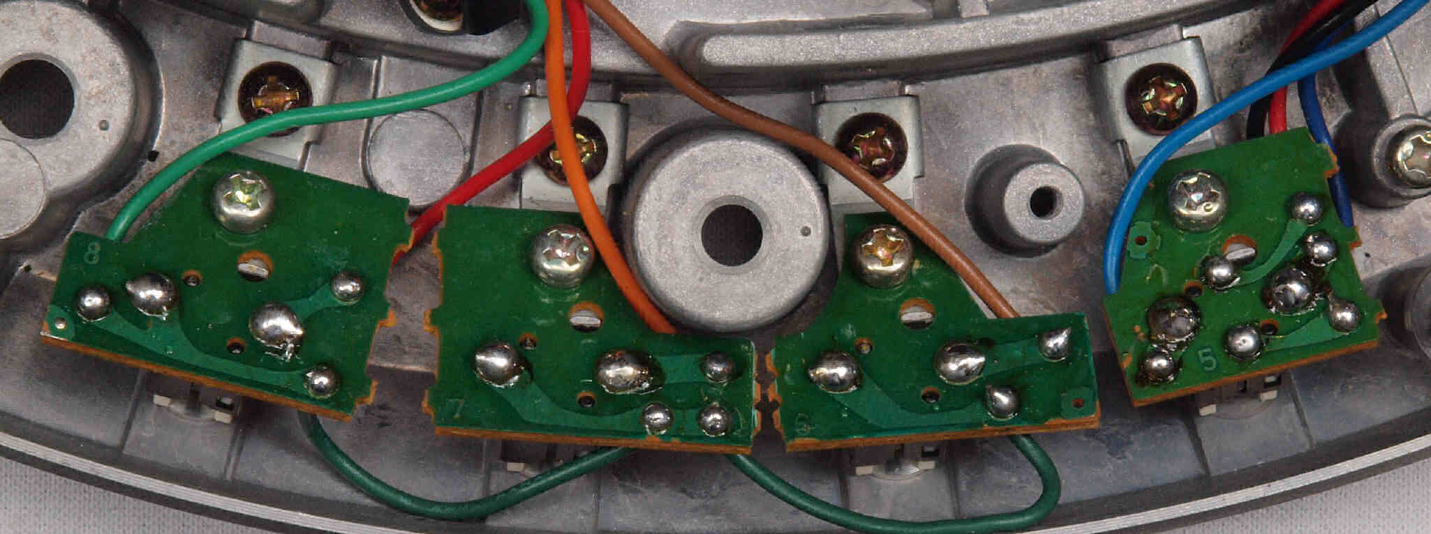 | C42. 修理(半田補正)後 操作SW基板裏。 半田を全部やり直す。 | ||||||||||||||||||||||||||||