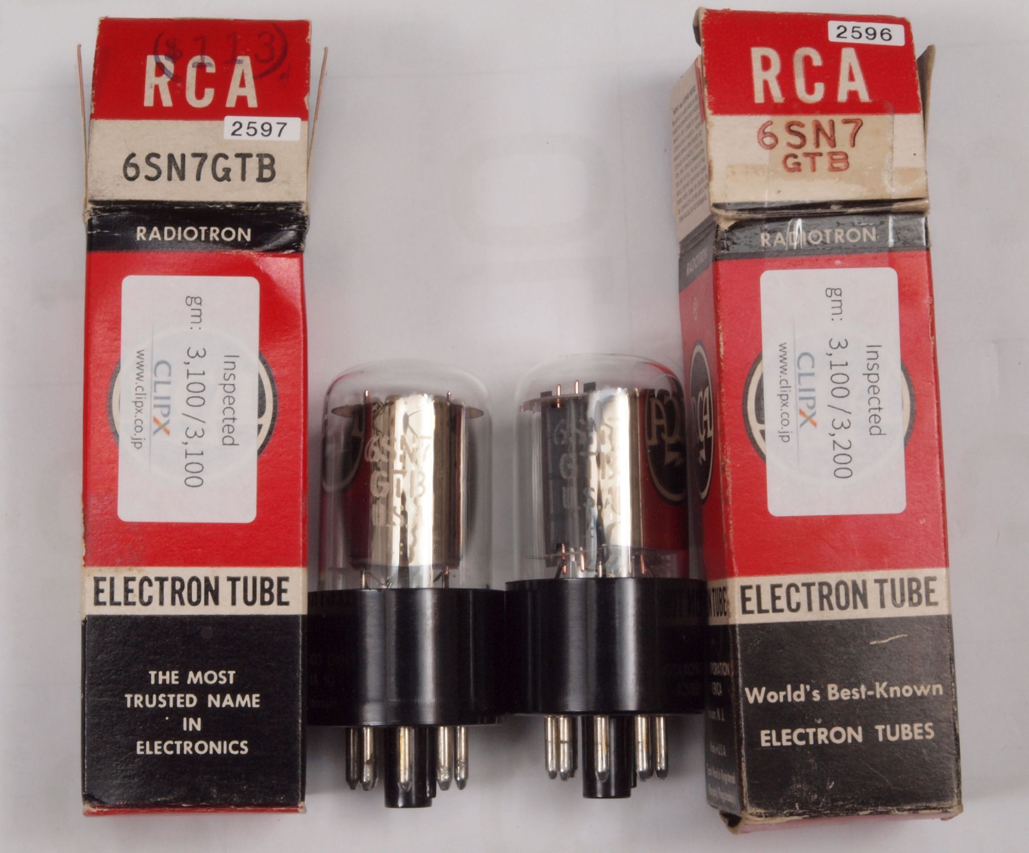 • RCA 6SN7GTB相互コンダクタンス=2600μmho「Ep=250V、Ip=9mA、Eg1=−8V」。