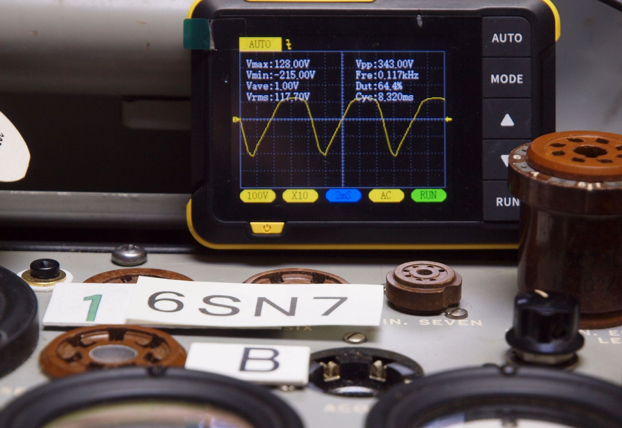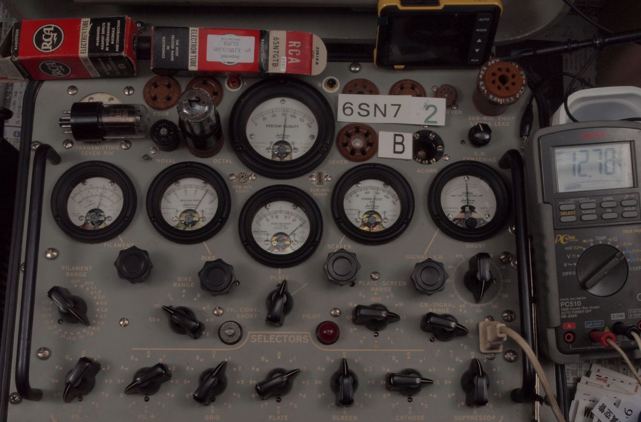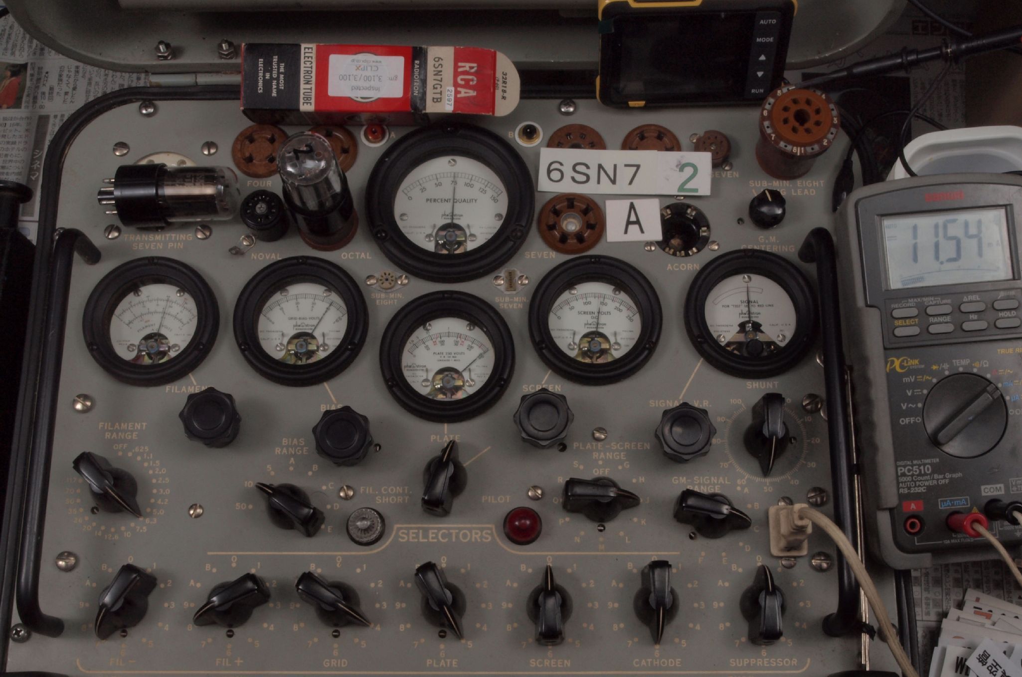 • 1本目 6SN7GTB ユニット1測定。 Gm=3120μmho、Ip=11.31mA。