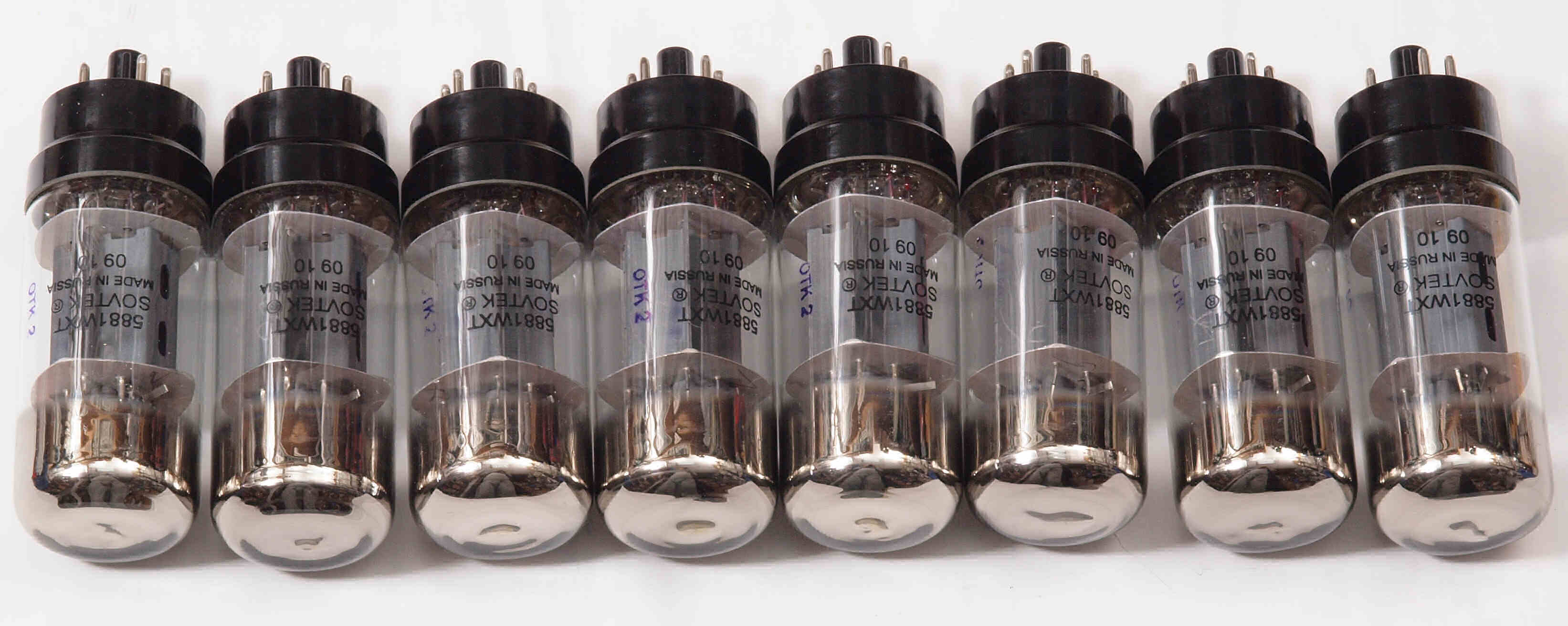 B02. 新品購入出力真空管SOVTEC 「5881=6L6WGC」。 左から7本目....12本目。