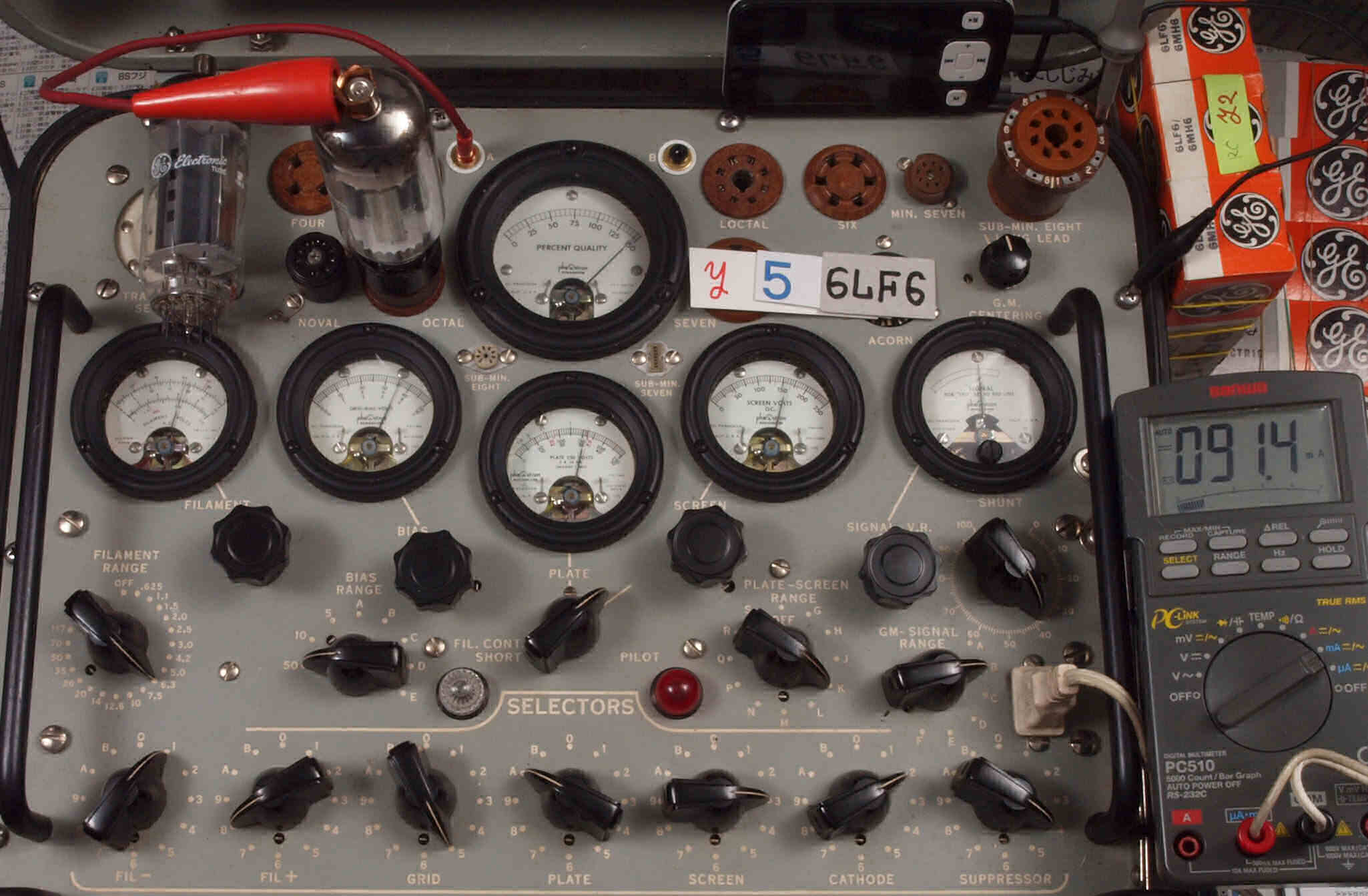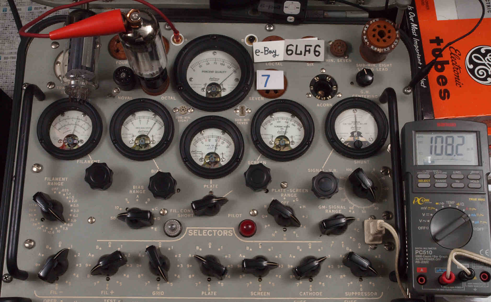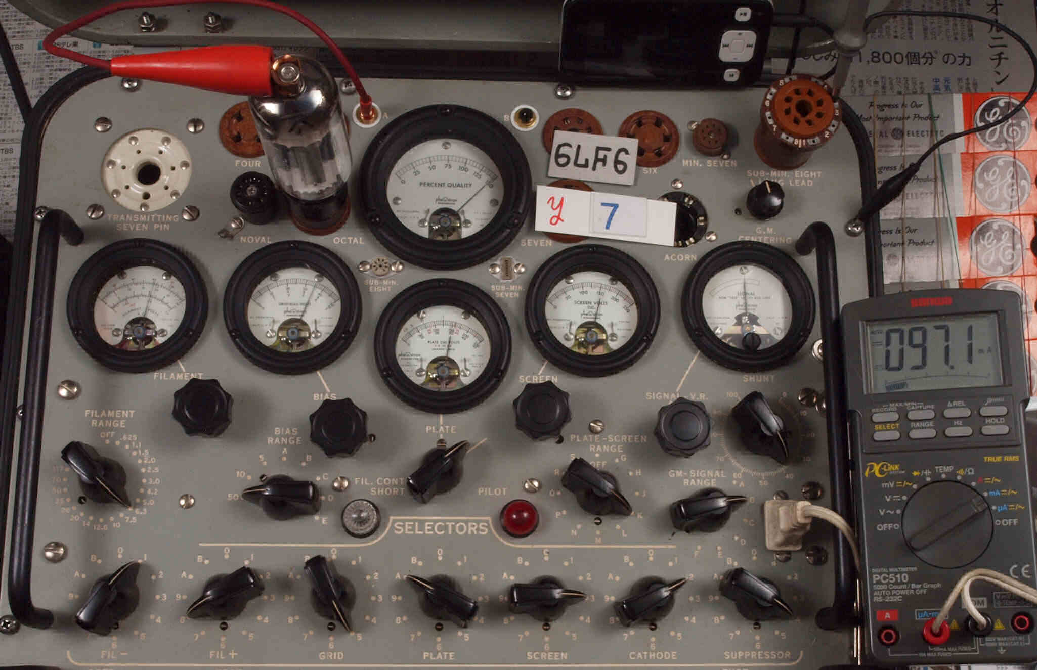 | V47. 7本目「6LF6」。 Gm測定=15000μmho、 Ip=108.2mA。 |
