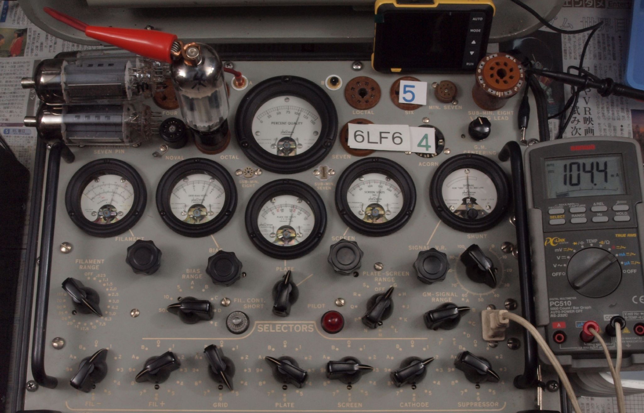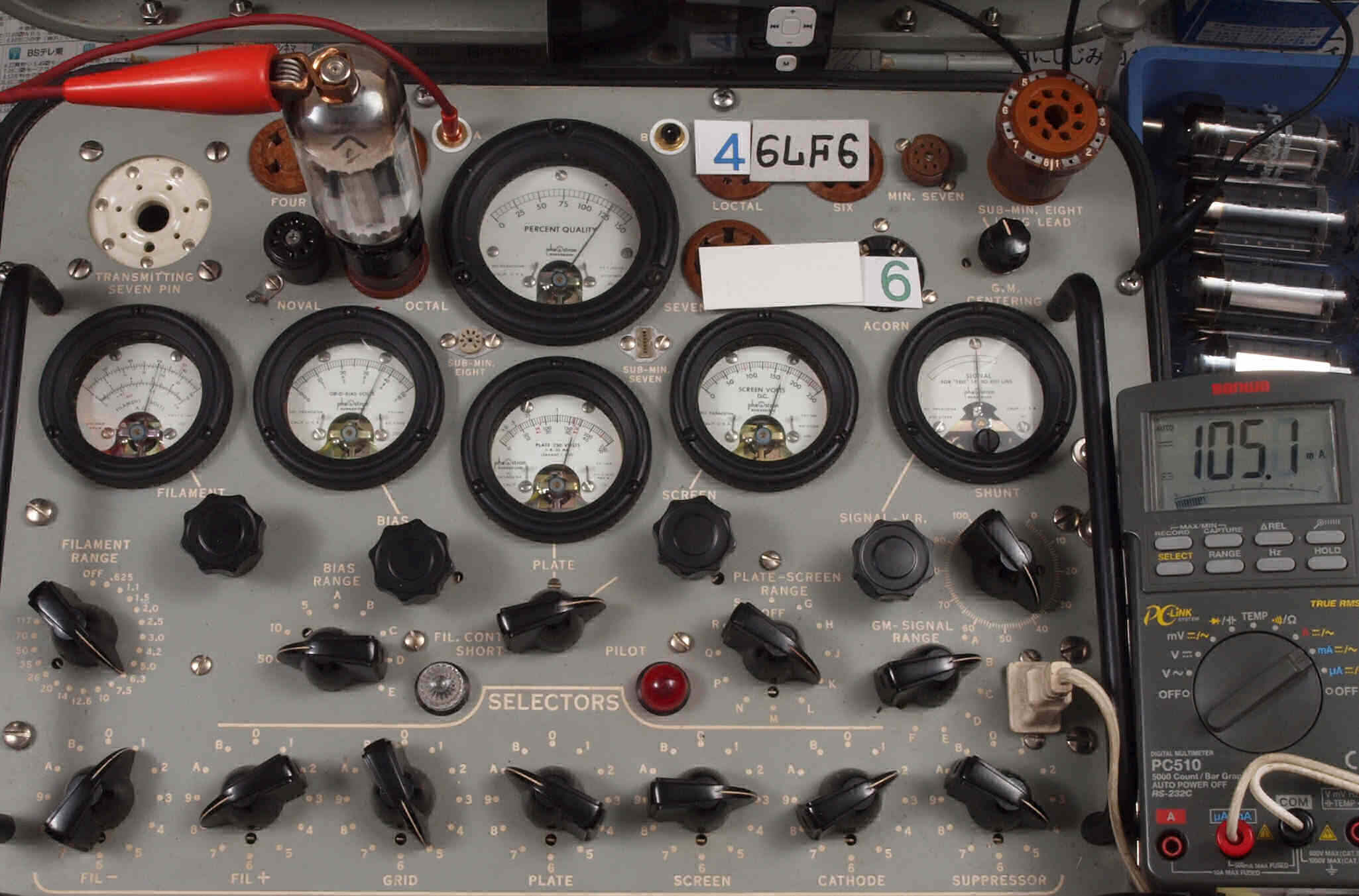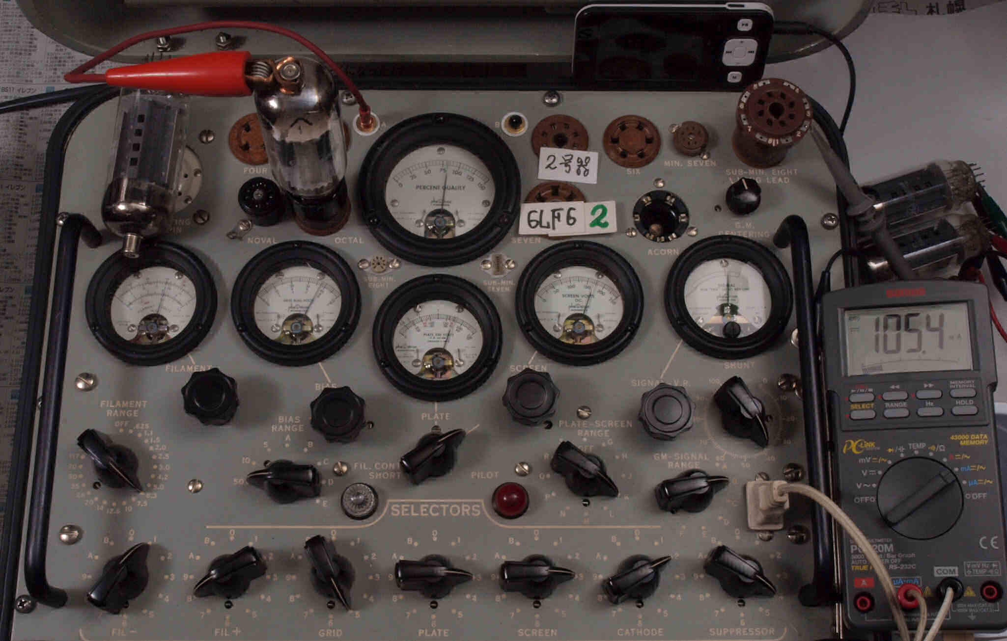 | V45. 5本目「6LF6」。 Gm測定=15000μmho、 Ip=104.2mA。 |