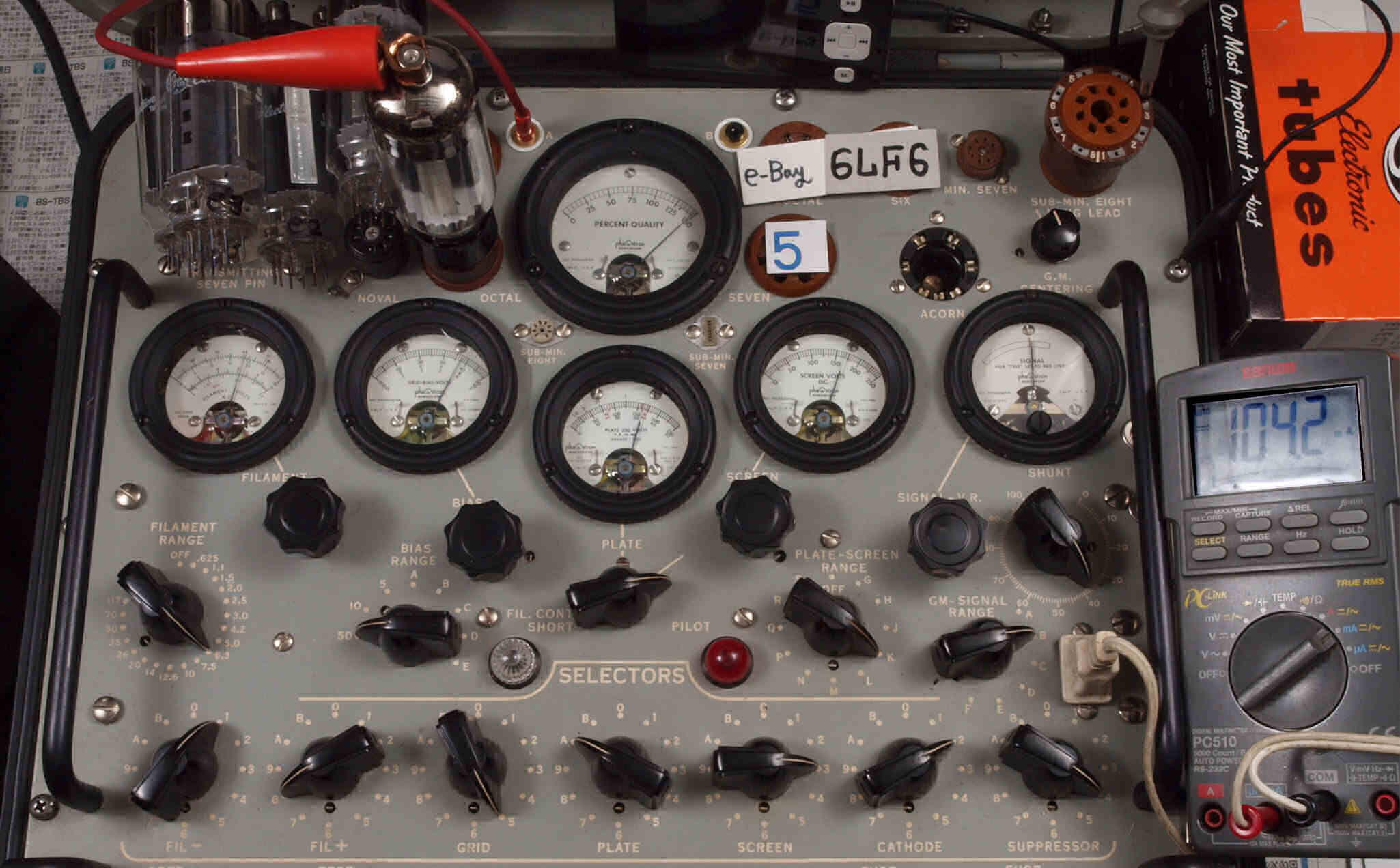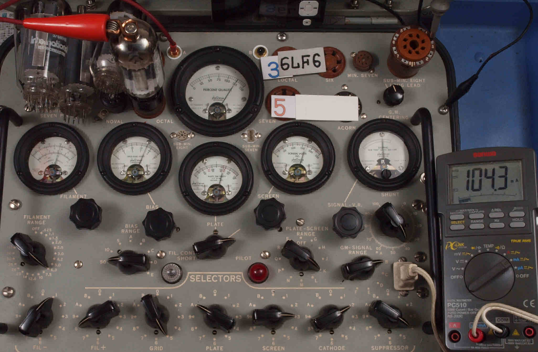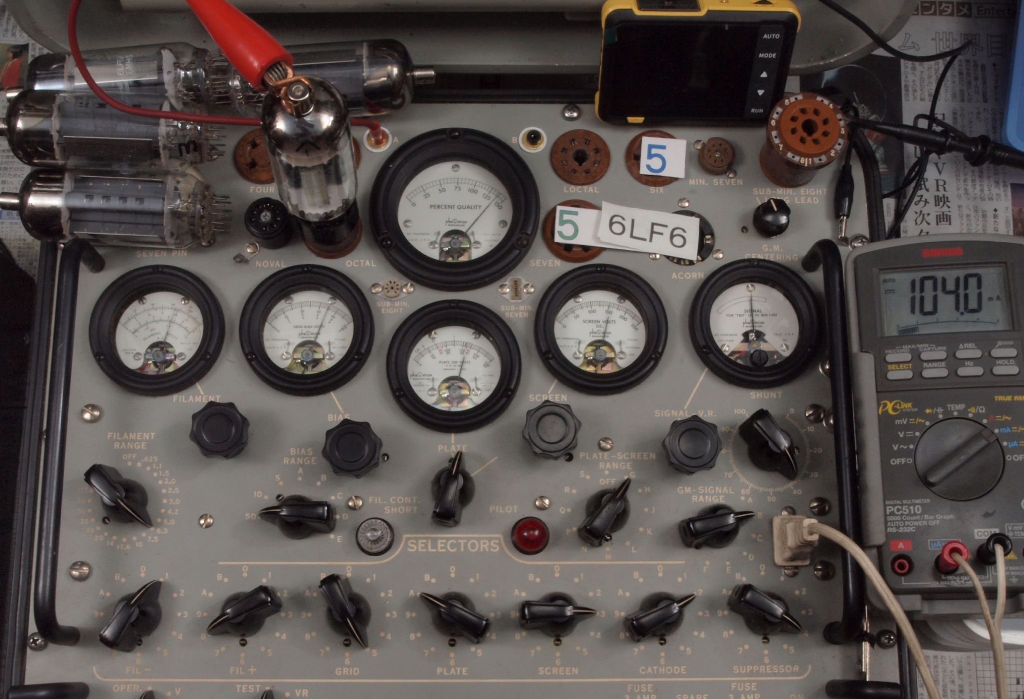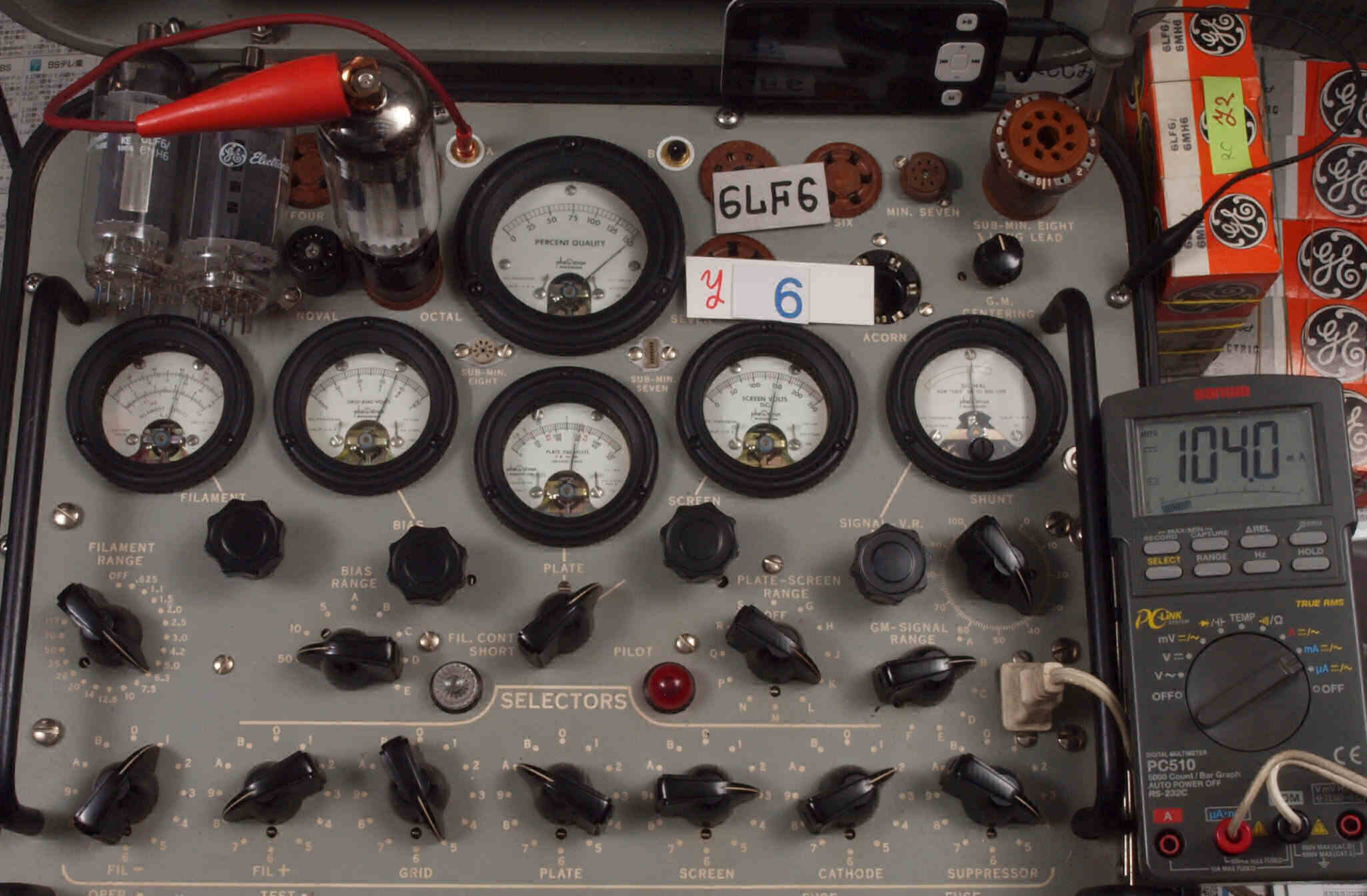 | V45. 5本目「6LF6」。 Gm測定=15000μmho、 Ip=104.2mA。 |