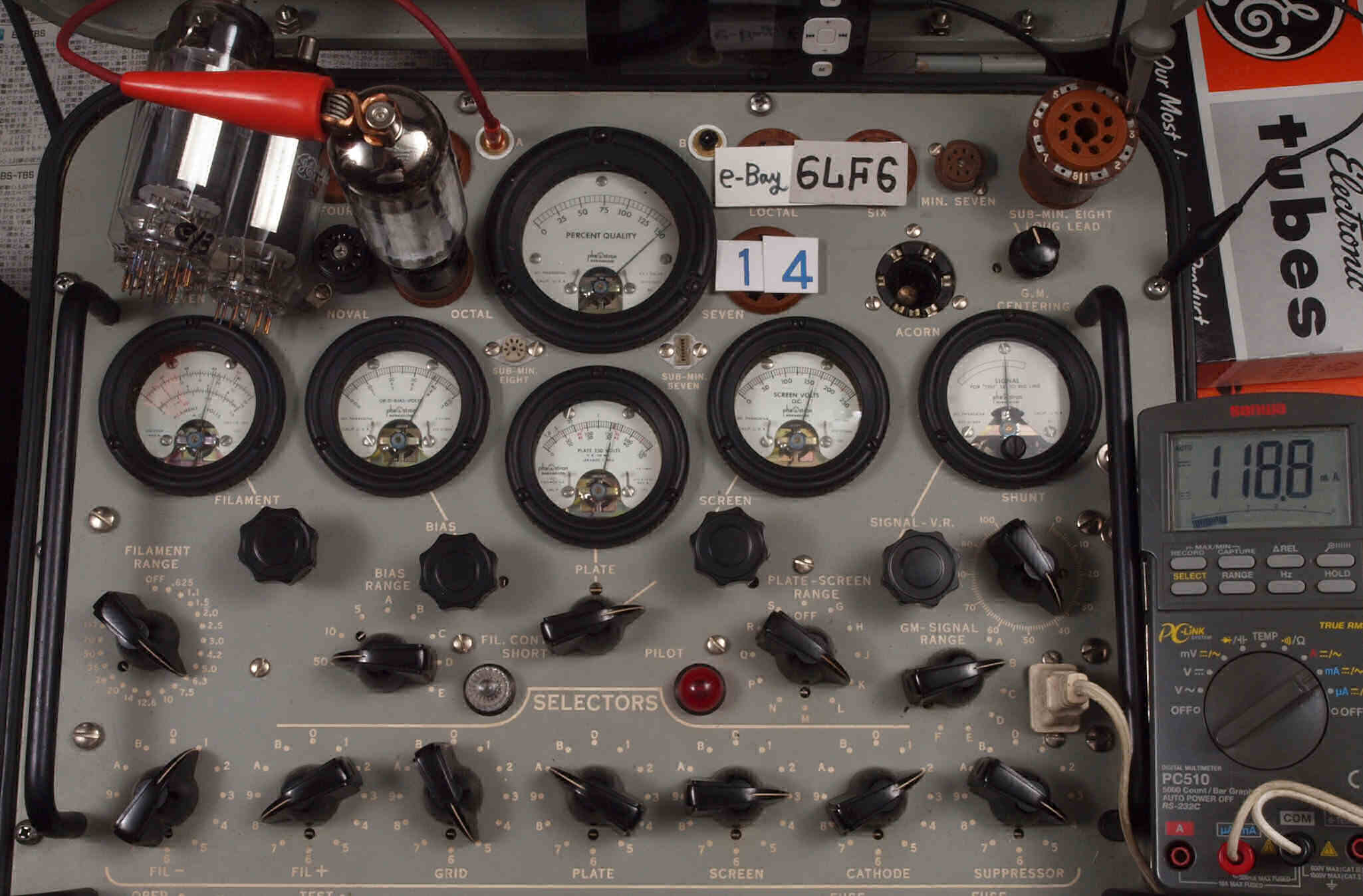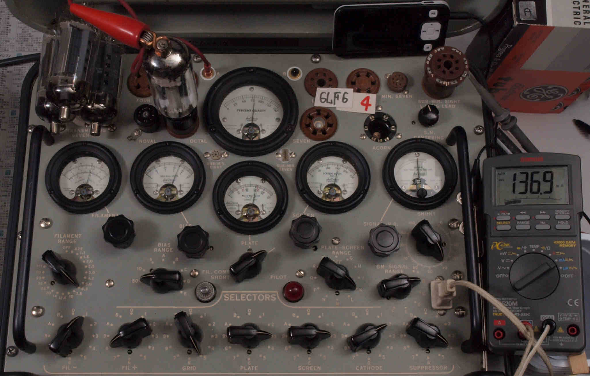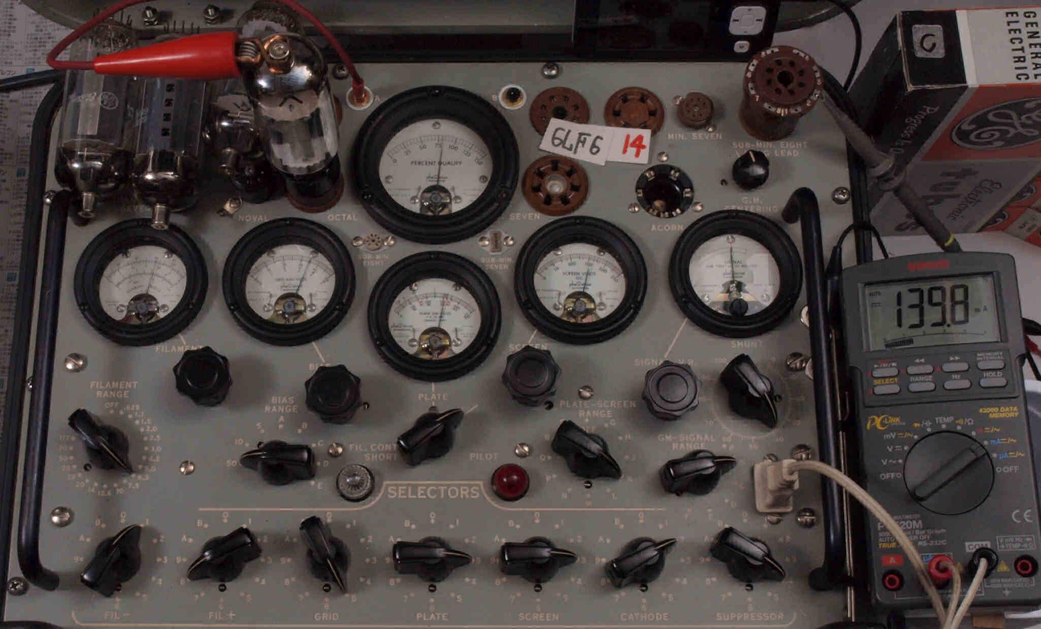 | V14. 4本目 6LF6 。 Gm測定=8000μmho、 Ip=136.9mA。 |