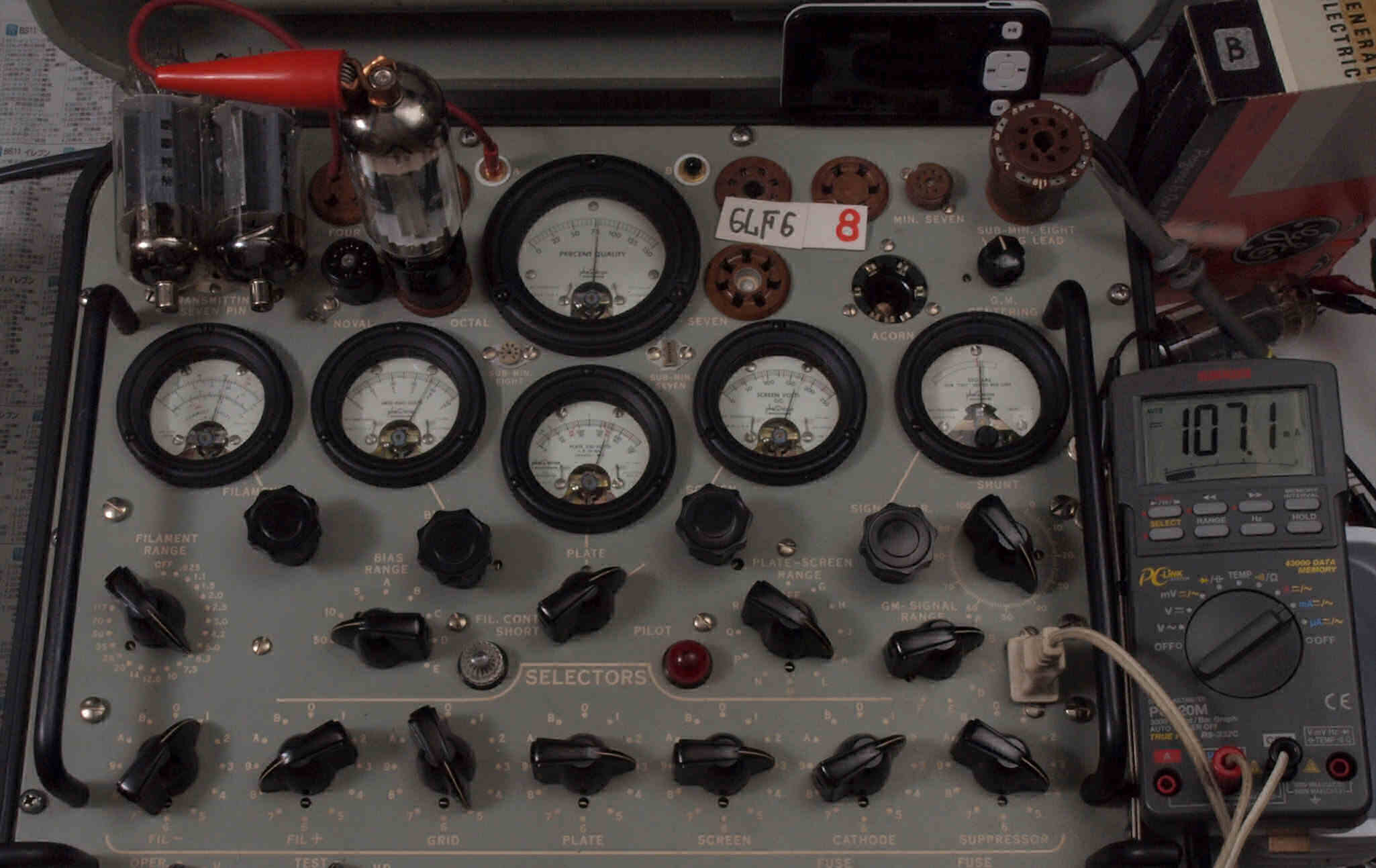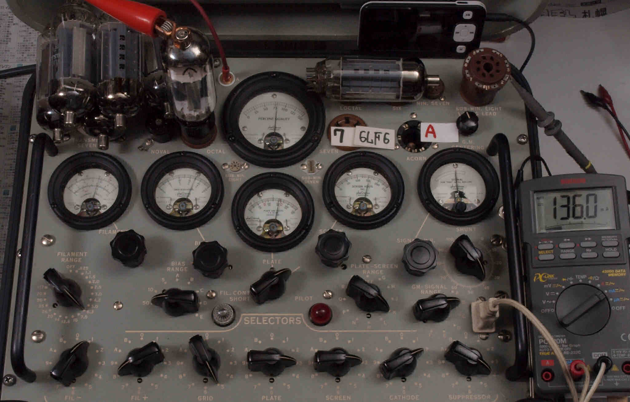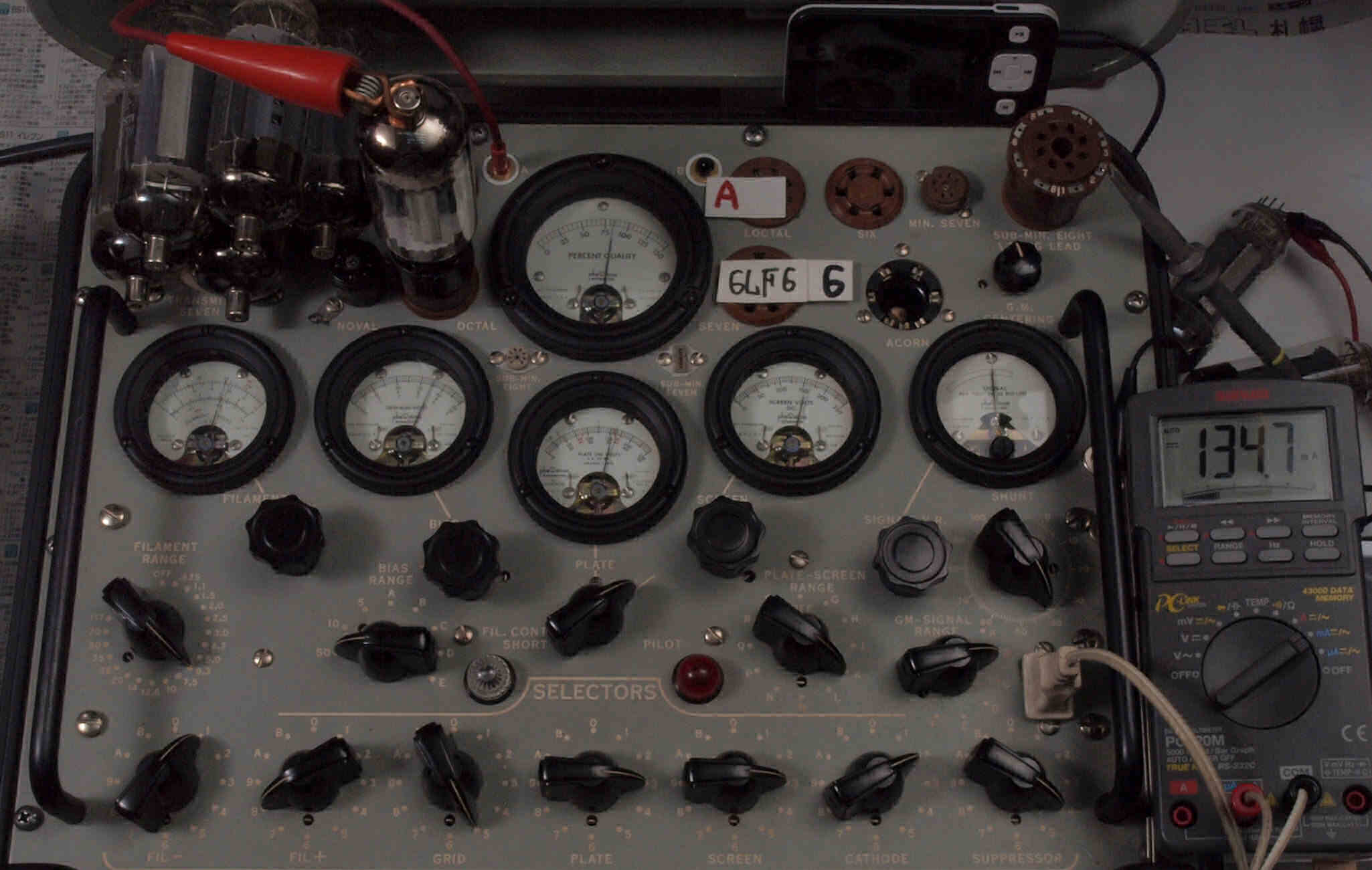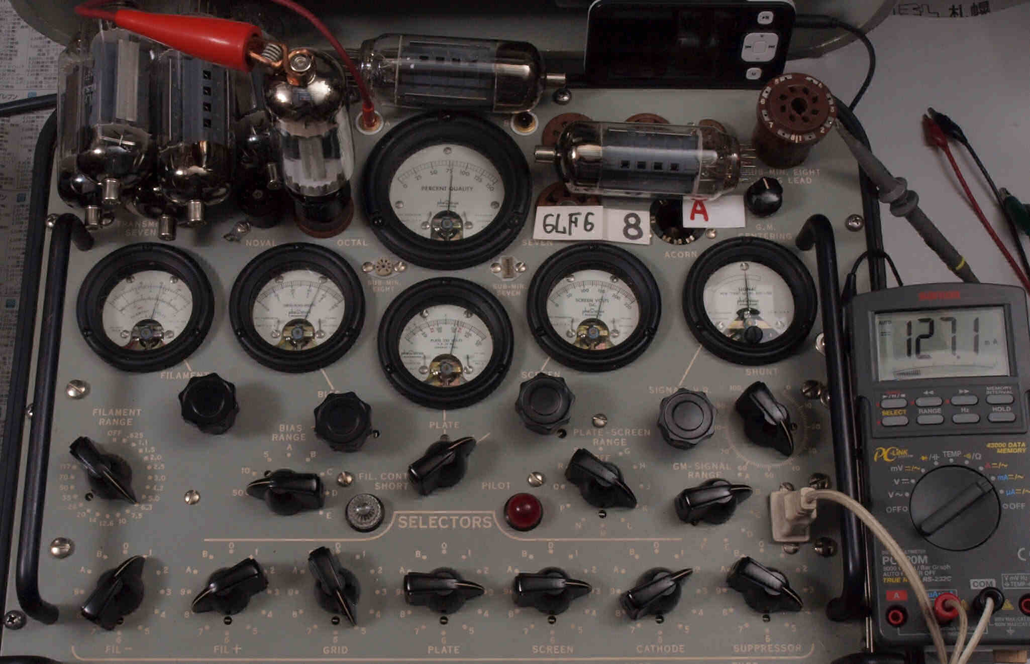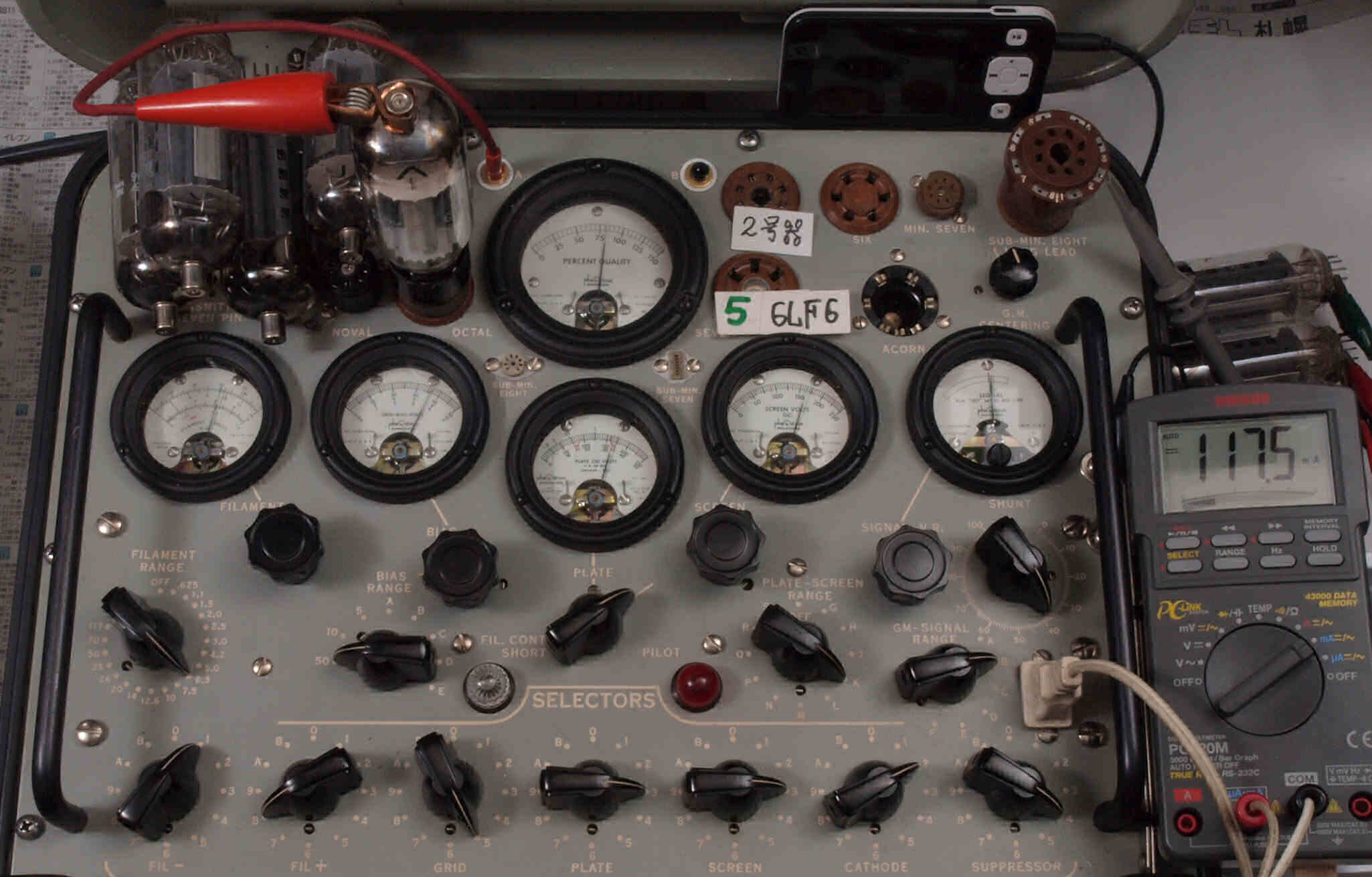 | V12. 2本目 6LF6 。 Gm測定=8000μmho、 Ip=132.2mA。 |