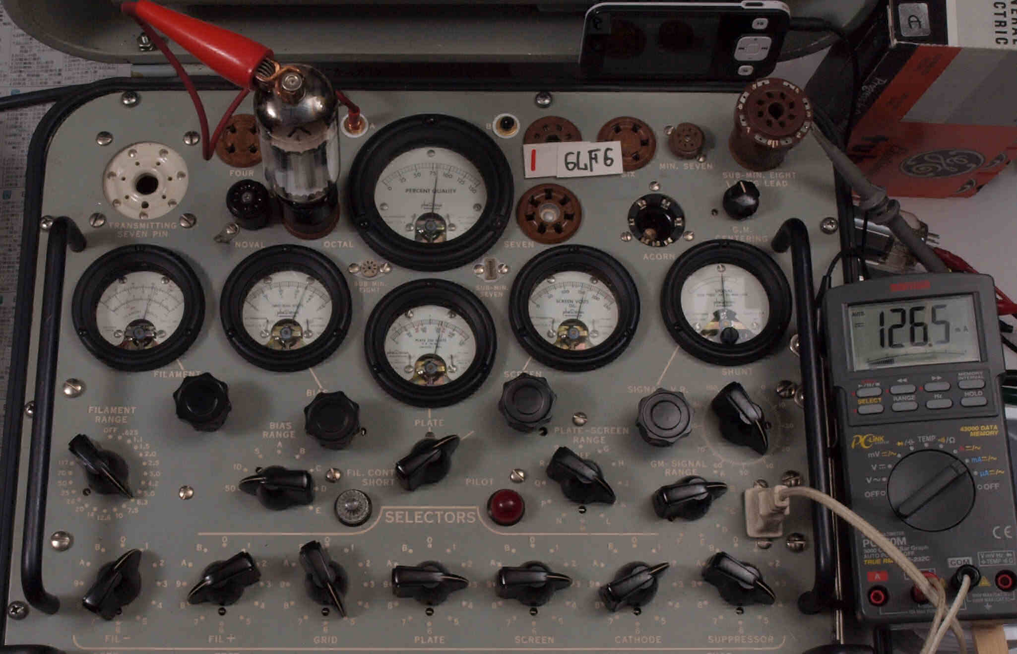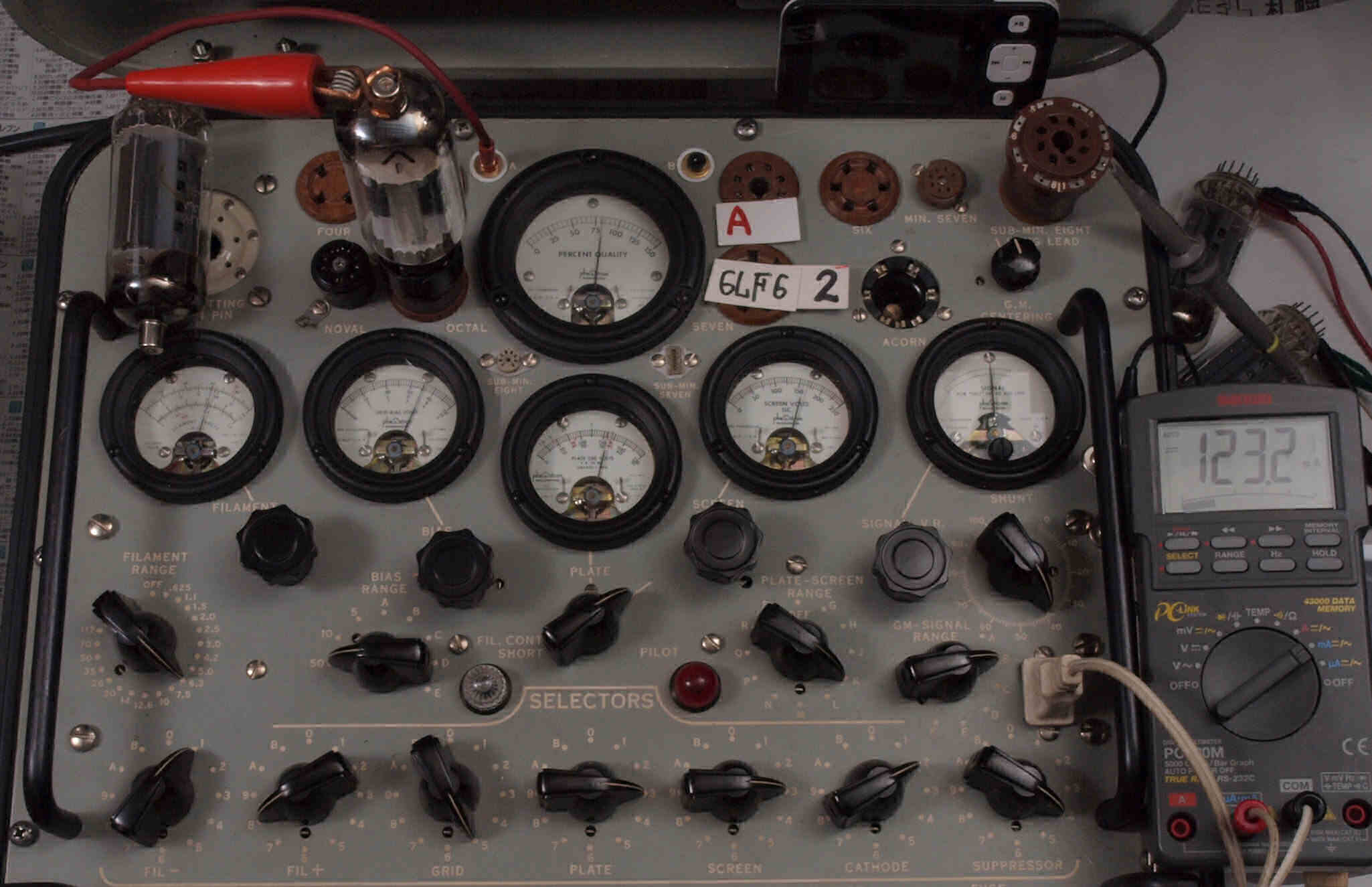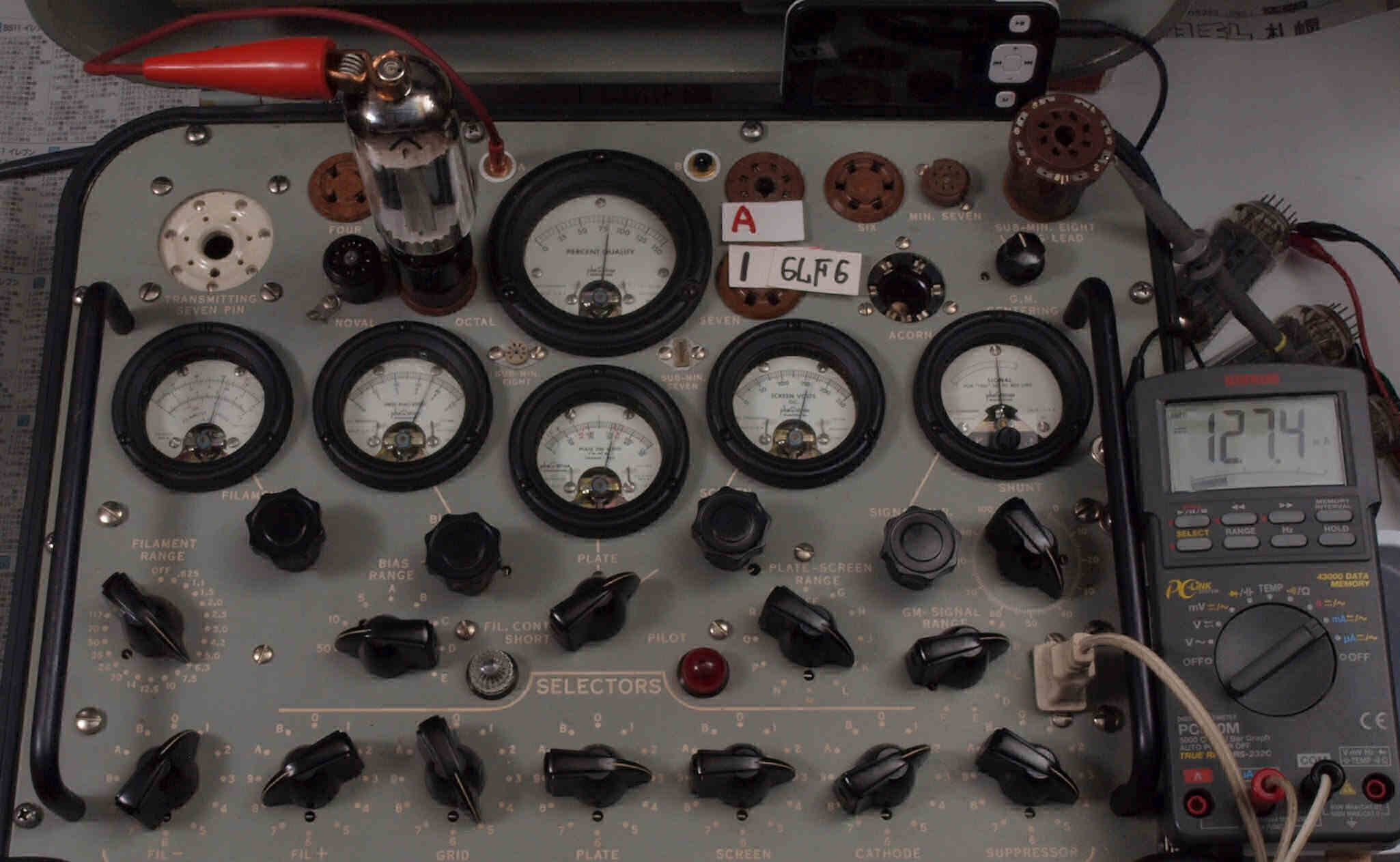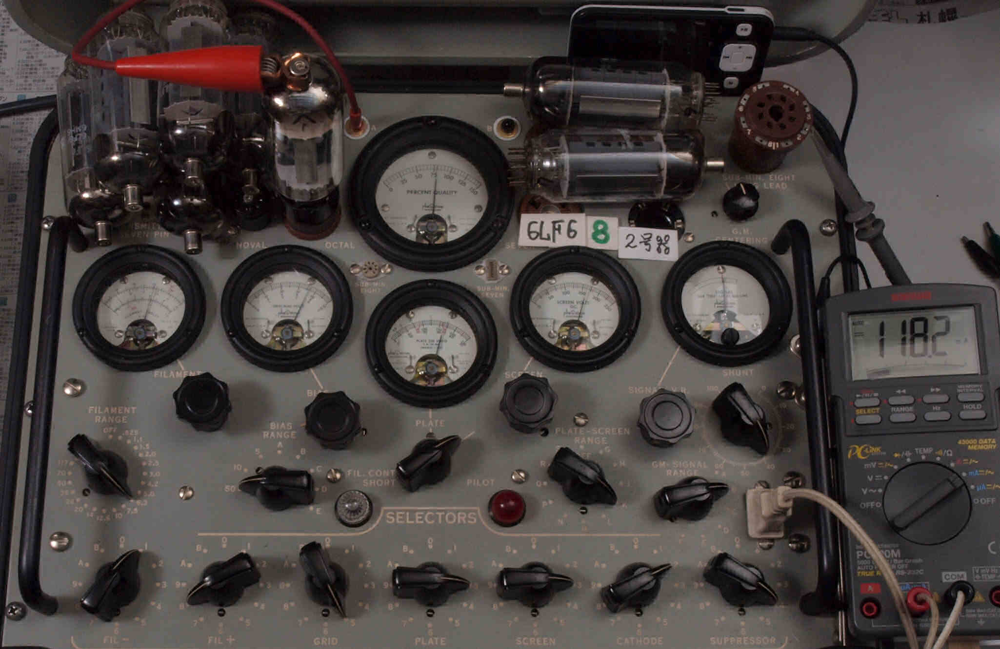 | V12. 2本目 6LF6 。 Gm測定=8000μmho、 Ip=132.2mA。 |