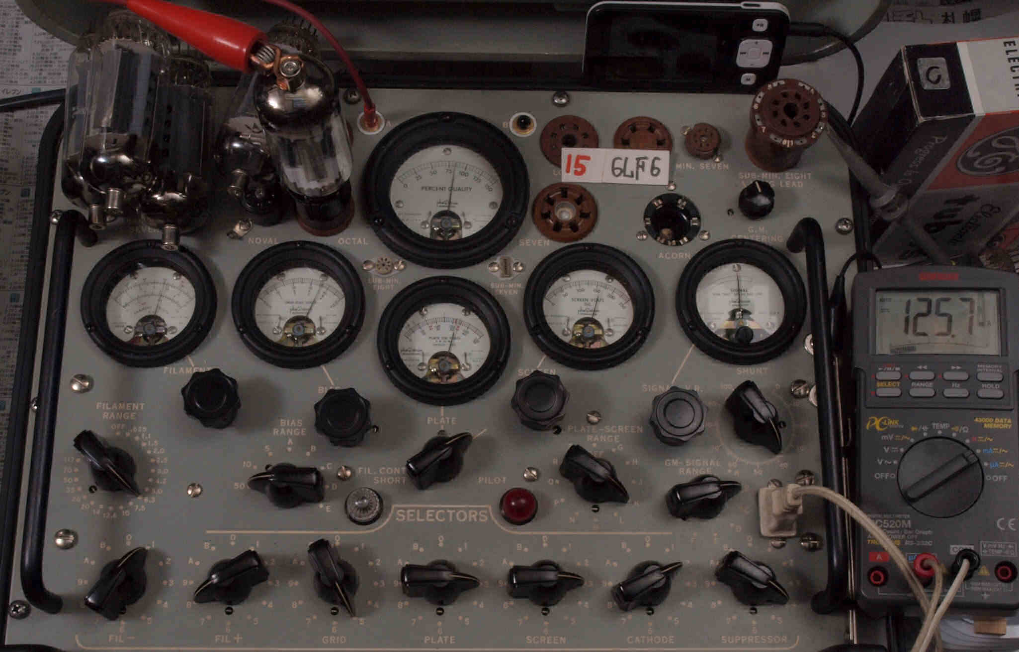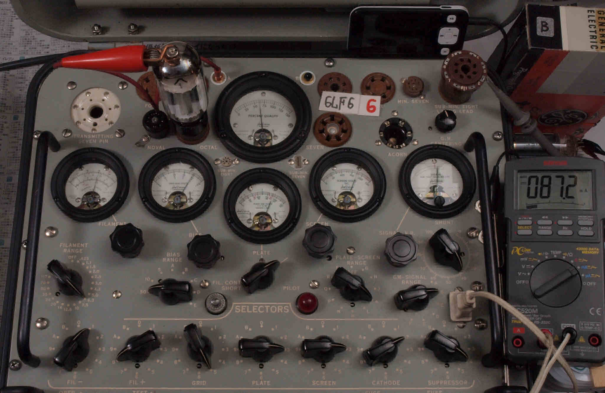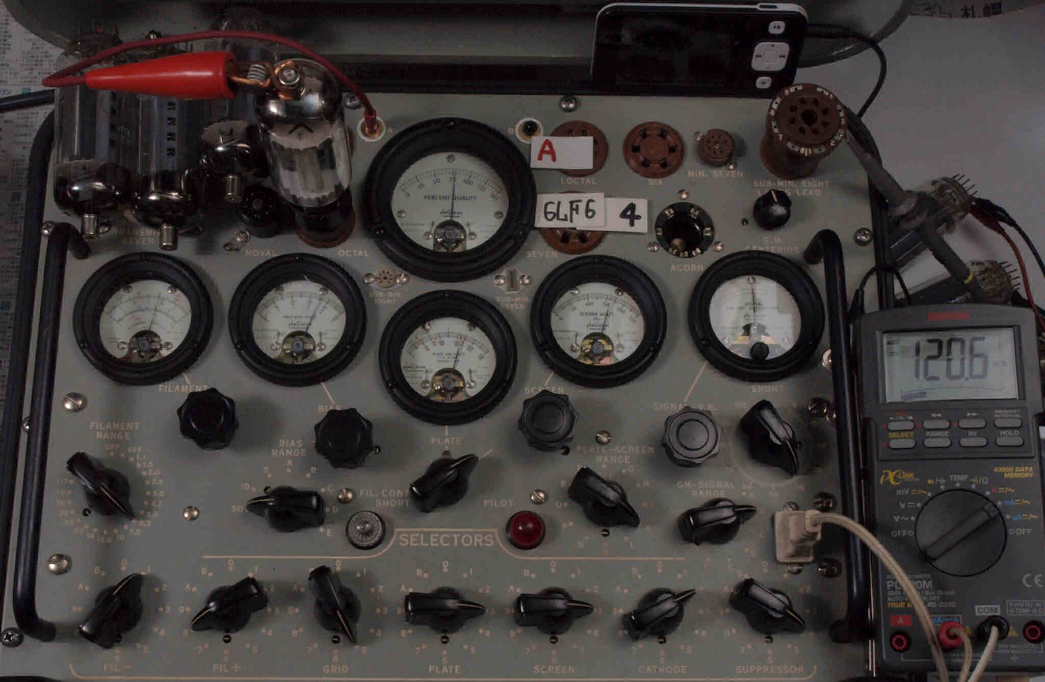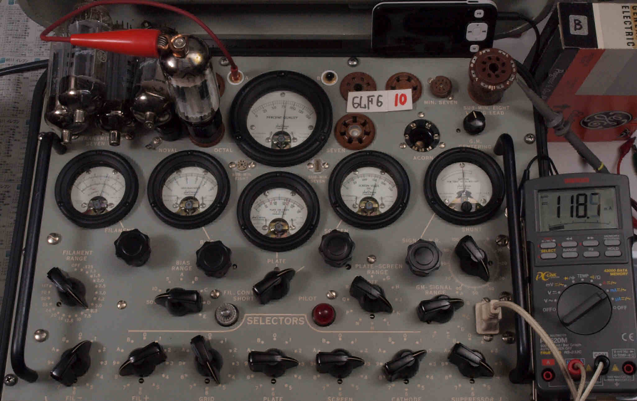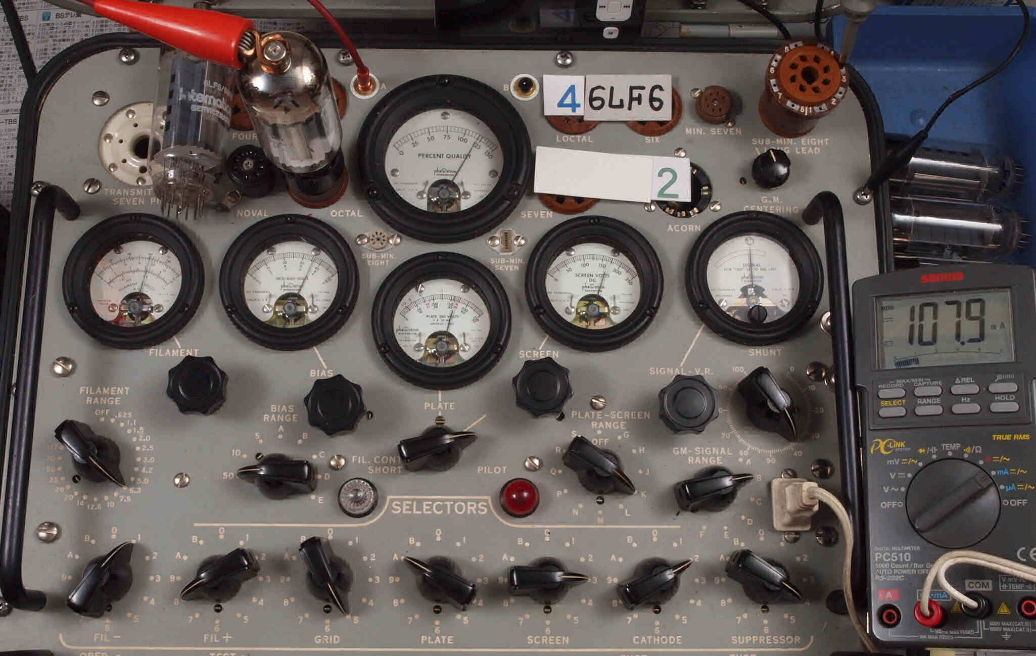 | V12. 2本目 6LF6 。 Gm測定=8000μmho、 Ip=132.2mA。 |