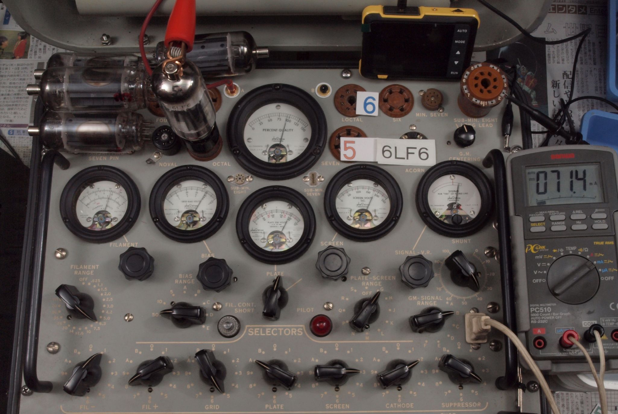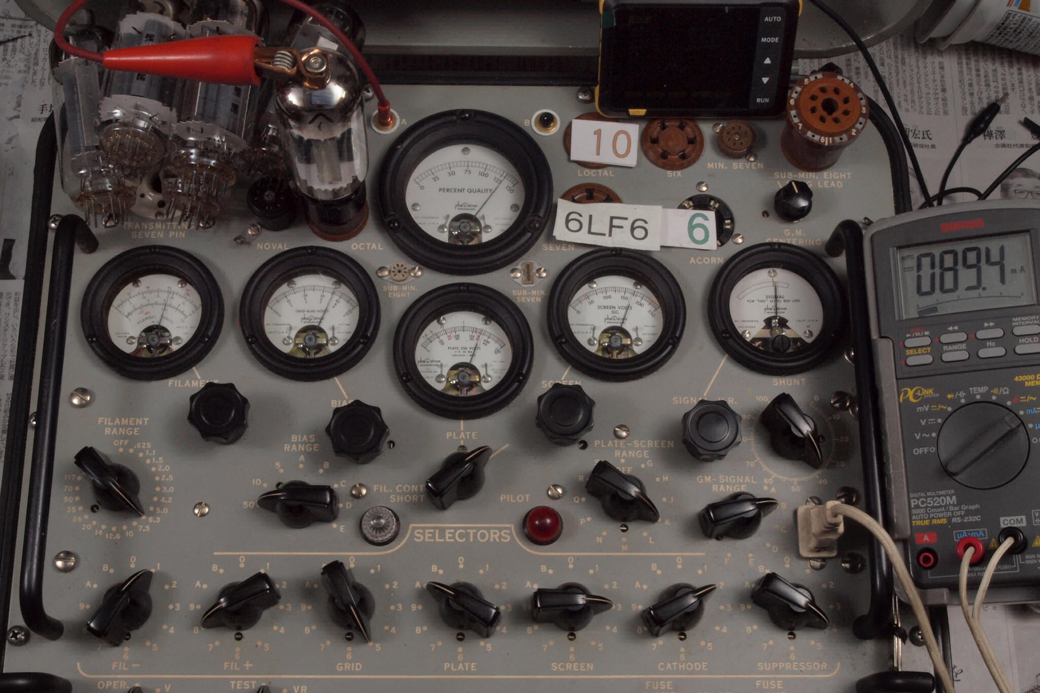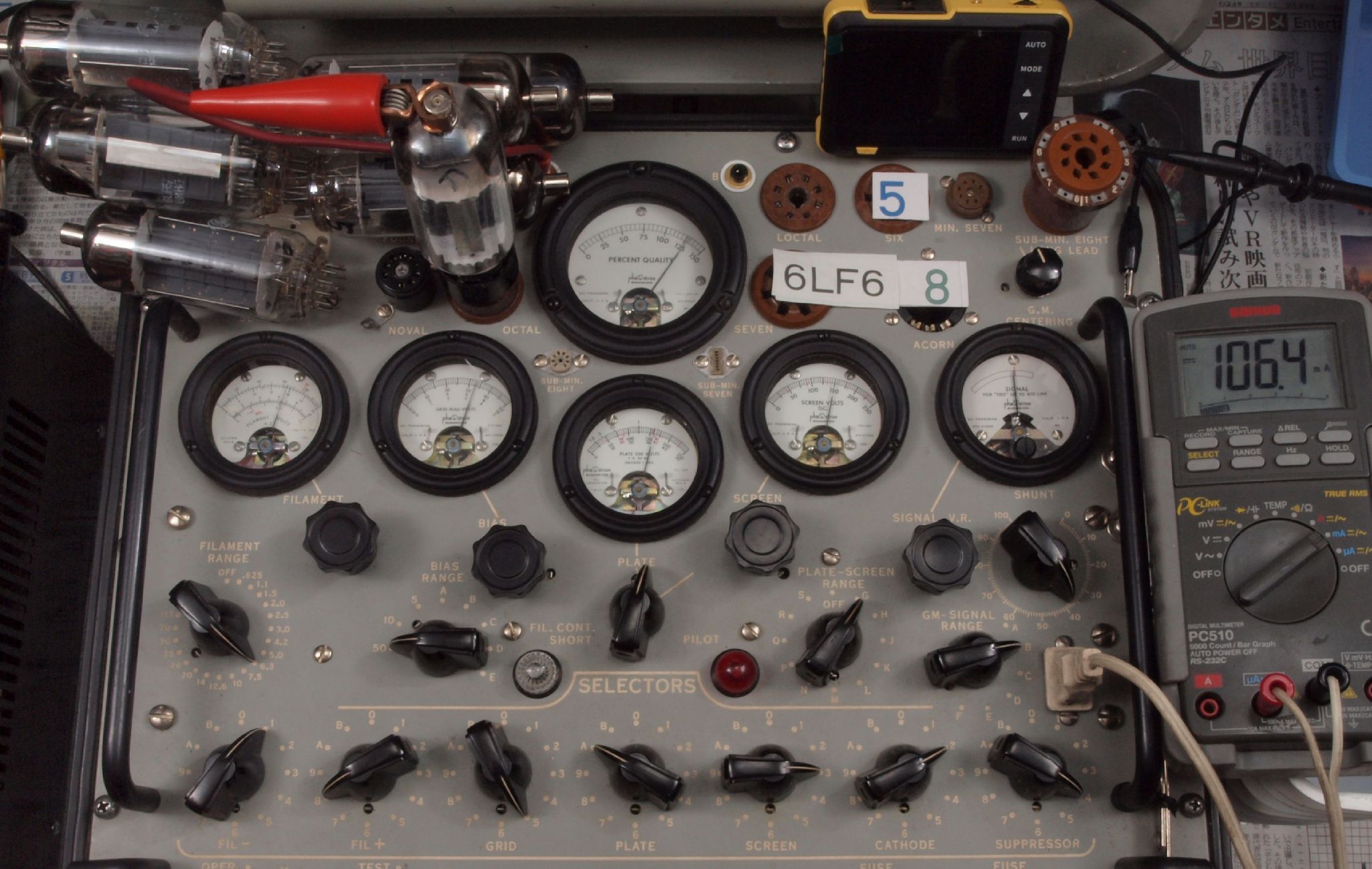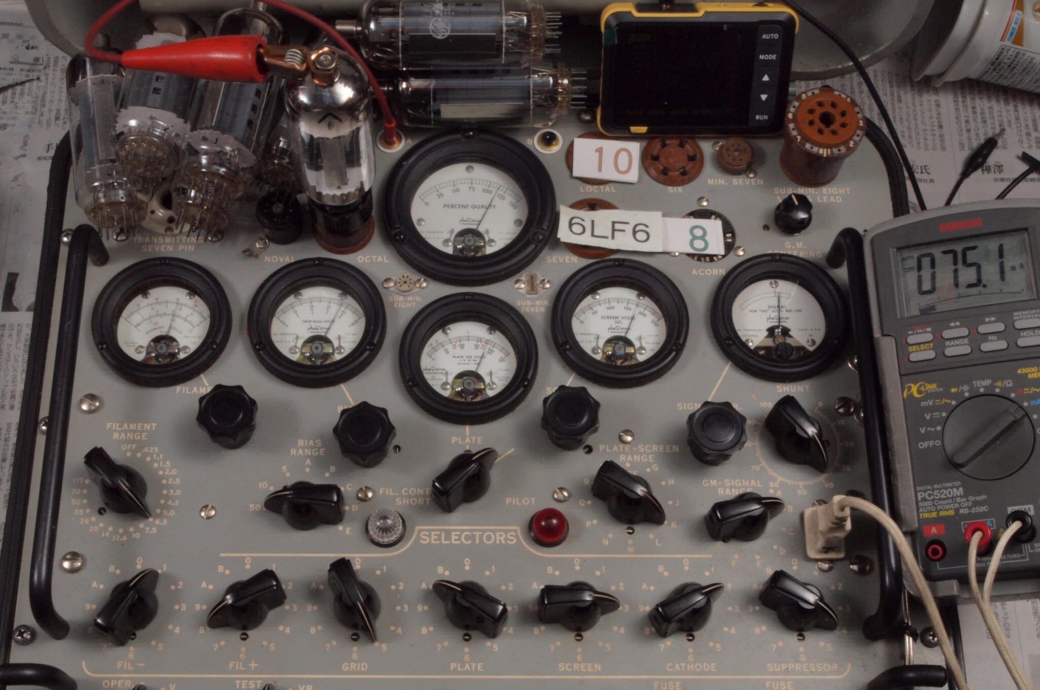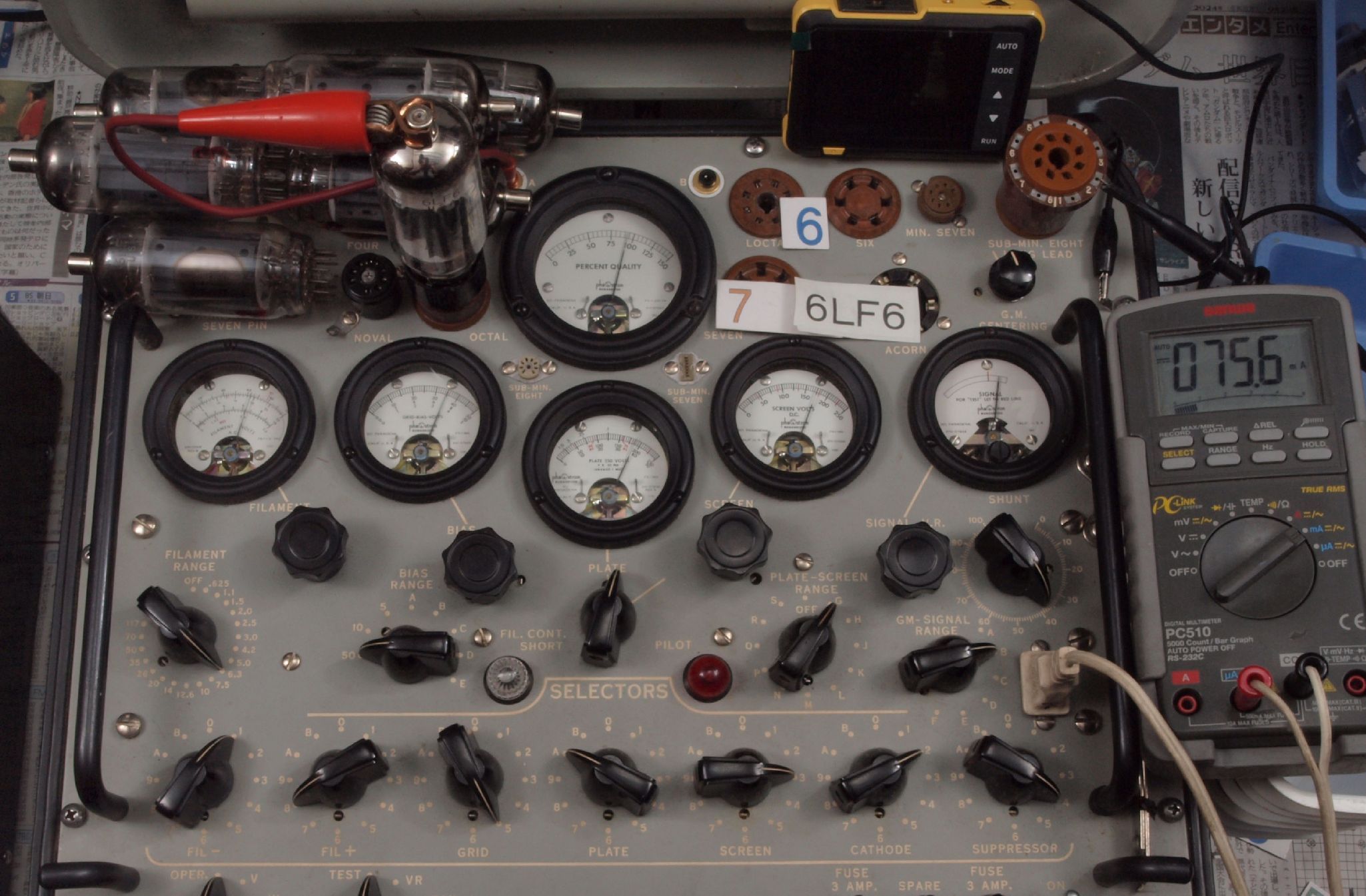 | 予備真空管の測定。 6LF6 右から6番目、7番目、、、、10番目。 |