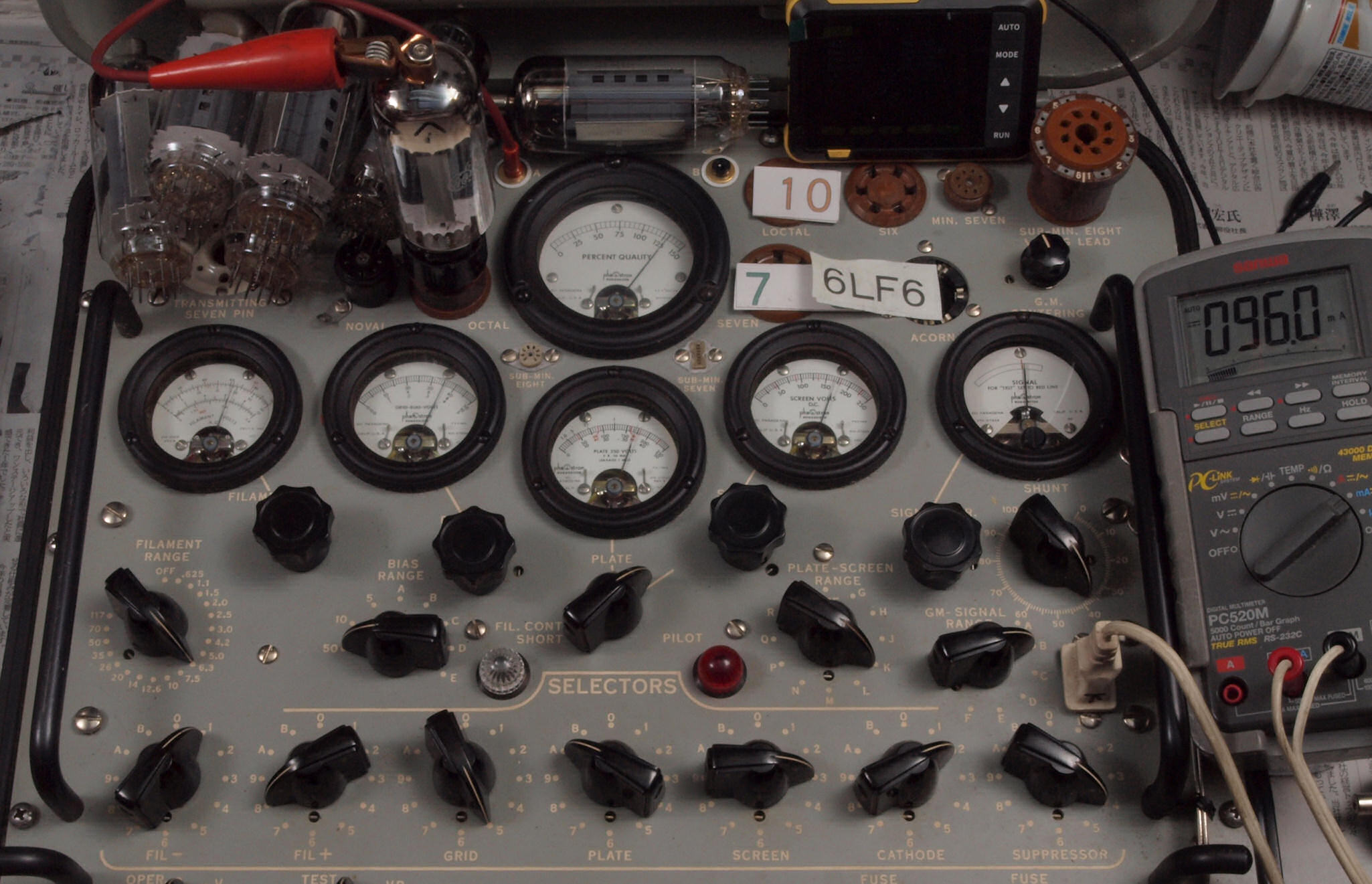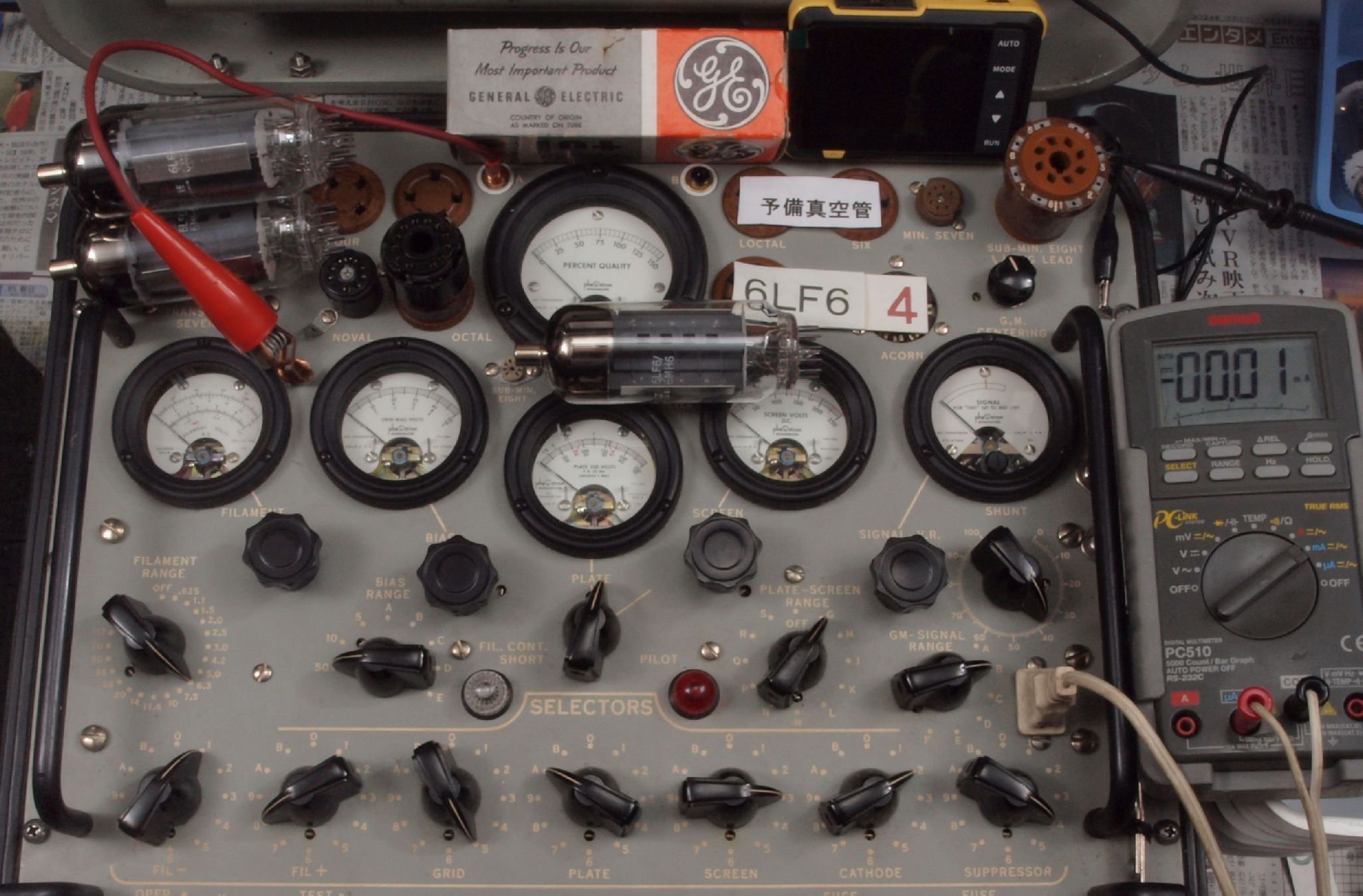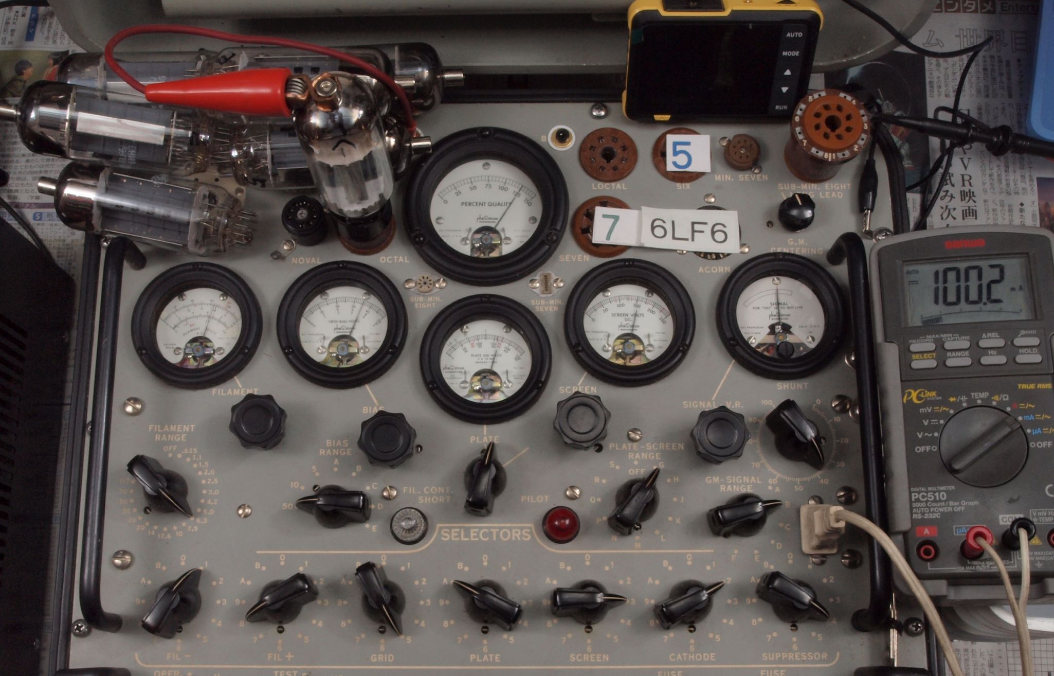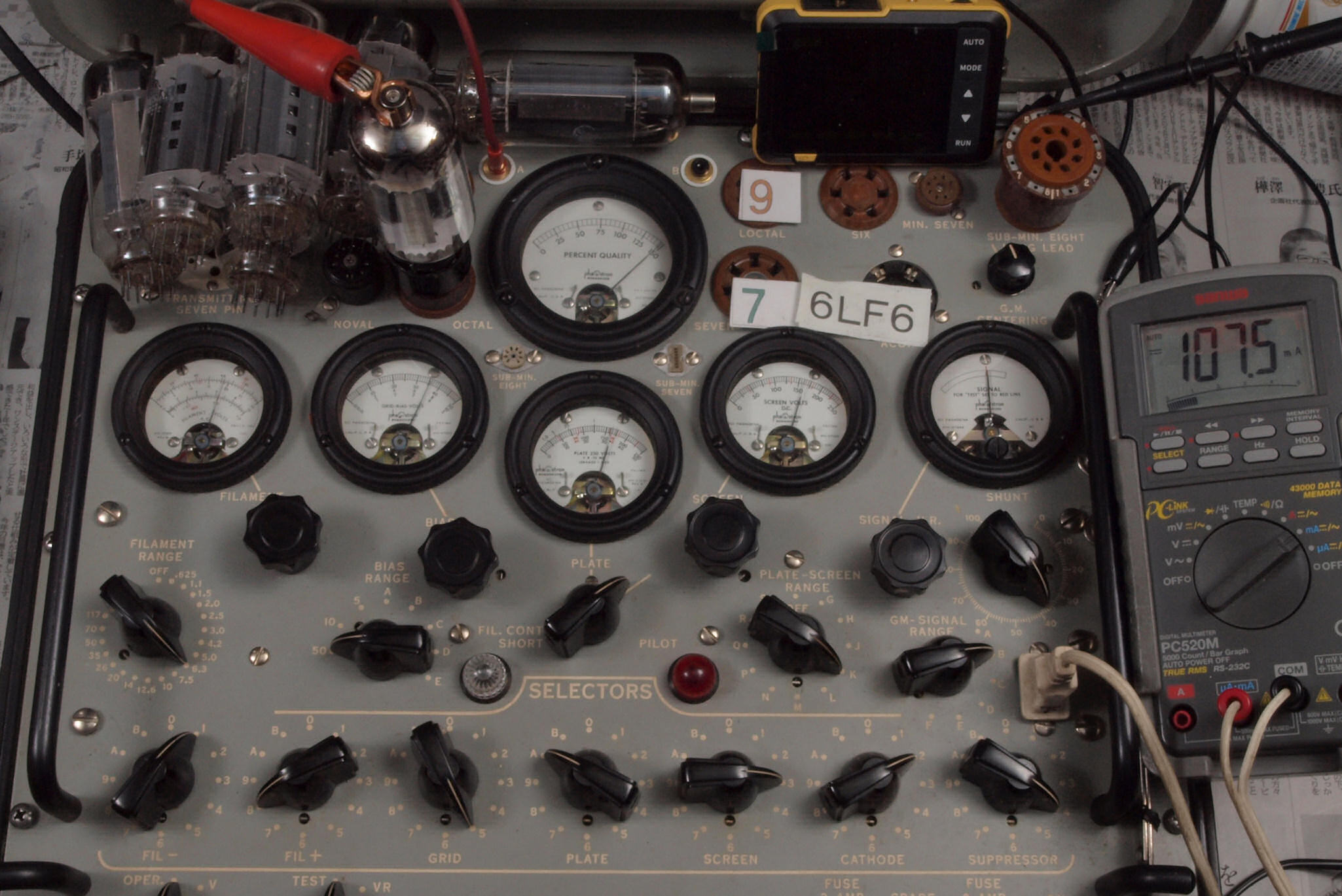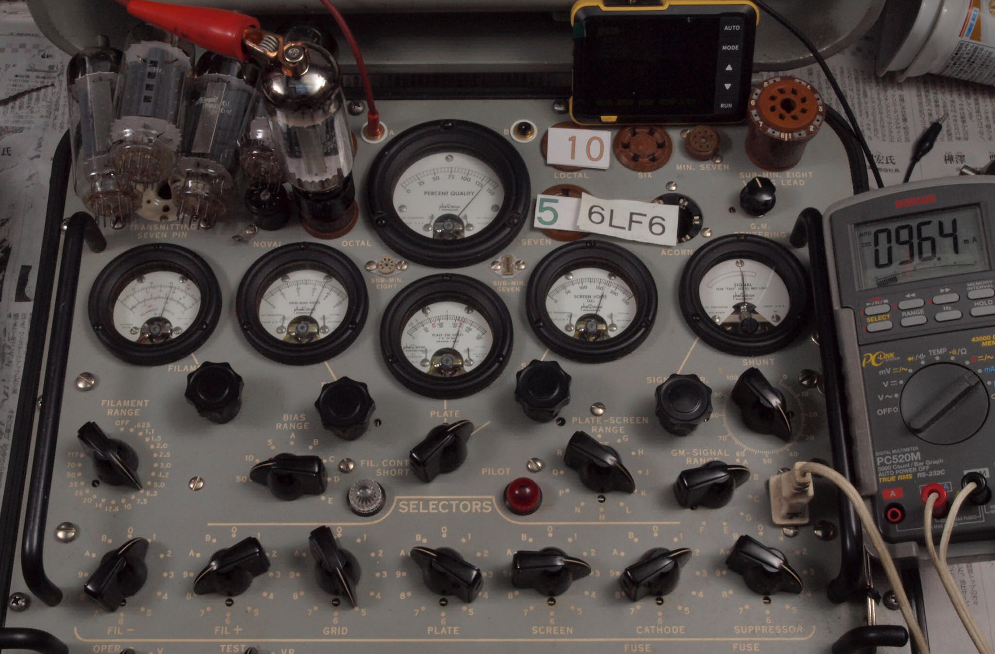 | 予備真空管の測定。 6LF6 右から6番目、7番目、、、、10番目。 |