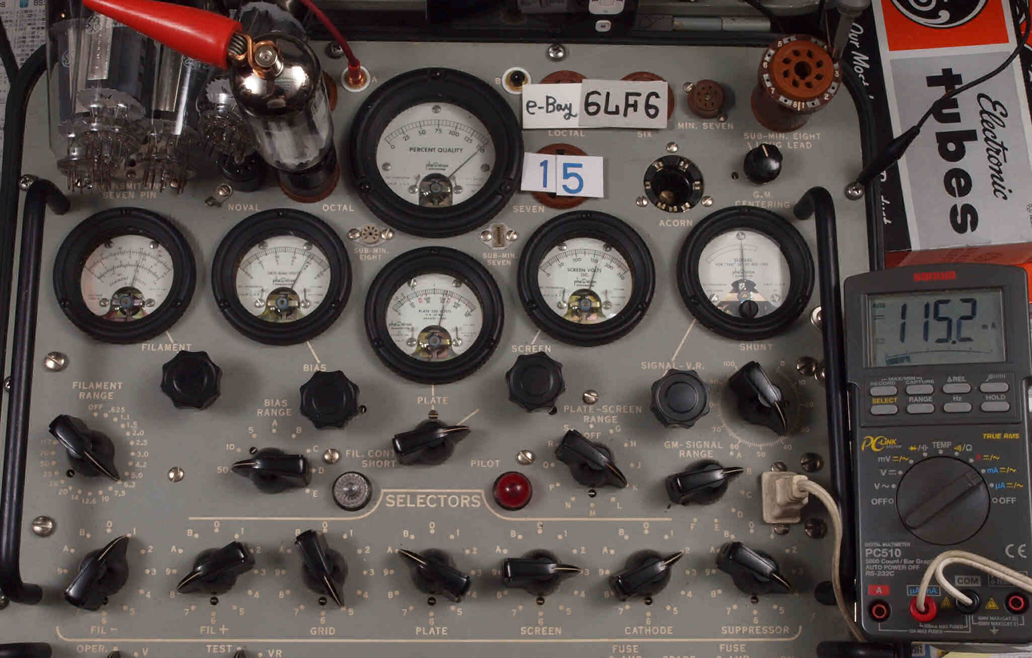 | V415. 15本目「6LF6」。 Gm測定=15000μmho、 Ip=115.2mA。 |