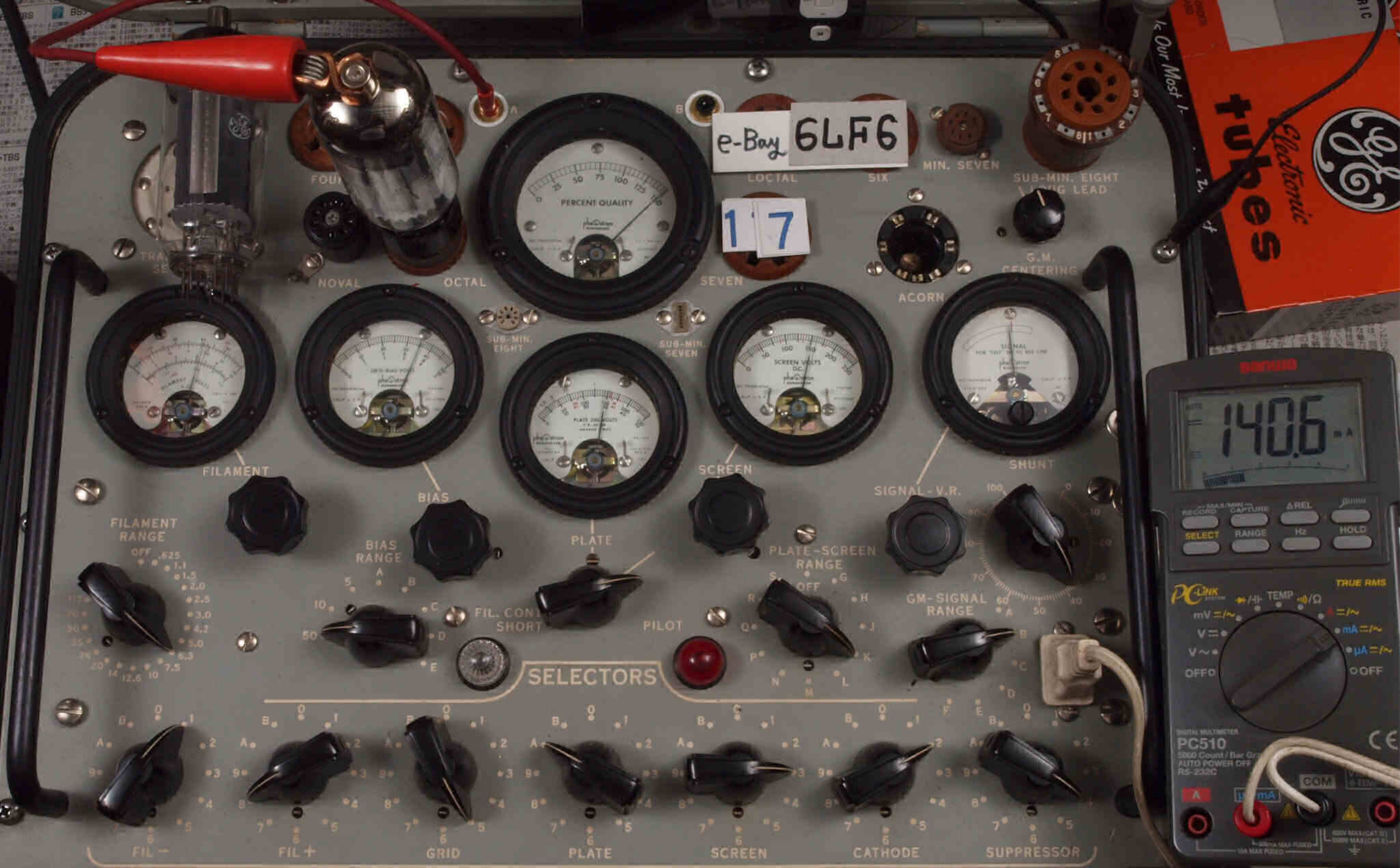 | V17. 7本目 6LF6 。 Gm測定=8000μmho、 Ip=130.5mA。 |