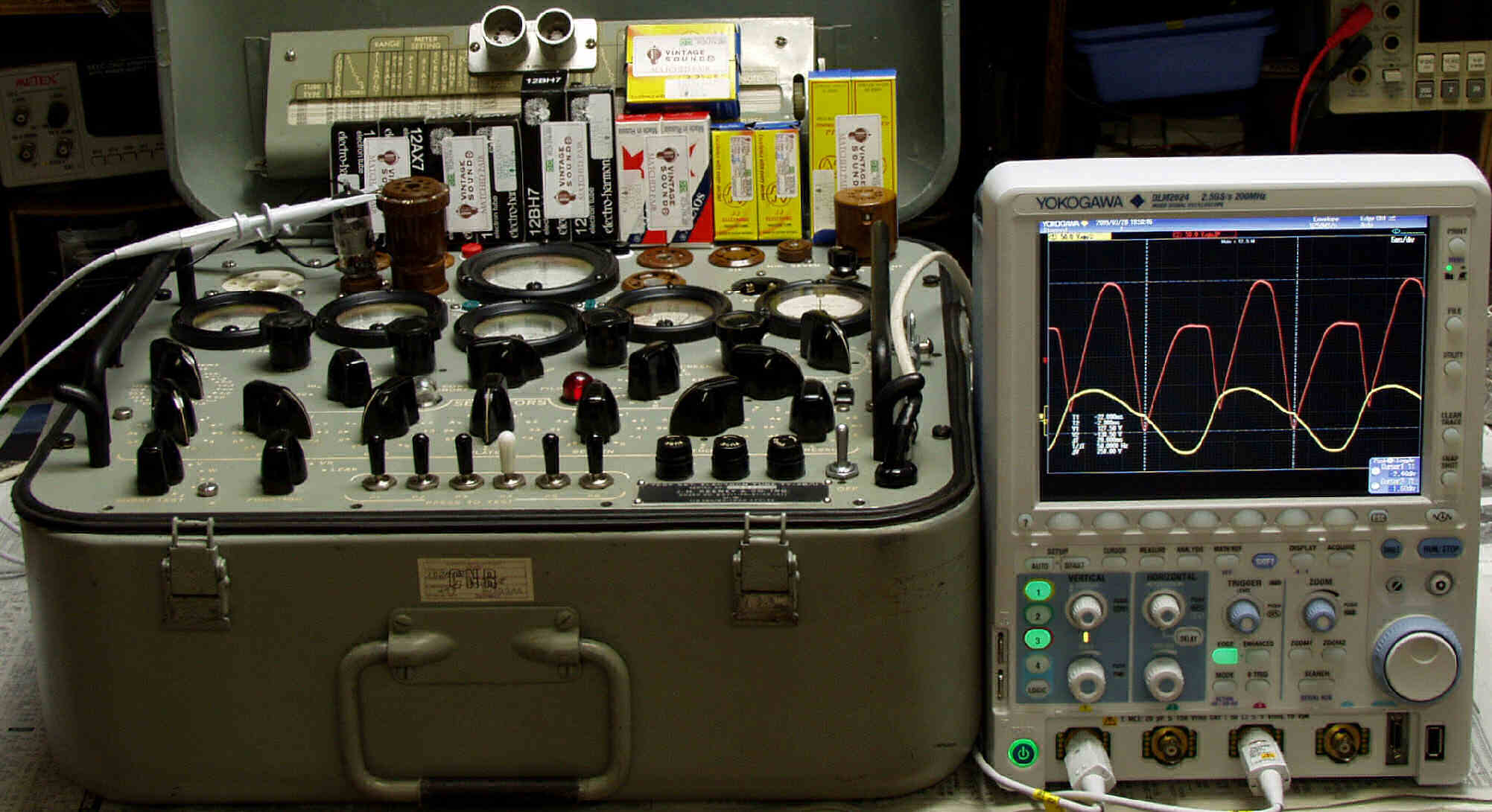 | G. 最近の真空管のGm測定+波形確認。 G1. 右のデジタルオシロはデモで拝借。 「YOKOGAWA DLM2024」 |
