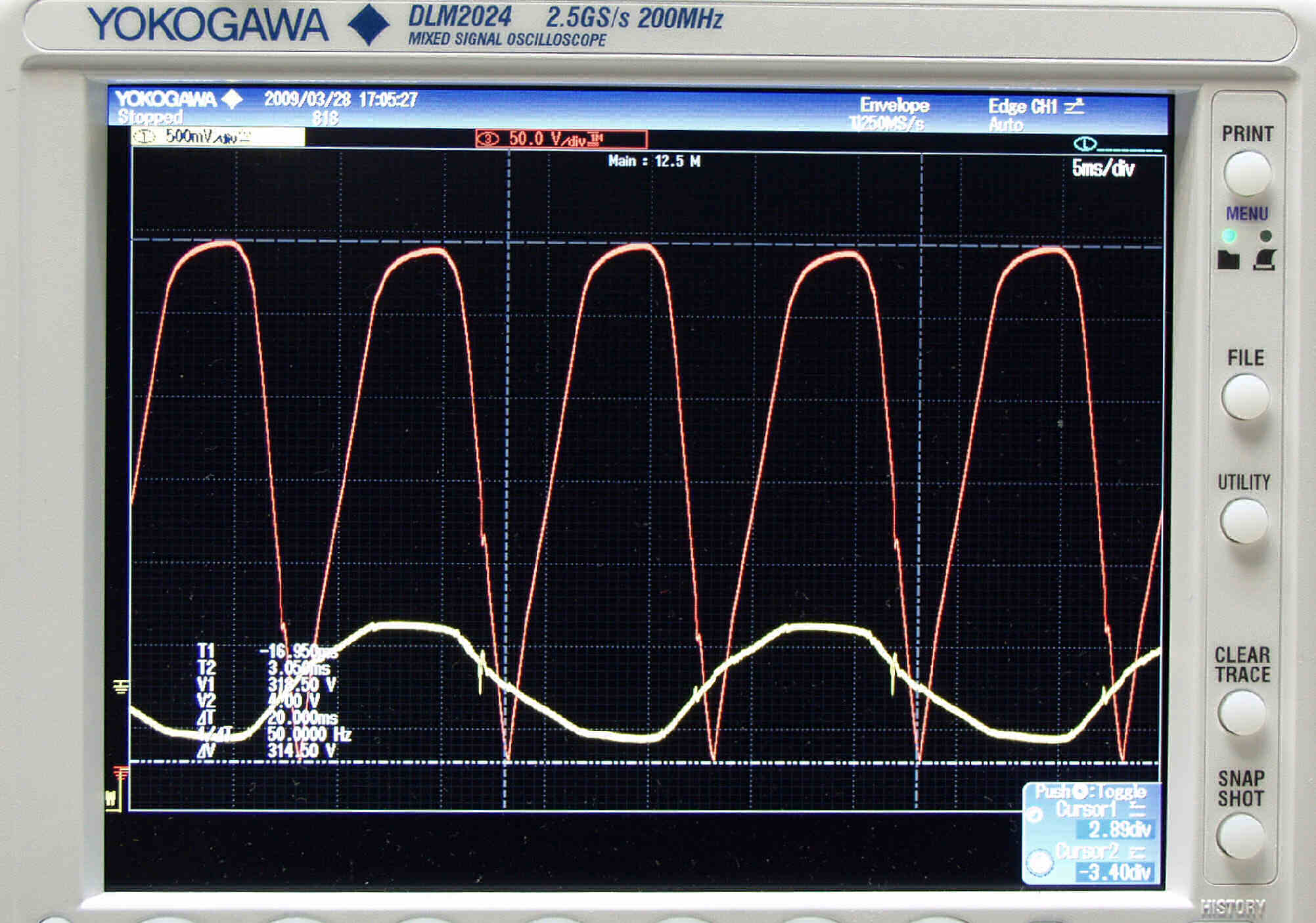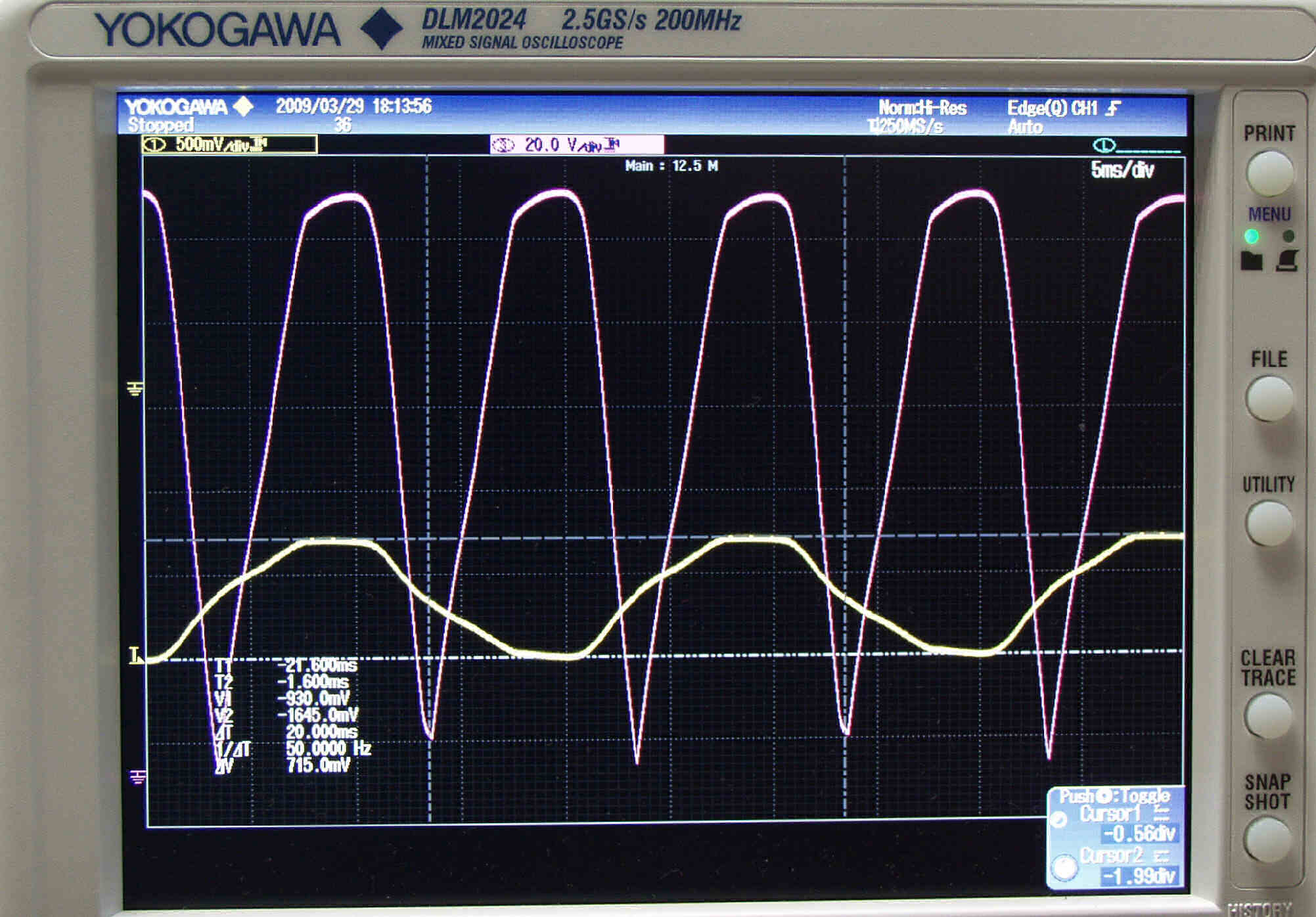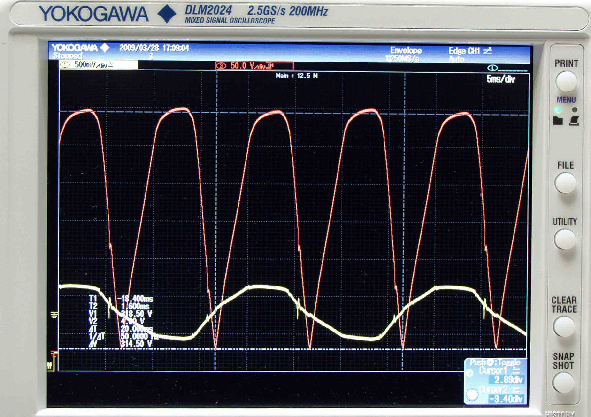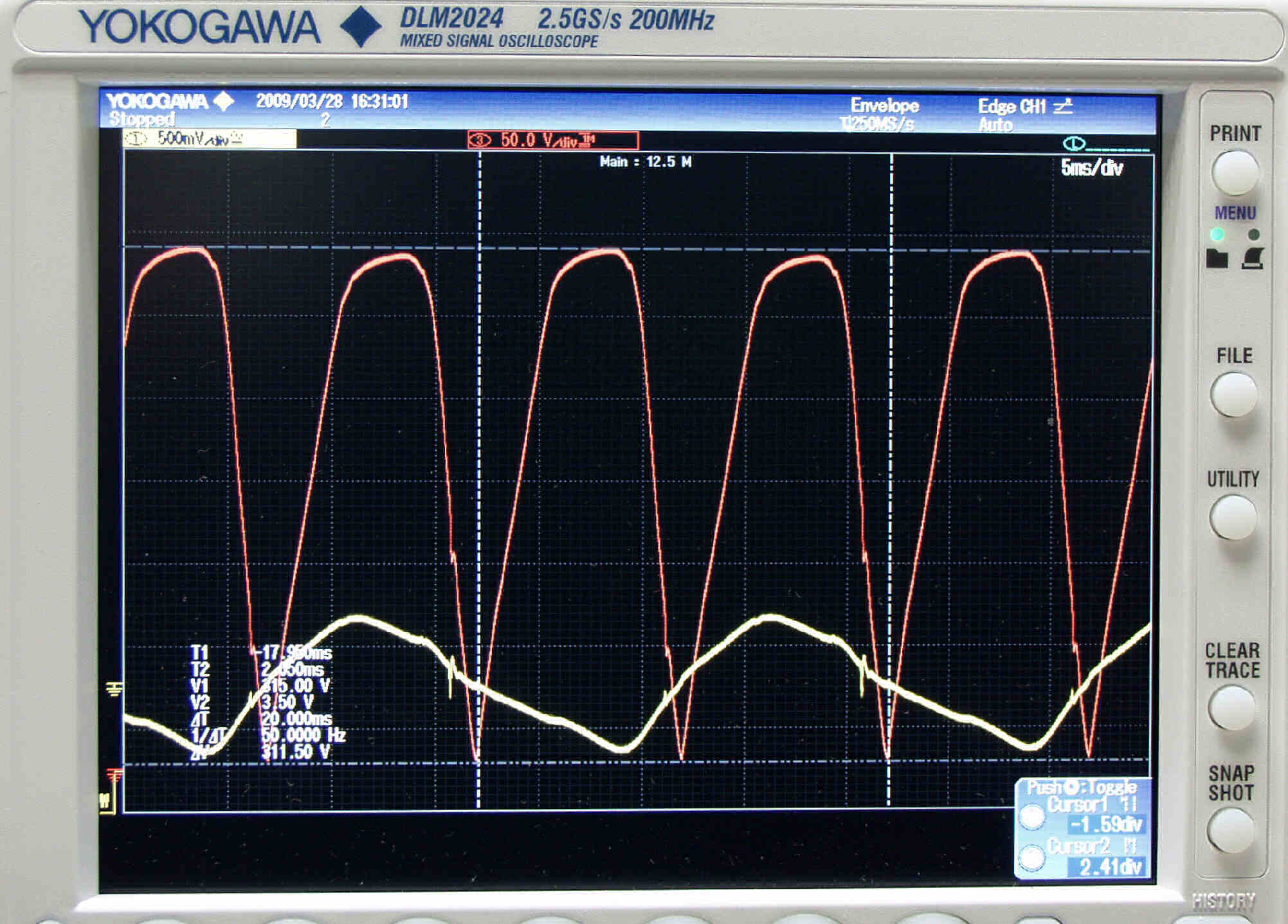 | G23. 「JJ−ECC99」測定の入出力波形、黄色=グリッド電圧、赤色=プレート電圧 | |||||||||||||||||||||||||||||||||