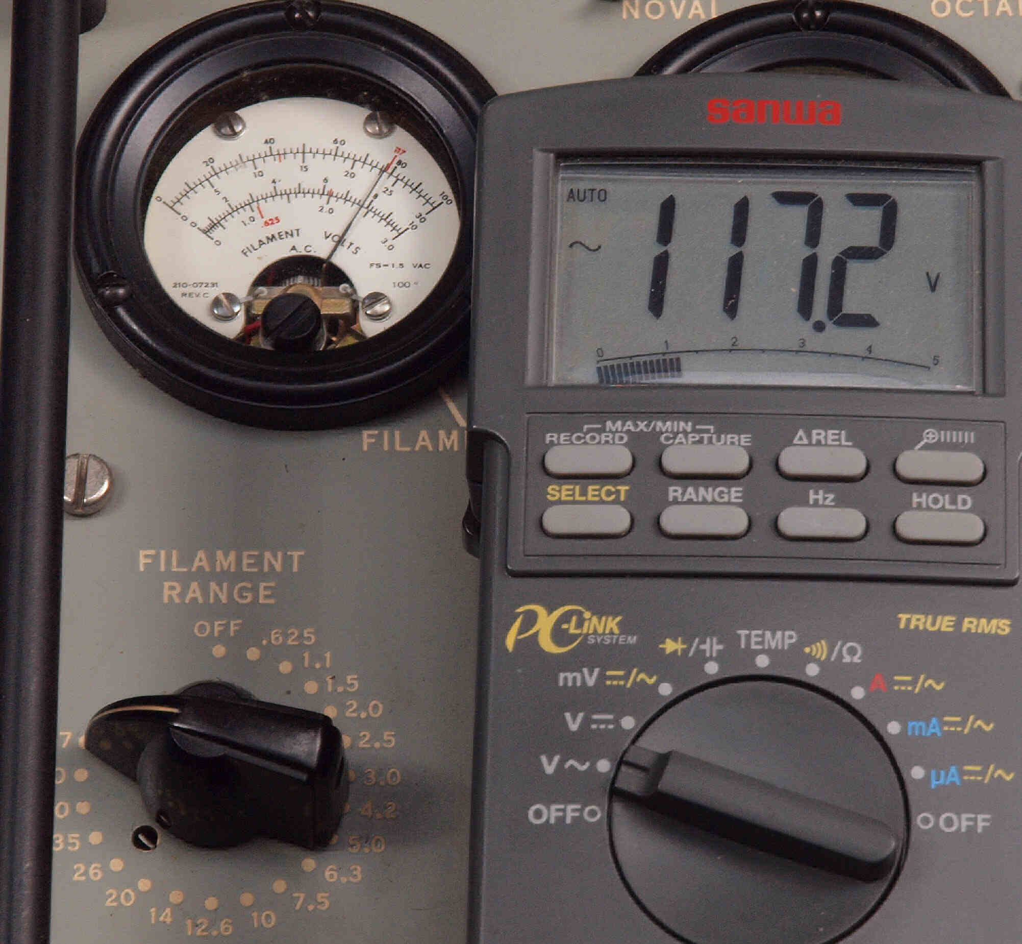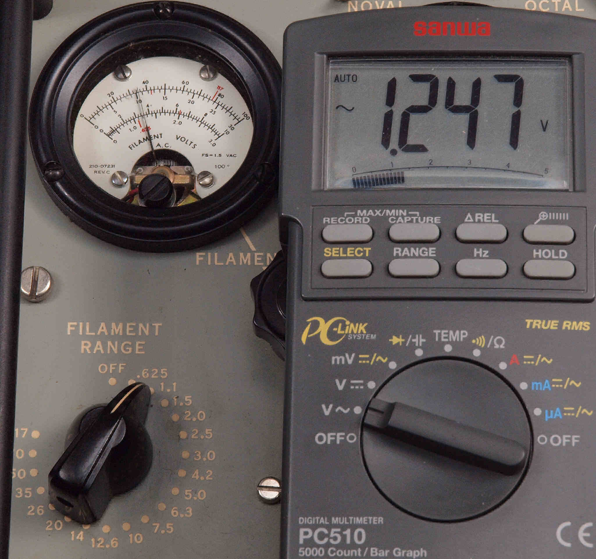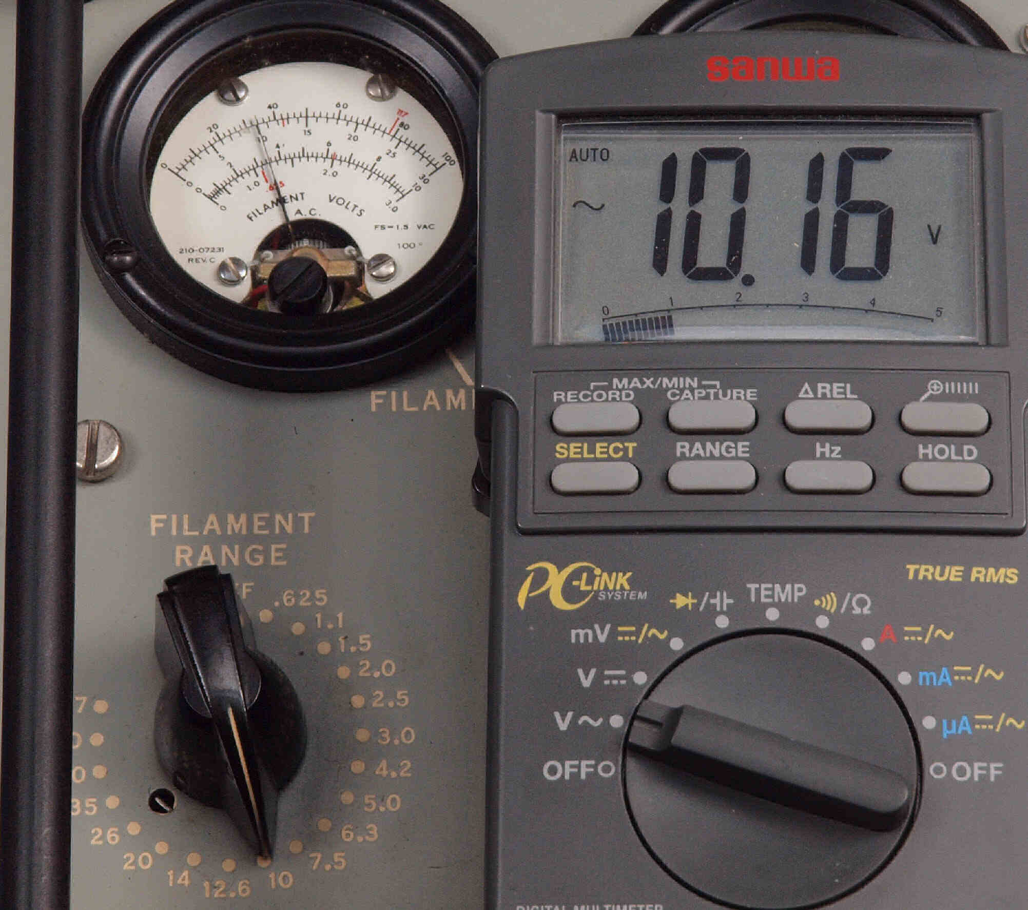 | 「整流管83」、「整流管5Y3GT」をダイオードに単純に交換すると、電源が強化する事になり、相互コンダクタンスの測定には信頼性(精度)が増すことになります。 しかし、チャートのAver.Mut.Cond.とは誤差がでます。又、他の試験方法にも誤差がでます。よって、回路の変更、全体的な調整・校正が必要となります。 | |||||||||||||||||||||||||||||||||