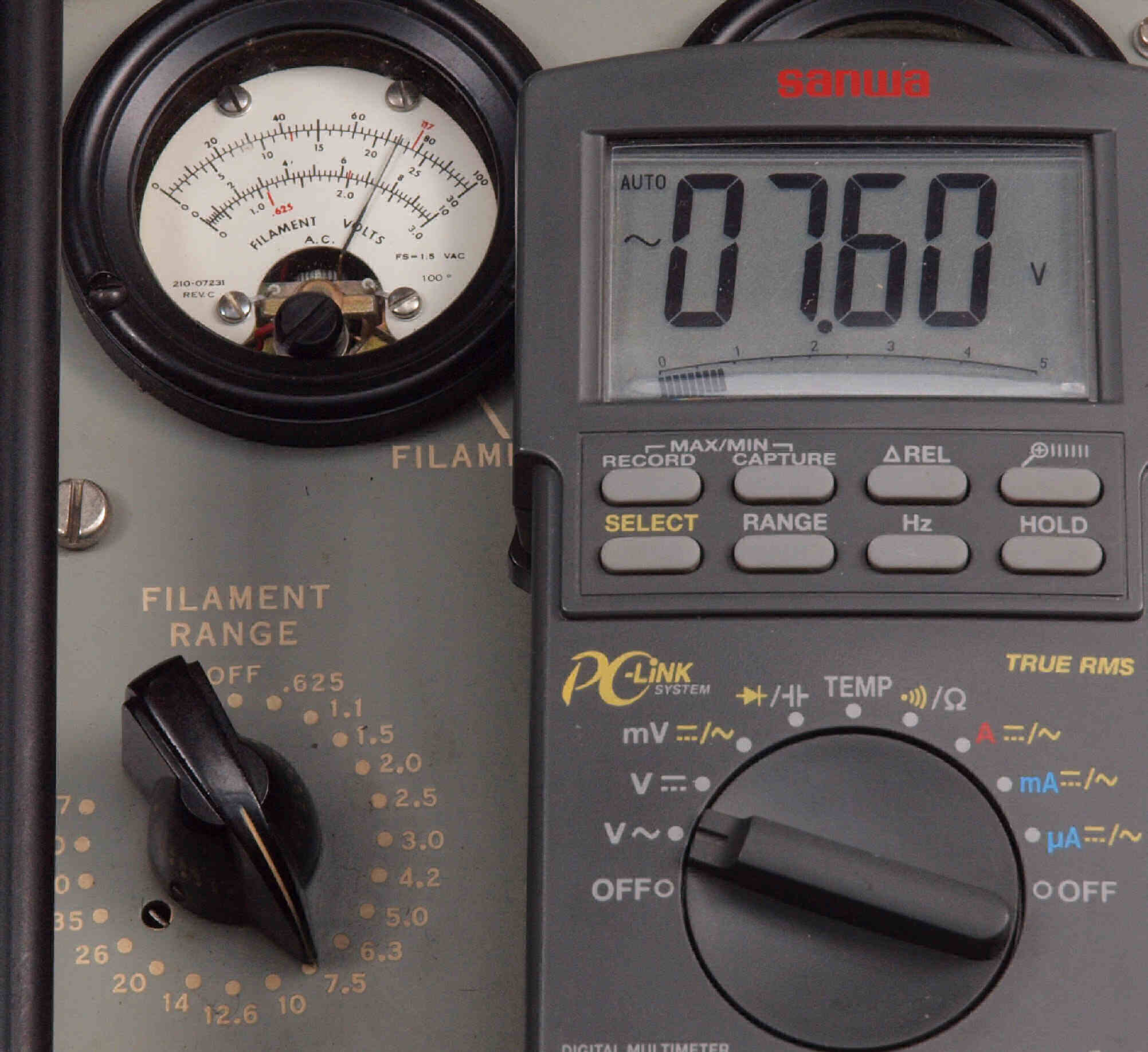 | C5A. 修理後. ヒータ電圧=7.5V電圧の調整。 | |||||||||||||||||||||||||||||||||