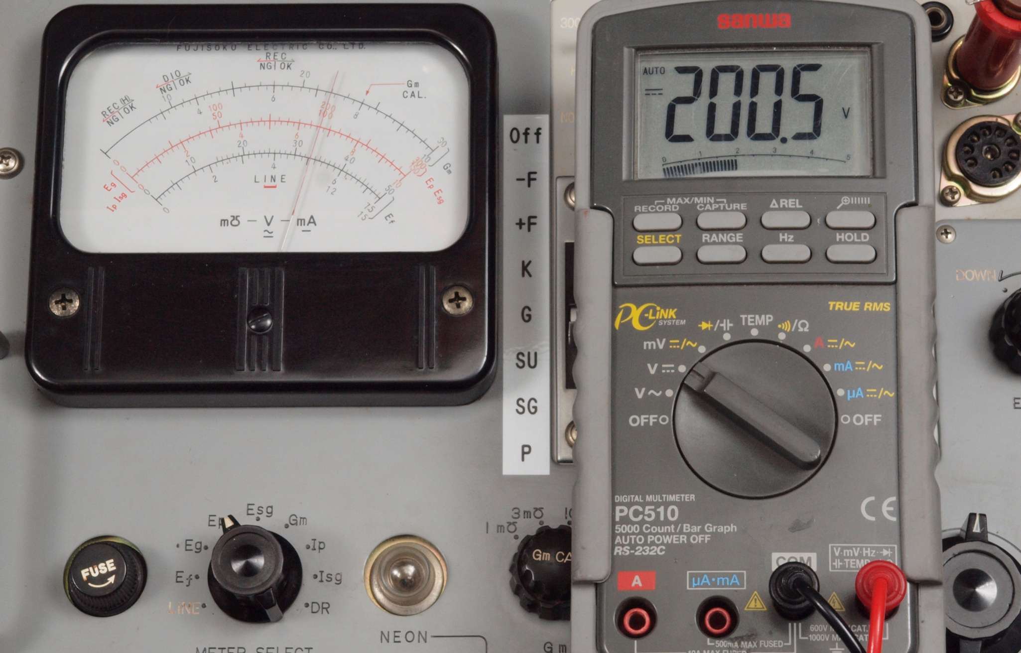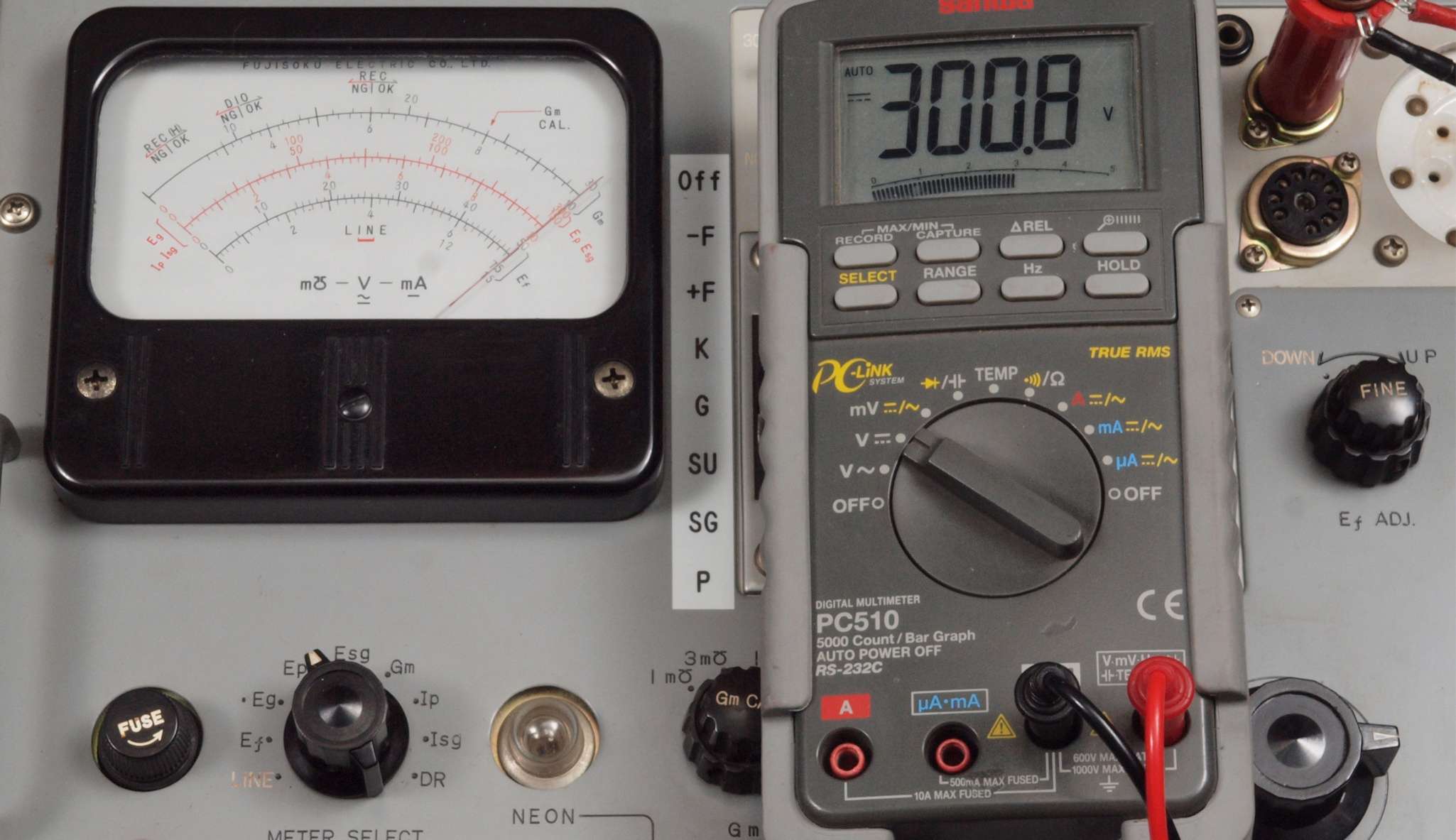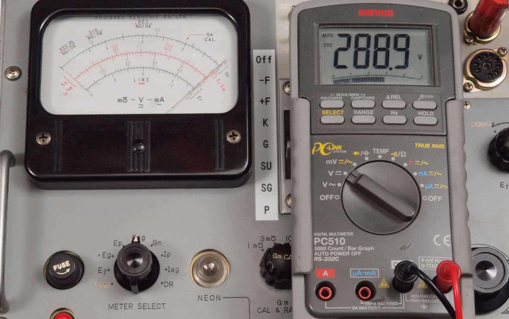 E2. 真空管ピン選択ホイール2番のGの所をドライバーで叩くと、接触不良でフルスケール。