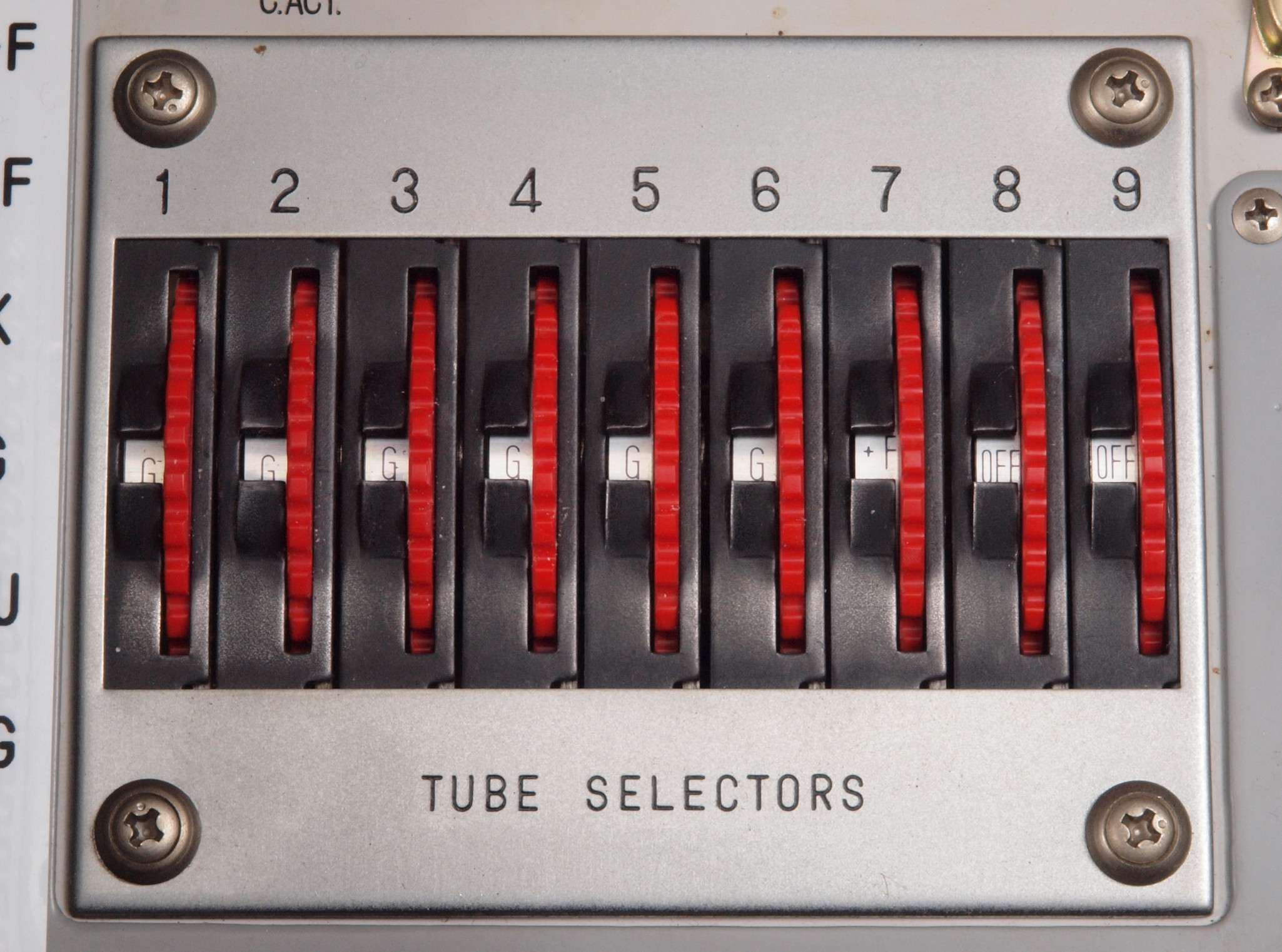 | E7. 真空管ピン選択ホイール横から見る、反対側。特殊な構造。カシメのアルミピンが見える。 | |||||||||||||||||||||||||||||||||||